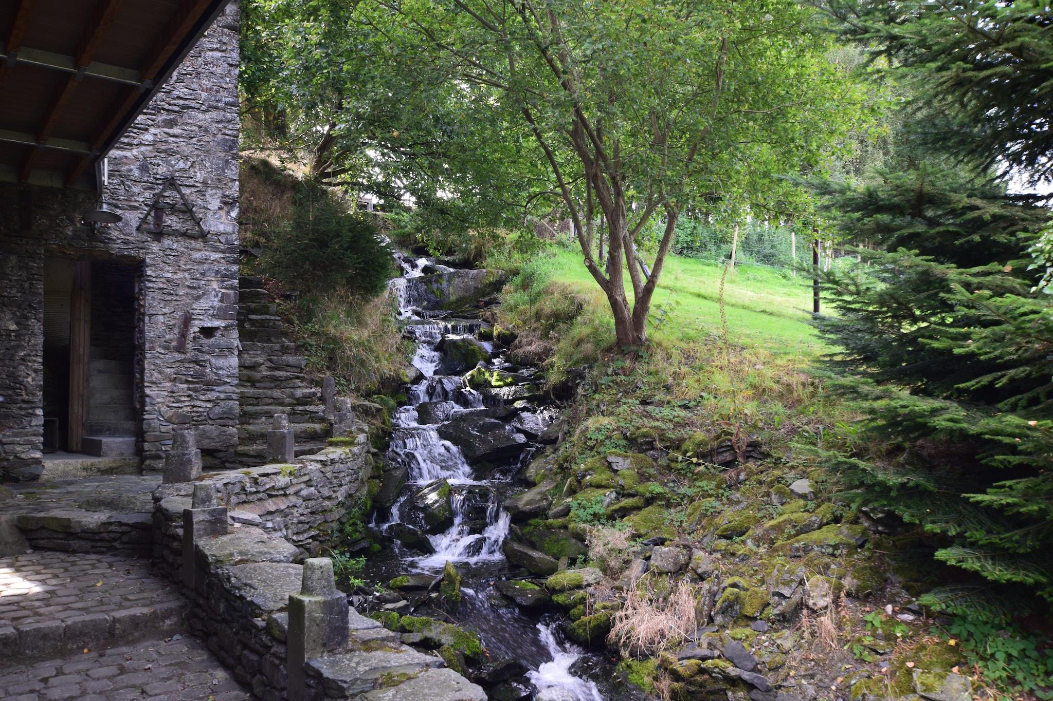 Renoveret mølle i Bastogne ved vandfald