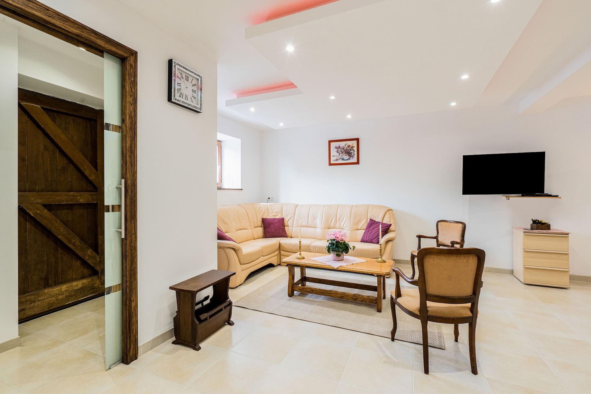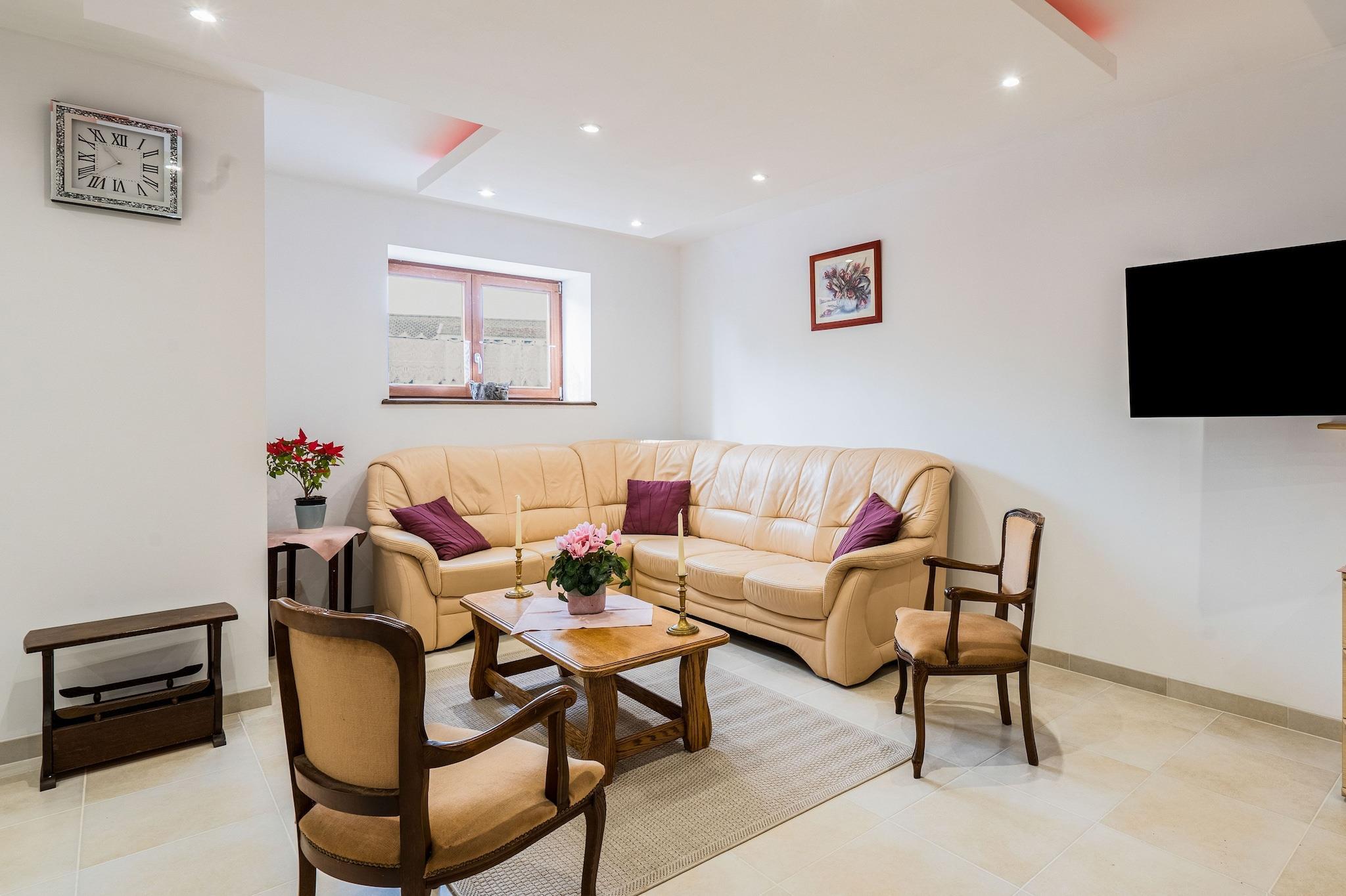 Stueetage: (Stue(dobbeltsovesofa, Fjernsyn, spisebord, sofahjørne), åbent køkken(spisebord, elkedel, brødrister, komfur, emhætte, kaffemaskine, ovn, mikrobølgeovn, opvaskemaskine , køleskab), soveværelse(dobbeltseng, rejseseng), soveværelse(dobbeltseng, rejseseng), badeværelse(badekar, håndvask), toilet(håndvask, pissoir), vaskerum (vaskemaskine)) balkon eller terrasse, have(indhegnet, anlagt have, 100 m2), grill, parkering