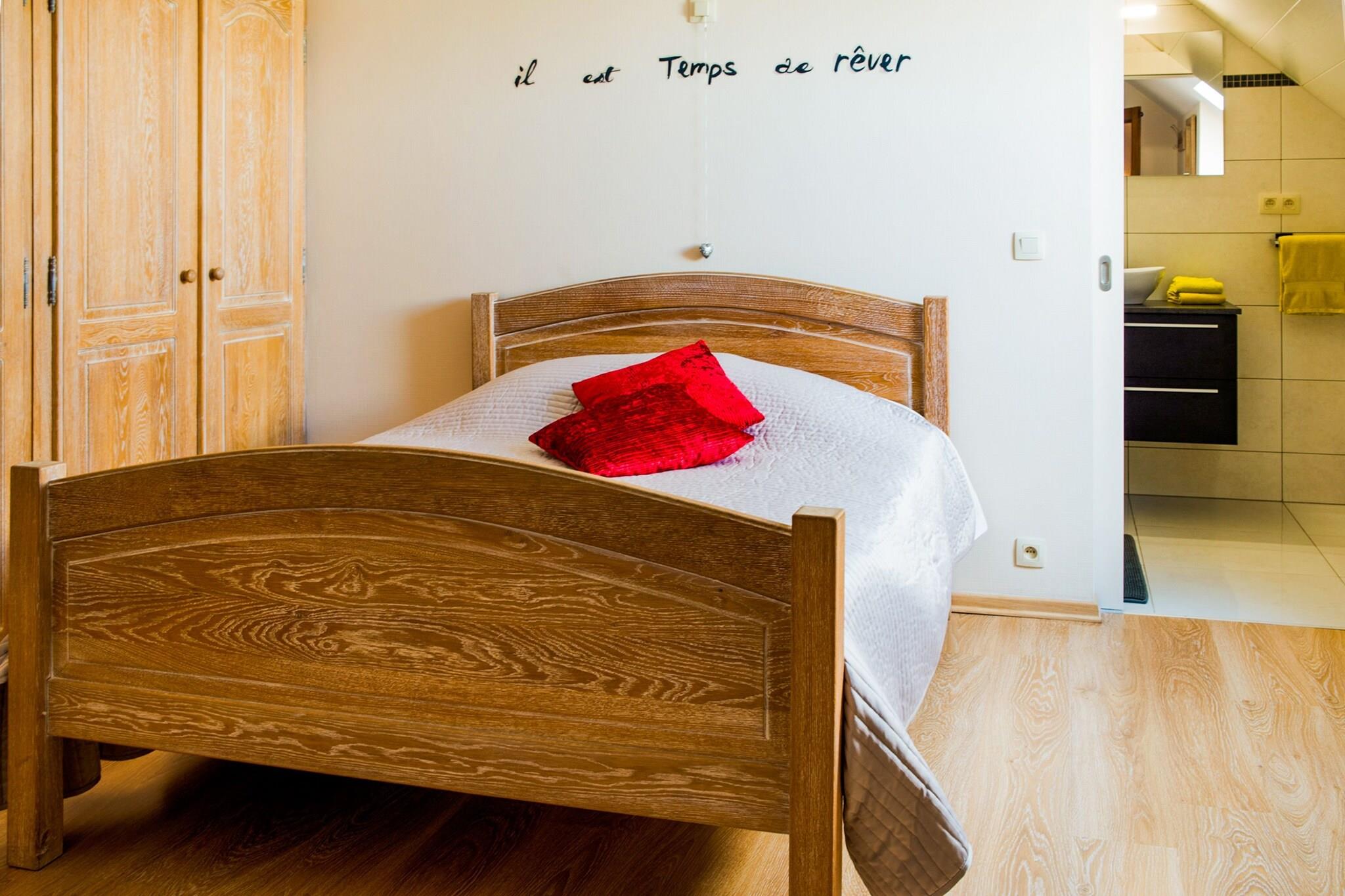 Gemt væk på en stille blind vej i den fredfyldte landsby Vresse-sur-Semois, er denne moderne 4-værelses villa den perfekte tilflugtssted på landet for familier eller vennegrupper. Hvert soveværelse har sit eget en-suite badeværelse, hvilket sikrer privatliv og komfort for alle gæster. Omgivet af en betagende udsigt og fredelig natur, lover dette hjem et virkelig afslappende ophold i hjertet af de belgiske Ardennerne. Udendørs elskere vil finde masser at nyde i nærheden, udforske skovene, se det lokale dyreliv eller sejle i kajak på Semois-floden kun en kort køretur væk. Om vinteren er det muligt at stå på langrend i Conrad. Besøg de nærliggende centre Alle-sur-Semois (6 km) og Bievre for at spise og shoppe, hvor du finder lokale restauranter, butikker og terrasser. Tilbage til villaen kan du slappe af ved pejsen eller nyde en venskabelig omgang bordtennis eller PlayStation. Hesteejere er velkomne til at lade deres heste græsse på engen. Cykelopbevaring er også tilgængelig. Sengelinned, håndklæder og køkkentekstiler kan leveres efter anmodning, bare kontakt ejeren mindst en uge før ankomst. Kæledyr er også velkomne, hvilket gør denne villa til et komplet, naturfyldt tilflugtssted.