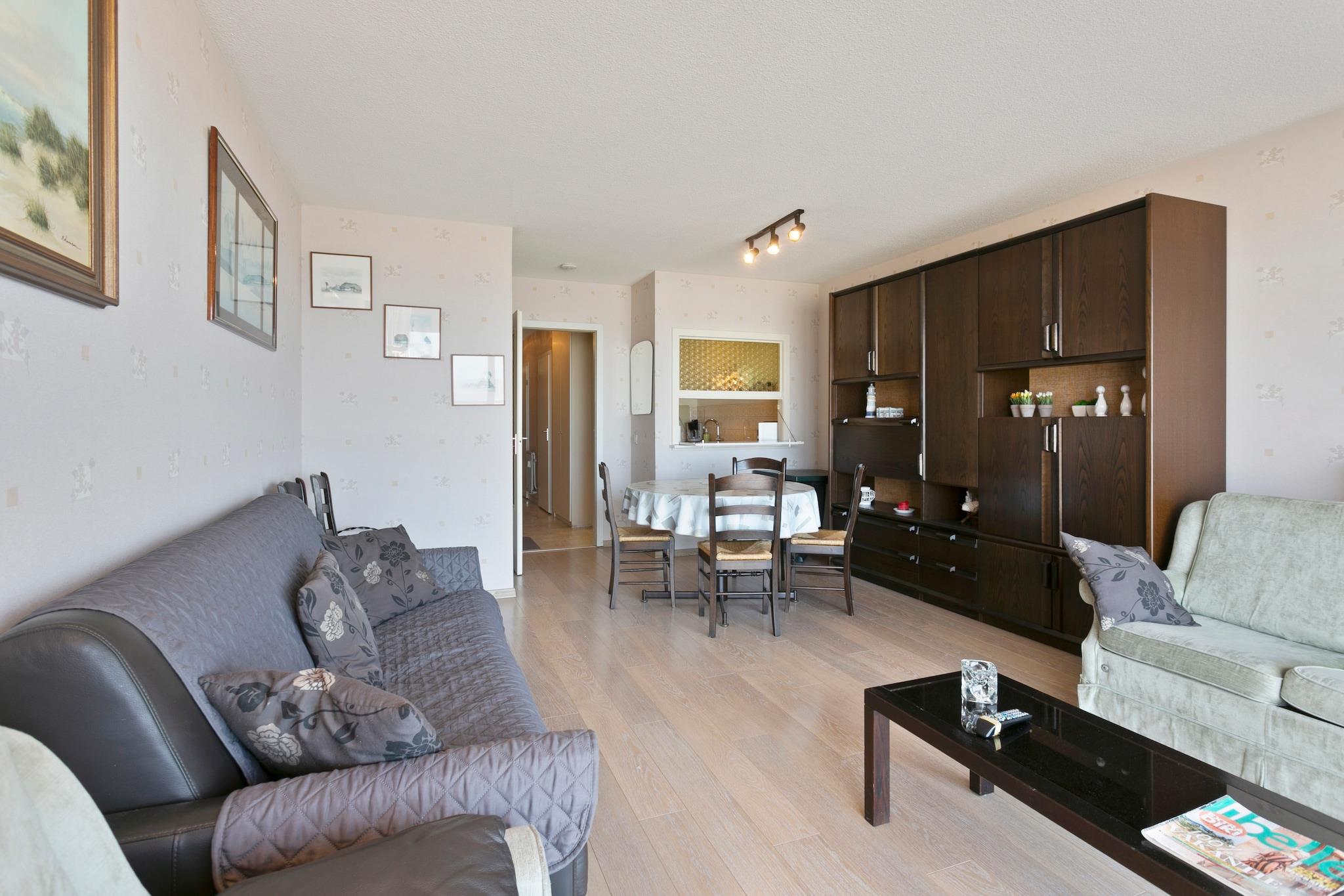 Denne hyggelige etværelses lejlighed tilbyder et behageligt og afslappende ophold med en fantastisk udsigt over strandpromenaden. Den rummelige stue er designet til ultimativ komfort og flyder problemfrit ind i det fuldt udstyrede køkken, som har en praktisk gennemgangsluge til nem spisning. Soveværelset er indrettet med en komfortabel dobbeltseng, der sikrer en god nats søvn. For ekstra bekvemmelighed inkluderer lejligheden et separat toilet samt et badeværelse med badekar og bruseforhæng, hvilket giver både funktionalitet og privatliv. Blankenberge tilbyder en perfekt blanding af historie, kultur og rekreation. På Belle Epoque Centrum kan du lære om byens fremgang som en smart badeby med udstillinger om arkitektur, mode og kunst. Udforsk det historiske House of Majutte, det ældste fiskerhus på den belgiske kyst, eller besøg SEA LIFE for at se over 2.500 havdyr. Nyd den naturskønne udsigt fra den belgiske mole eller Oosterstaketsel, ideel til fotografering og fiskeri. Havnefestivalen og Paravang-festerne fejrer byens maritime traditioner og Belle Epoque-arv. For at slappe af kan du slappe af ved Riant d"Eau Wellness eller Bloso Blankenberges saunakompleks. Vandsportsentusiaster kan besøge O"Neil Beachclub, mens sportselskere kan nyde tennis, padel eller petanque i Tennis Club. Glem ikke en sjov aften med bowling på Bowl Inn! Lejligheden har en privat terrasse på bagsiden, der er tilgængelig fra soveværelset, og tilbyder et fredeligt udendørsområde til at slappe af. Køkkenet er fuldt udstyret med moderne apparater, hvilket gør tilberedning af måltider ubesværet. Med sin fremragende beliggenhed, tankevækkende faciliteter og komfortable møbler er denne lejlighed et fantastisk valg for par eller små familier på udkig efter en mindeværdig ferie ved havet.