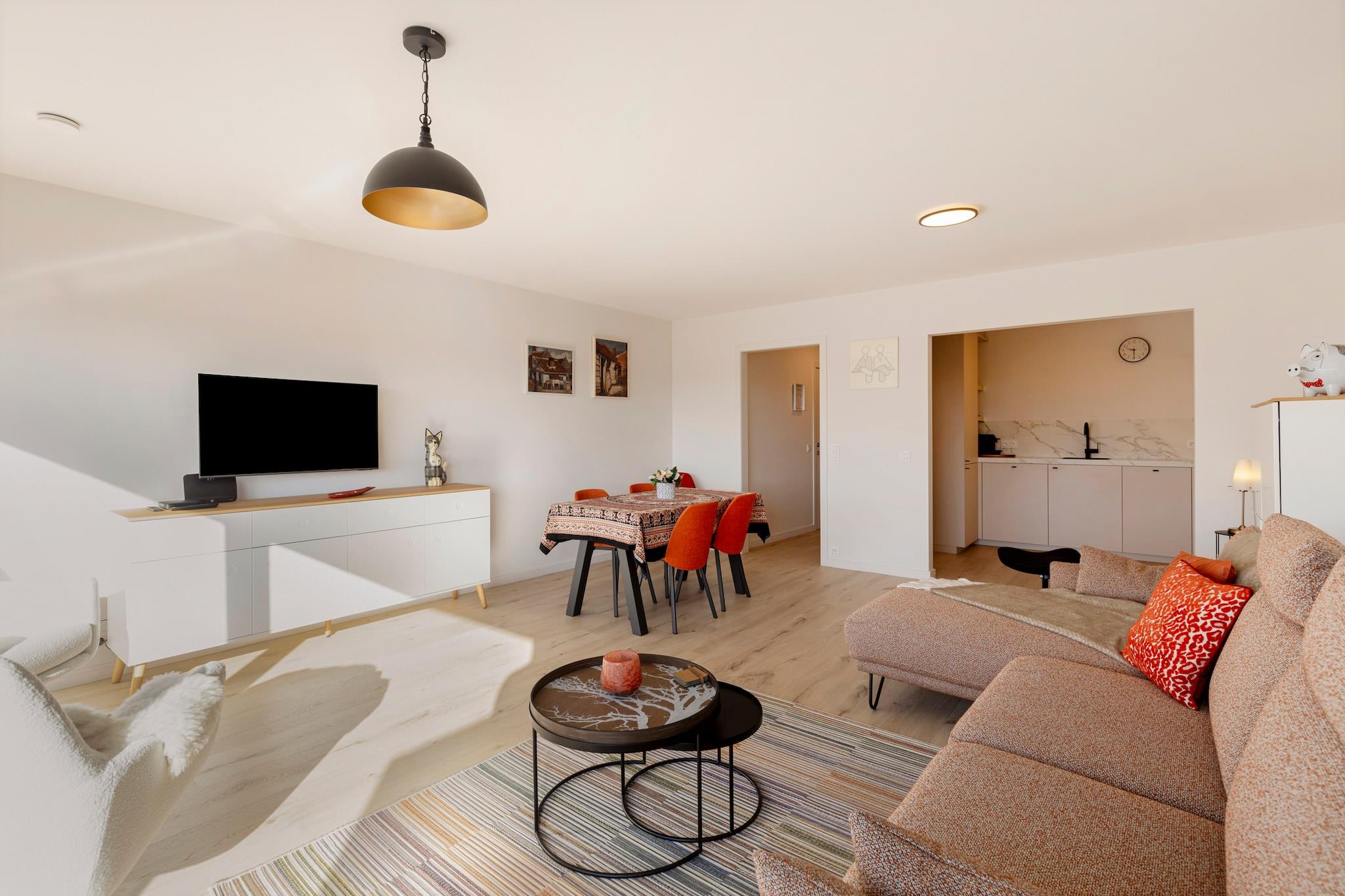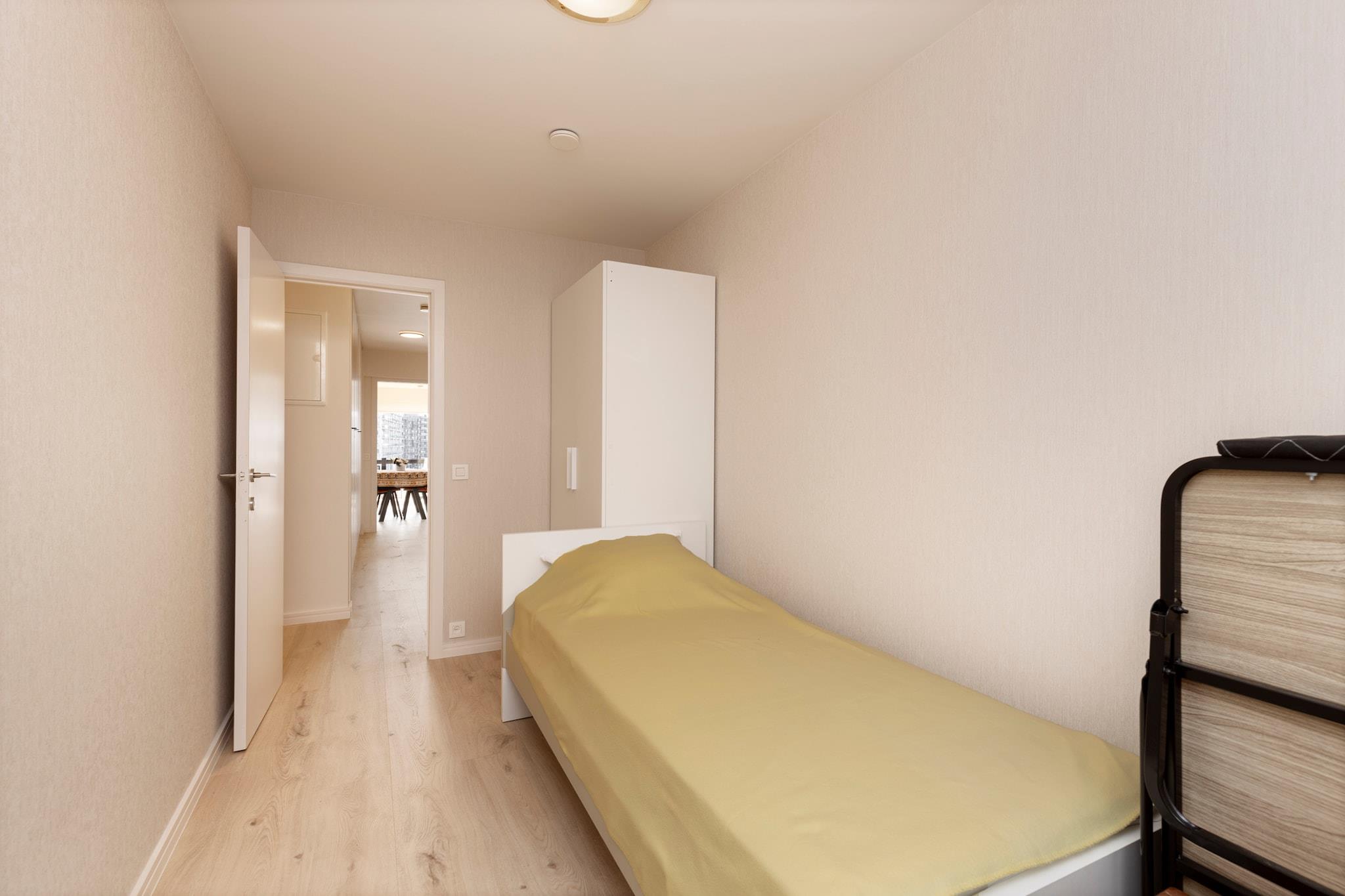 Denne moderne lejlighed giver et behageligt ophold for op til fire gæster. Lejeprisen inkluderer en garage, med en valgfri varmepakke tilgængelig for EURO10 per dag fra oktober til marts. Wi-Fi-adgang sikrer forbindelse, mens rygning og kæledyr ikke er tilladt. Gæster skal selv medbringe sengetøj og håndklæder, da de ikke medfølger. Slutrengøring er ikke inkluderet. Bygningen har fælles gasopvarmning, og elevator giver nem adgang til 4. sals lejlighed. Blankenberge byder på en blanding af historie, kultur og rekreation. I Belle Epoque Centrum kan du opdage byens elegante fortid med udstillinger om arkitektur, mode og kunst. Besøg det historiske House of Majutte, det ældste fiskerhus på den belgiske kyst, eller udforsk SEA LIFE med over 2.500 havdyr. Nyd den naturskønne udsigt fra den belgiske mole eller Oosterstaketsel. Havnefestivalen og Paravang-festerne hylder byens maritime traditioner. Besøg Riant d"Eau Wellness eller Bloso Blankenberges saunakompleks for at slappe af. Vandsportsentusiaster kan tage til O"Neil Beachclub, mens sportselskere kan nyde tennis, padel eller petanque. Lejligheden har et fuldt udstyret køkken med en frituregryde, brødrister, kombiovn, induktionskomfur, køleskab med fryser, kaffemaskine, Nespresso-maskine, opvaskemaskine og elkedel. I stuen er der en hyggelig hjørnesofa, to lænestole, et digitalt tv, et spisebord til fire og en radio med cd-afspiller. Hovedsoveværelset indeholder en dobbeltseng, to garderobeskabe og et natbord, mens det andet soveværelse har en enkeltseng, garderobe og sammenklappelig seng. Badeværelset har brusekabine, håndvask, vaskemaskine-tørretumbler og hårtørrer med separat toilet. For- og bagterrasser med siddepladser og havebord fuldender pladsen.