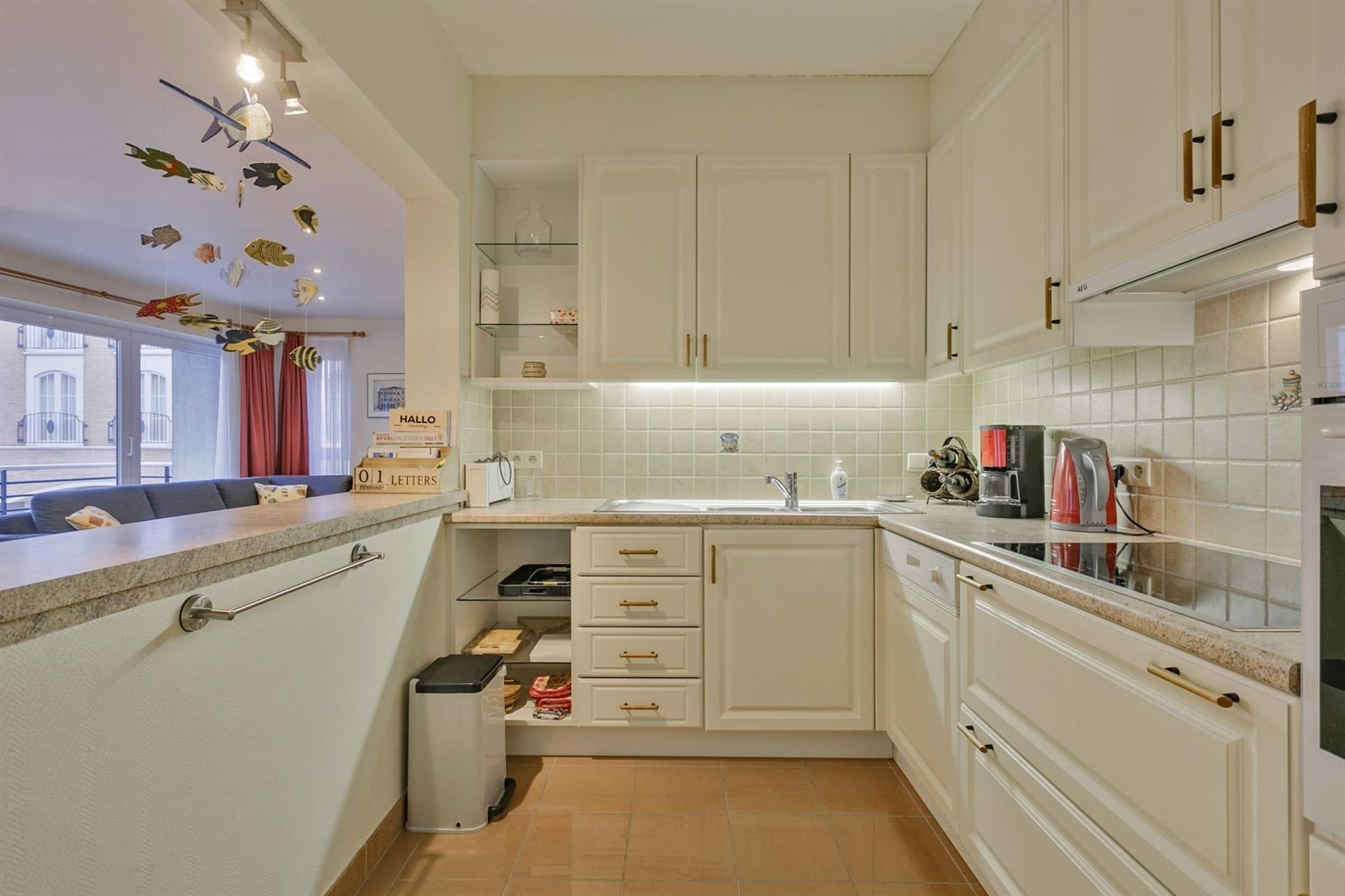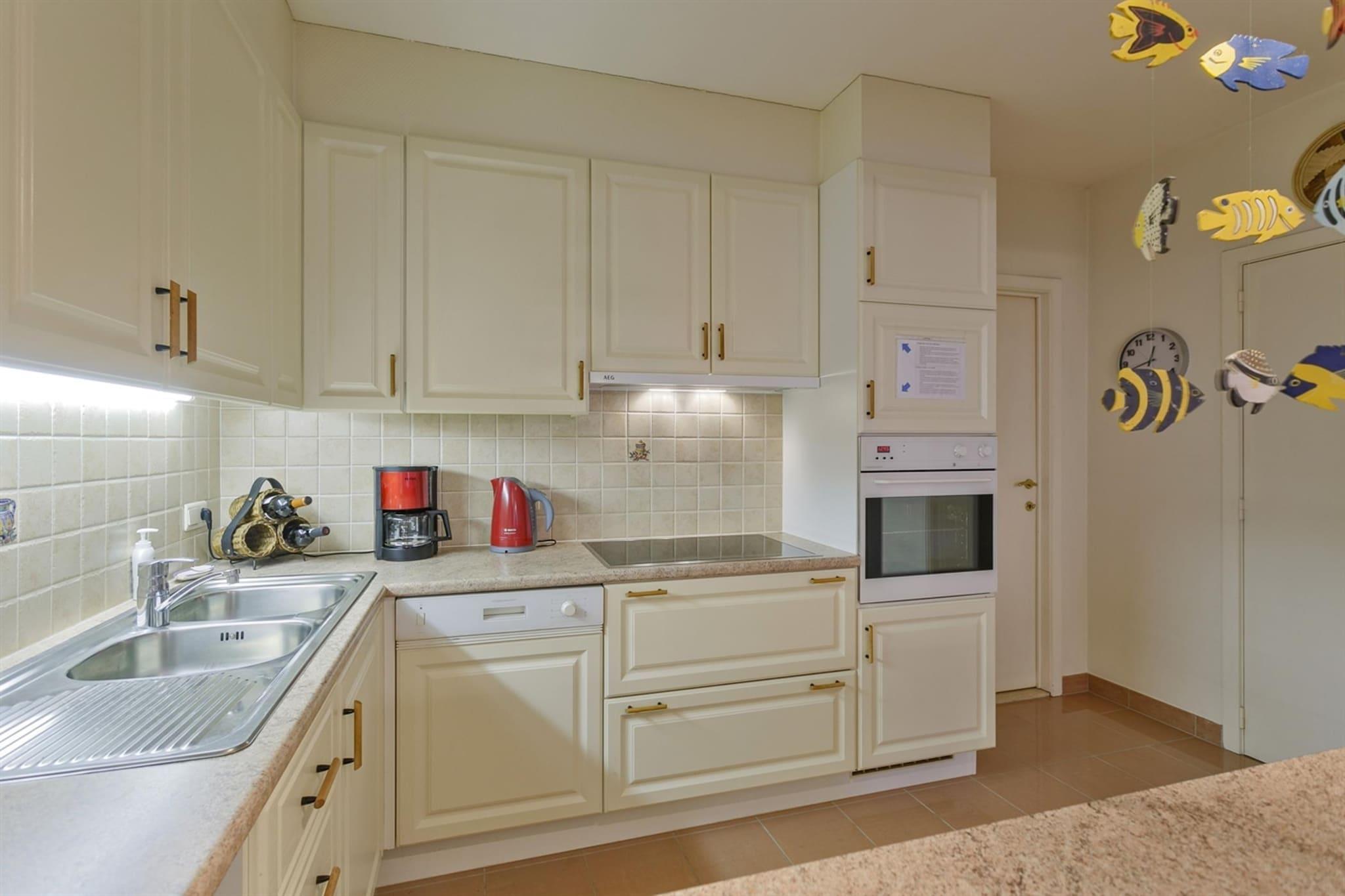Denne rummelige og solrige to-værelses lejlighed er ideelt beliggende nær centrum og kun få skridt fra strandpromenaden. Den lyse stue har en komfortabel hjørnesofa, et spisebord til seks personer og et fladskærms-tv med digitale kanaler. Herfra træder du ind på den hyggelige terrasse, perfekt til at slappe af med terrassestole. Det første soveværelse indeholder en dobbeltseng, mens det andet soveværelse har to enkeltsenge, med en ekstra madras tilgængelig for ekstra komfort. Kæledyr er ikke tilladt, hvilket sikrer et rent og allergenfrit miljø. Et cykelskur er til rådighed for dem, der ønsker at udforske omgivelserne på to hjul. Blankenberge tilbyder en perfekt blanding af historie, kultur og rekreation. På Belle Epoque Centrum kan du lære om byens fremgang som en smart badeby med udstillinger om arkitektur, mode og kunst. Udforsk det historiske House of Majutte, det ældste fiskerhus på den belgiske kyst, eller besøg SEA LIFE for at se over 2.500 havdyr. Nyd den naturskønne udsigt fra den belgiske mole eller Oosterstaketsel, ideel til fotografering og fiskeri. Havnefestivalen og Paravang-festerne fejrer byens maritime traditioner og Belle Époque-arv. For at slappe af kan du slappe af ved Riant d"Eau Wellness eller Bloso Blankenberges saunakompleks. Vandsportsentusiaster kan besøge O"Neil Beachclub, mens sportselskere kan nyde tennis, padel eller petanque i Tennis Club. Glem ikke en sjov aften med bowling på Bowl Inn! Lejligheden er designet til bekvemmelighed og inkluderer et fuldt udstyret køkken med moderne apparater, hvilket sikrer problemfri tilberedning af måltider. Badeværelset har badekar, dobbelt håndvask og toilet for ekstra komfort. Et opbevaringsrum med vaskemaskine og tørretumbler tilbyder ekstra bekvemmelighed, hvilket gør denne lejlighed til et veludstyret hjem væk fra hjemmet.