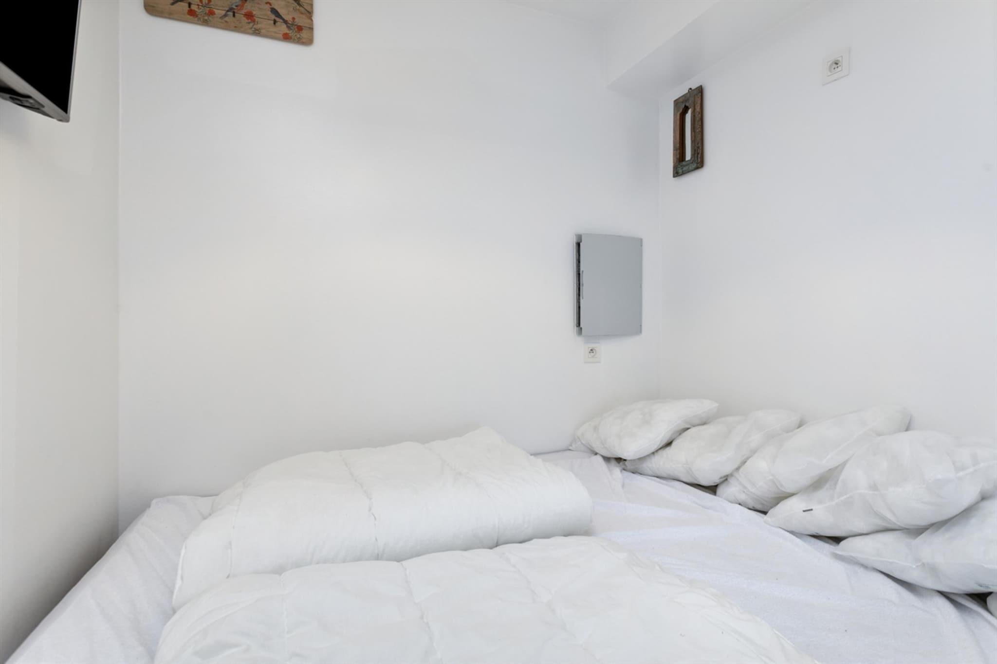 Dette stilfulde, nyrenoverede studie tilbyder en perfekt blanding af komfort og elegance. Med et separat soveområde giver det privatliv, samtidig med at det bevarer en åben og luftig følelse. Højdepunktet ved dette tilbagetog er den fantastiske frontale havudsigt, som kan nydes fra terrassen, hvilket gør det til et ideelt sted for afslapning. Badeværelset er udstyret med bruseniche og toilet, hvilket sikrer bekvemmelighed. Kæledyr er ikke tilladt, hvilket gør det til et godt valg for dem, der søger et allergenfrit miljø. Blankenberge tilbyder en perfekt blanding af historie, kultur og rekreation. På Belle Epoque Centrum kan du lære om byens fremgang som en smart badeby med udstillinger om arkitektur, mode og kunst. Udforsk det historiske House of Majutte, det ældste fiskerhus på den belgiske kyst, eller besøg SEA LIFE for at se over 2.500 havdyr. Nyd den naturskønne udsigt fra den belgiske mole eller Oosterstaketsel, ideel til fotografering og fiskeri. Havnefestivalen og Paravang-festerne fejrer byens maritime traditioner og Belle Epoque-arv. For at slappe af kan du slappe af ved Riant d"Eau Wellness eller Bloso Blankenberges saunakompleks. Vandsportsentusiaster kan besøge O"Neil Beachclub, mens sportselskere kan nyde tennis, padel eller petanque i Tennis Club. Glem ikke en sjov aften med bowling på Bowl Inn! Et fuldt udstyret køkken med komfur, mikroovn og køleskab gør det nemt at tilberede måltider. Den forreste terrasse, møbleret med gårdhavestole og et havebord, giver et hyggeligt udendørs rum til at nyde den friske havbrise. Med moderne bekvemmeligheder og en førsteklasses beliggenhed tilbyder denne studiolejlighed en afslappende og mindeværdig kystflugt.