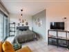 Stueetage: (gang, åbent køkken(kogeplade(glaskeramisk), elkedel, brødrister, ovn, mikrobølgeovn, køleskab(+ fryser)), Stue/soveværelse(enkeltfoldeseng, dobbeltseng(dobbelt dynebetræk, 140 x 200 cm), Fjernsyn(digital), spisebord, sofahjørne), badeværelse(bruser, håndvask)) varme(elektrisk), terrasse, havemøbler, elevator