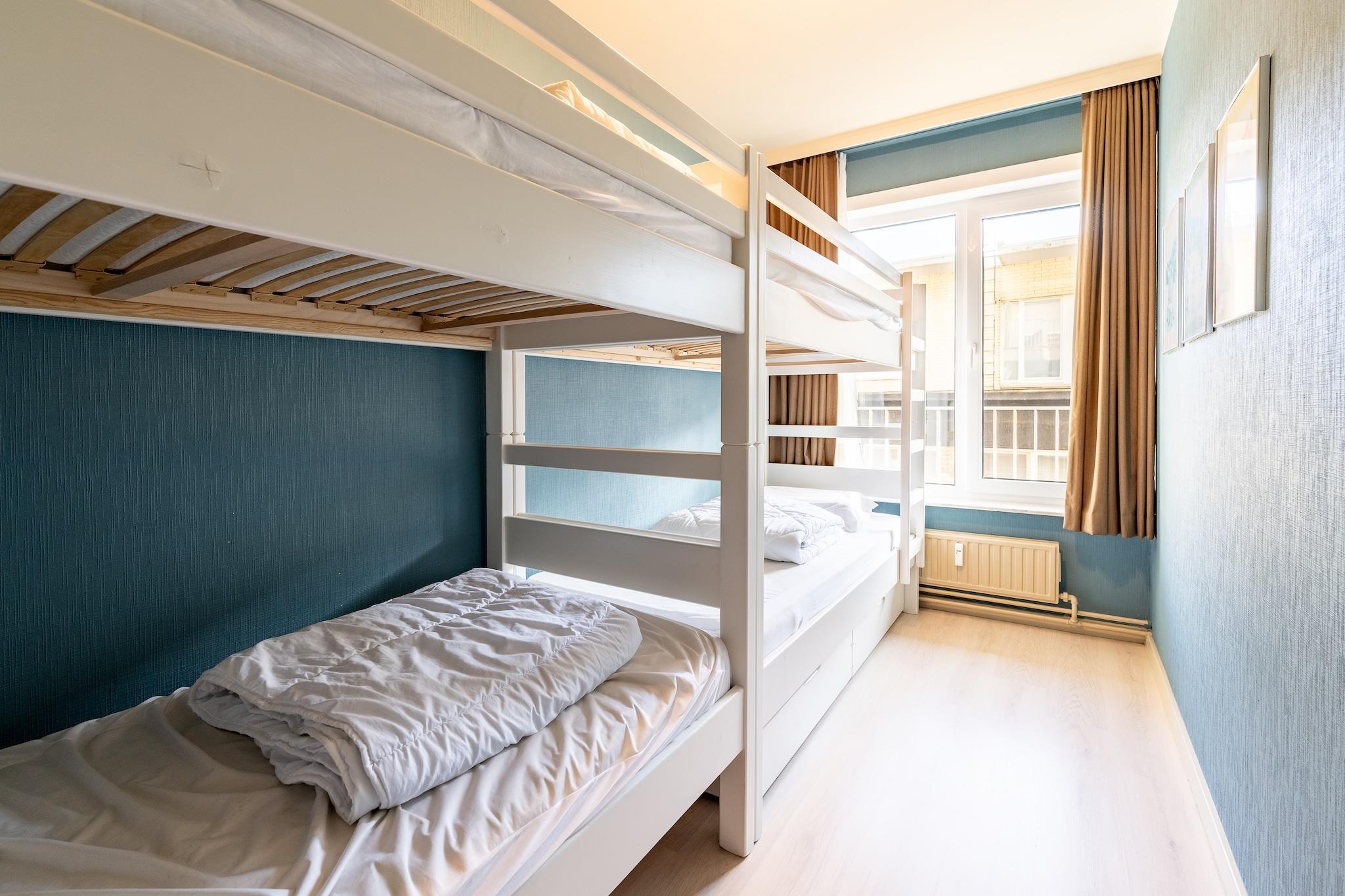 Denne klassisk møblerede lejlighed med 3 soveværelser ligger lige ved strandpromenaden i Zeedijk 201 og tilbyder panoramaudsigt over havet og Blankenberges ikoniske mole. Den er rummelig, hyggelig og veludstyret og ideel til store familier eller grupper på op til 8 gæster, der ønsker at slappe af i hjertet af kysten. Nyd din morgenkaffe på enten den møblerede terrasse foran eller bagpå, der begge tilbyder frisk havbrise og en fantastisk udsigt. Indenfor finder du et traditionelt, men komfortabelt interiør med alle nødvendige bekvemmeligheder. Lejligheden har tre soveværelser: et med en dobbeltseng (1m40), et med 2 enkeltsenge og et ideelt til børn med en køjeseng og en køjeseng med udtræksseng. Der er to badeværelser for ekstra bekvemmelighed: et med badekar, dobbelt håndvask og toilet, plus et separat brusebad med håndvask og et ekstra gæstetoilet. Køkkenet er fuldt udstyret med elektrisk komfur, ovn, mikrobølgeovn, stort køleskab med fryser, opvaskemaskine, filterkaffemaskine, brødrister, blender, termokande og alt nødvendigt køkkenudstyr. Der er dyner, puder, sengetæpper og madrasbeskyttere. Du finder også Wi-Fi, fladskærms-tv med kabelkanaler, cd-afspiller, strygejern og rengøringsredskaber. Opvarmet med central naturgas (Caloribel), hvor energiomkostningerne fratrækkes depositummet. Der er elevatoradgang (kørestolsvenlig). Bemærk venligst: Dette er en ikke-ryger lejlighed, og kæledyr er ikke tilladt. Allergikere bør være opmærksomme på tilstedeværelsen af tæpper og tæpper. Valgfri parkering i garage i nærheden er tilgængelig efter anmodning. Med molen, strandpromenaden og det livlige bycentrum kun få skridt væk, er alt hvad du behøver lige uden for din dør.