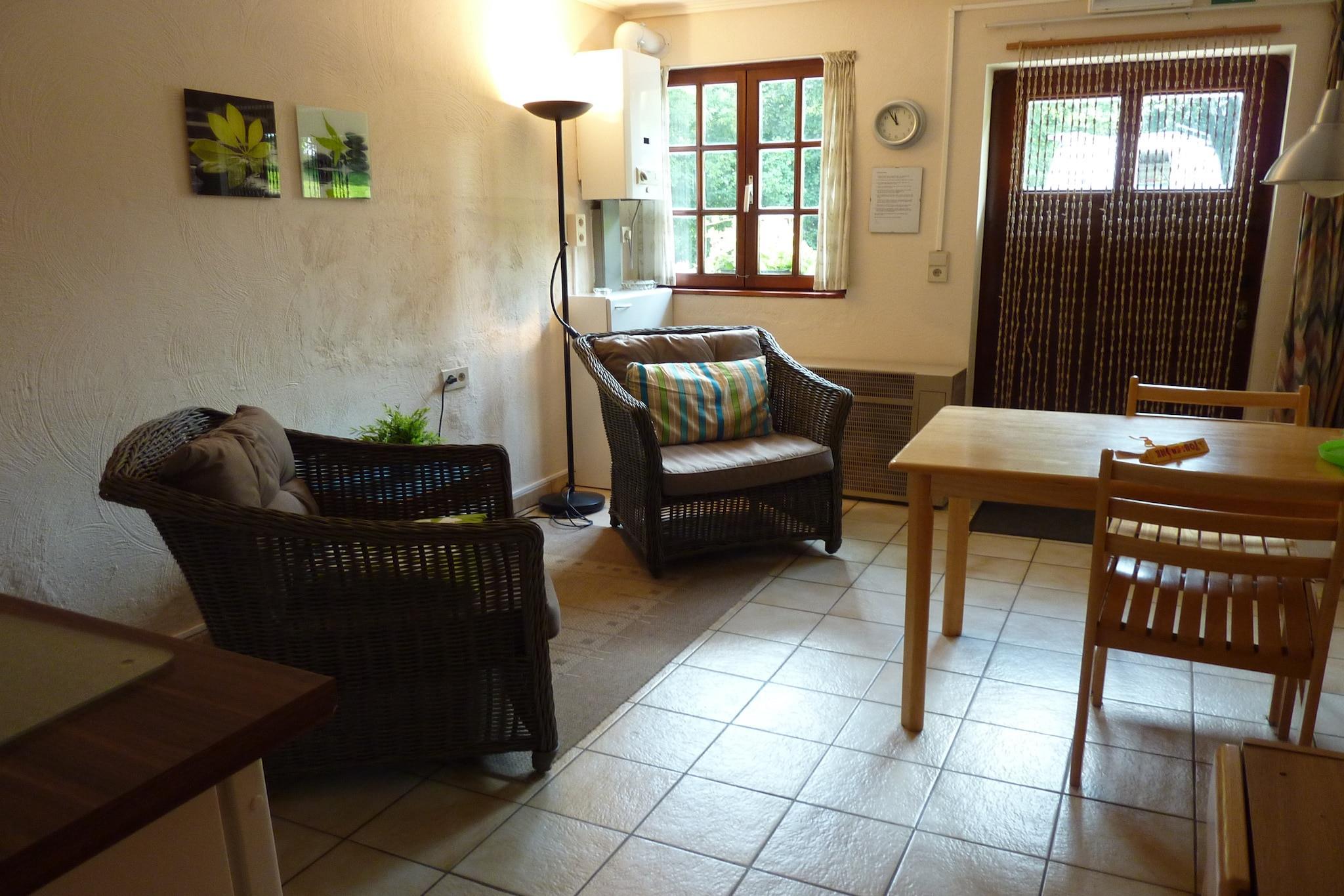 Stueetage: (Stue, tekøkken(komfur(Komfur med to kogeplader, elektrisk), kaffemaskine(kaffetragt), mikrobølgeovn, køleskab), soveværelse(dobbeltseng(140 x 200 cm)), badeværelse(badekar, håndvask, toilet), badekar med bruser, håndvask) kakkelovn(gas), CD-afspiller, havemøbler, grill, barneseng, barnestol