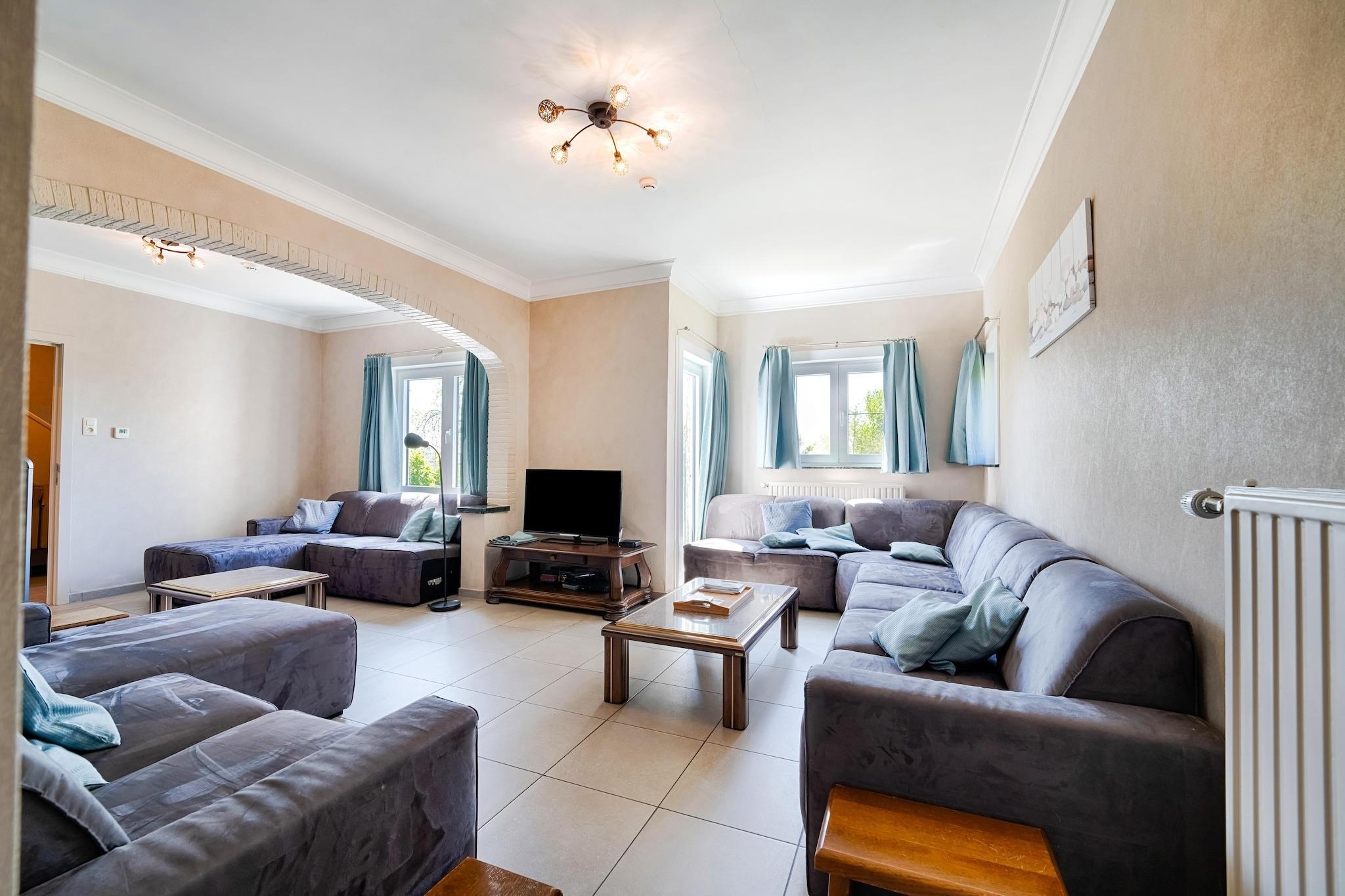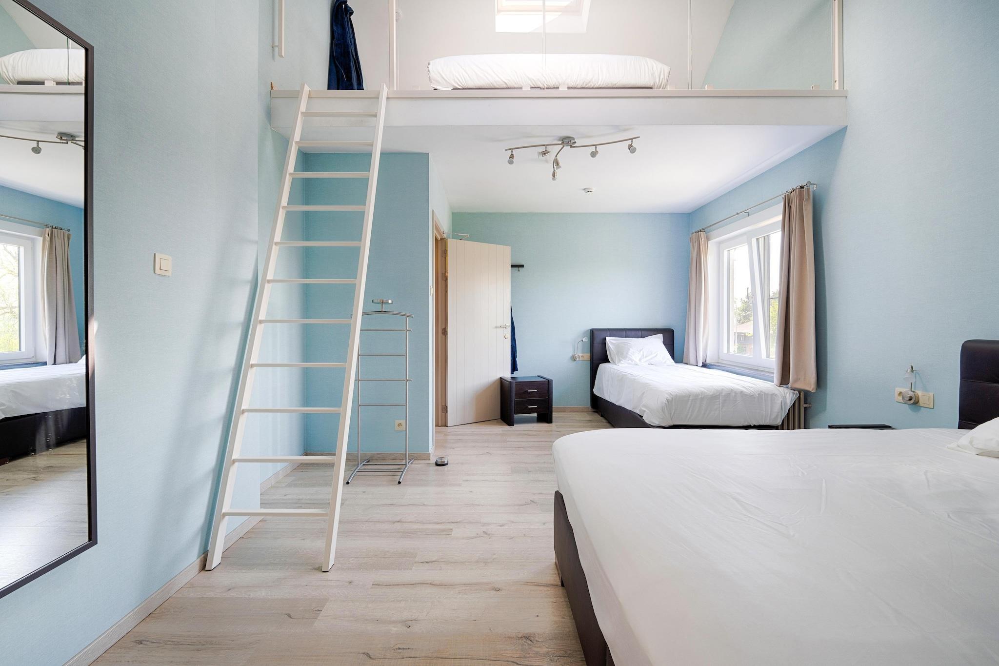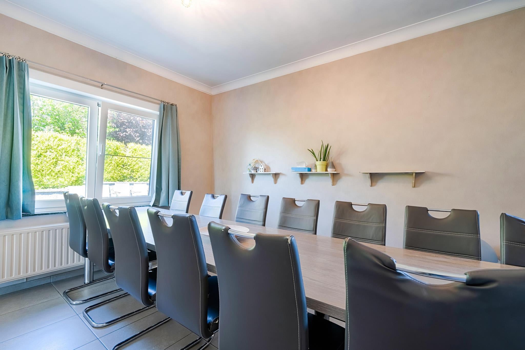Feriehuset 'Villa Blickenberg' i det naturskønne Borgloon er en luksusvilla til op til 15 gæster. Med fire rummelige soveværelser med 11 sengepladser og to mezzaniner med fire ekstra sovepladser er villaen perfekt til familier eller grupper. Hvert soveværelse har mindst én dobbelt boxmadras, mens tre moderne badeværelser har badekar og/eller bruser, håndvask og toilet. Det åbne køkken er fuldt udstyret med opvaskemaskine og har et stort spisebord til fælles måltider. Stuen byder på rigelig siddeplads og digital-tv, med gratis Wi-Fi overalt. Et praktisk vaskerum med vaskemaskine, tørretumbler og strygejern sikrer bekvemmelighed ved længere ophold. Udenfor kan villaen prale af en rummelig terrasse, have med siddepladser og en stor jacuzzi til ti personer med udsigt over det grønne. Villa Blickenberg ligger på det højeste punkt i Groot-Loon og tilbyder en betagende udsigt over dalen og blomsterregionen Haspengouw. I blomstringssæsonen fra april kan gæsterne udforske naturskønne ruter på cykel eller til fods, mens Borgloon byder på rig historie, natur og lokal gastronomi.