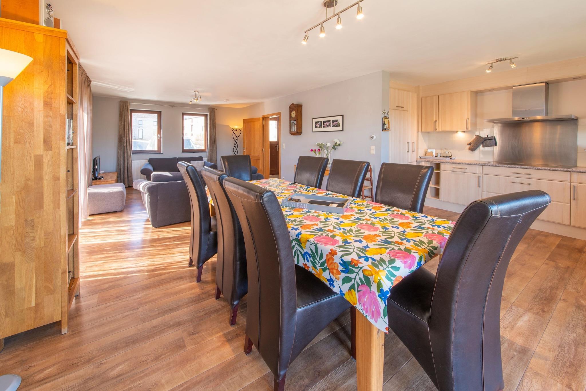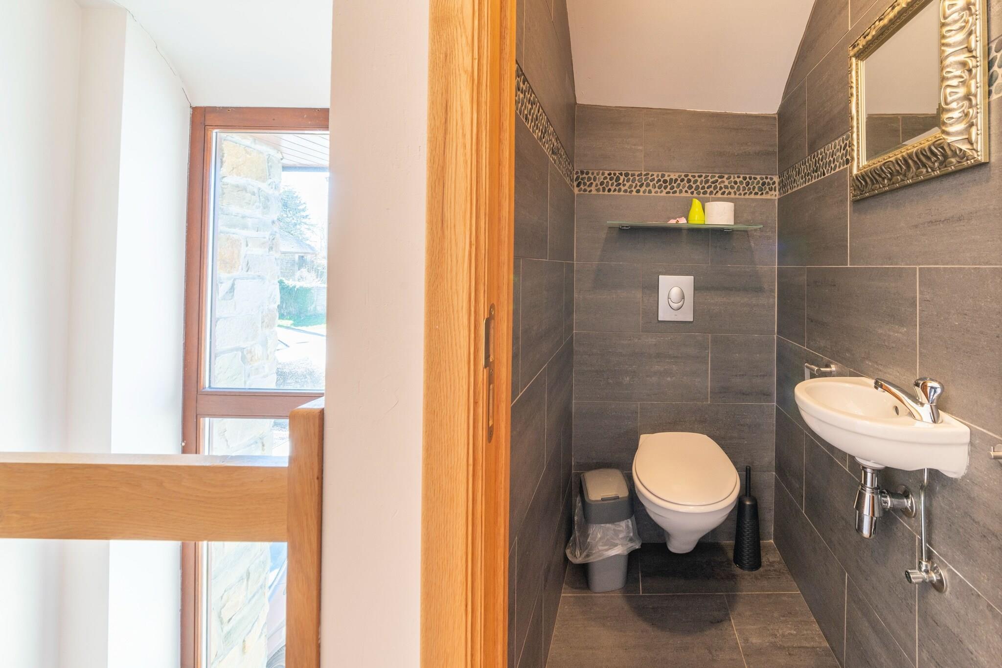 Denne indbydende villa i Borlon tilbyder et fredeligt tilflugtssted kun 5 km fra den charmerende by Durbuy, kendt som den mindste by i verden. Perfekt til familier eller grupper, ejendommen er omgivet af natur og tæt på attraktioner som den naturskønne flod Ourthe, den frodige Borlon-skov og det majestætiske Château de Petite Somme. Golfentusiaster kan spille på den nærliggende Golf de Durbuy eller Five Nations Golf Club, mens historieelskere vil nyde at udforske Durbuys brostensbelagte gader og middelalderarkitektur. Villaen spænder over flere etager og har fire soveværelser, tre badeværelser og en hyggelig stue med tv. Det fuldt udstyrede køkken omfatter kaffemaskine, ovn, mikroovn, opvaskemaskine og juicer. Et legerum med bordfodbold, et vaskerum med vaskefaciliteter og børnevenlige faciliteter såsom en tremmeseng og høj stol gør den ideel til længere ophold. Udendørs kan gæsterne slappe af på terrassen, nyde måltider i haven med grill og nyde de fredfyldte omgivelser. Spisemuligheder i nærheden omfatter La Bru'sserie for raffineret belgisk køkken, Restaurant Victoria for klassiske europæiske retter og Brasserie du Five Nations for et afslappet måltid efter en runde golf.