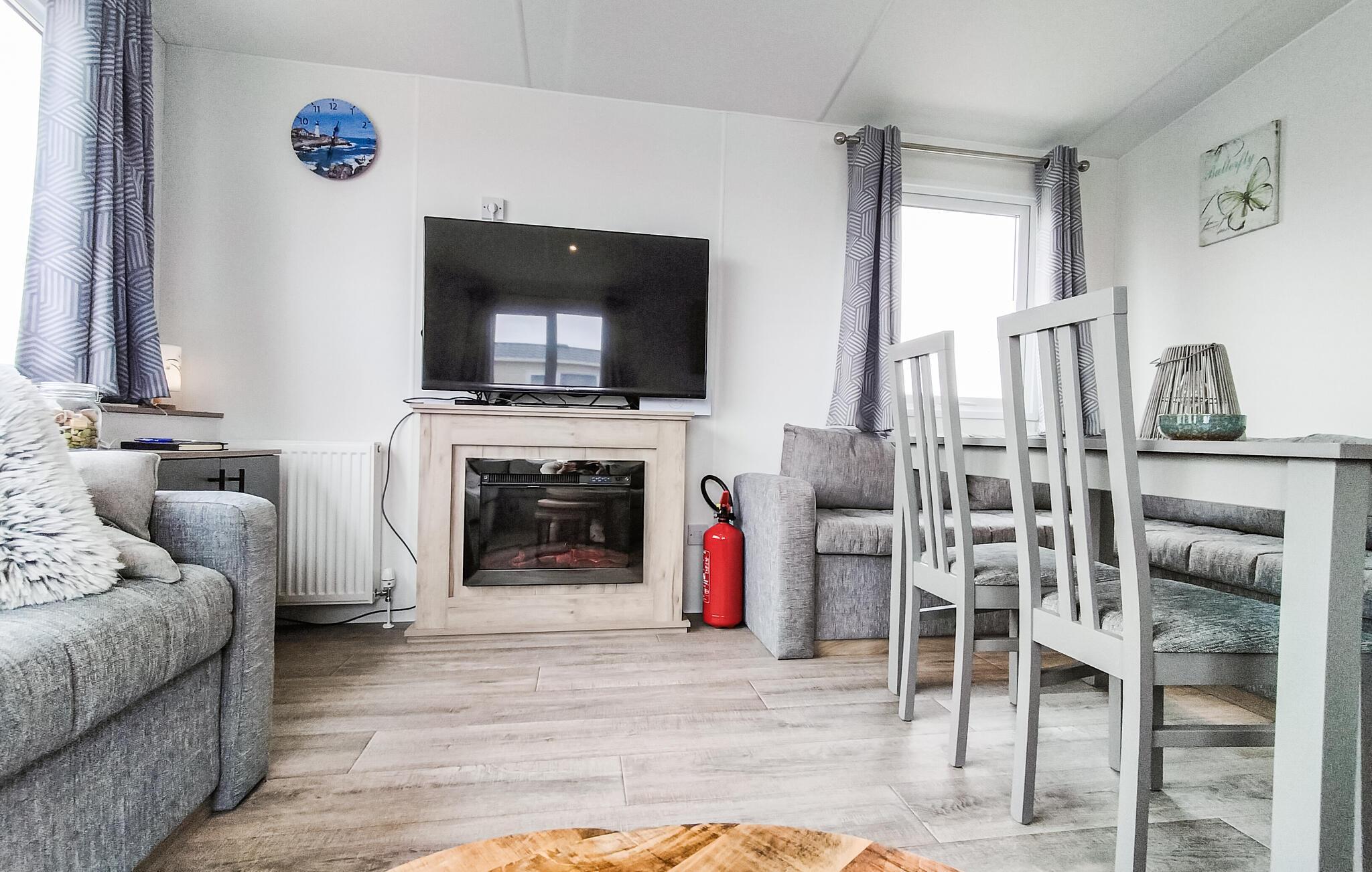 Dette lyse og komfortable feriehus tilbyder jer et hyggeligt hjem under en oplevelsesrig og aktiv ferie med familien. Lav jeres yndlingsmåltider i det kompakte køkken, brug den indbydende spiseplads til dagens måltider eller sociale spilleaftener, og sæt jer godt til rette i den hyggelige sofa til en film eller en stille læsestund.