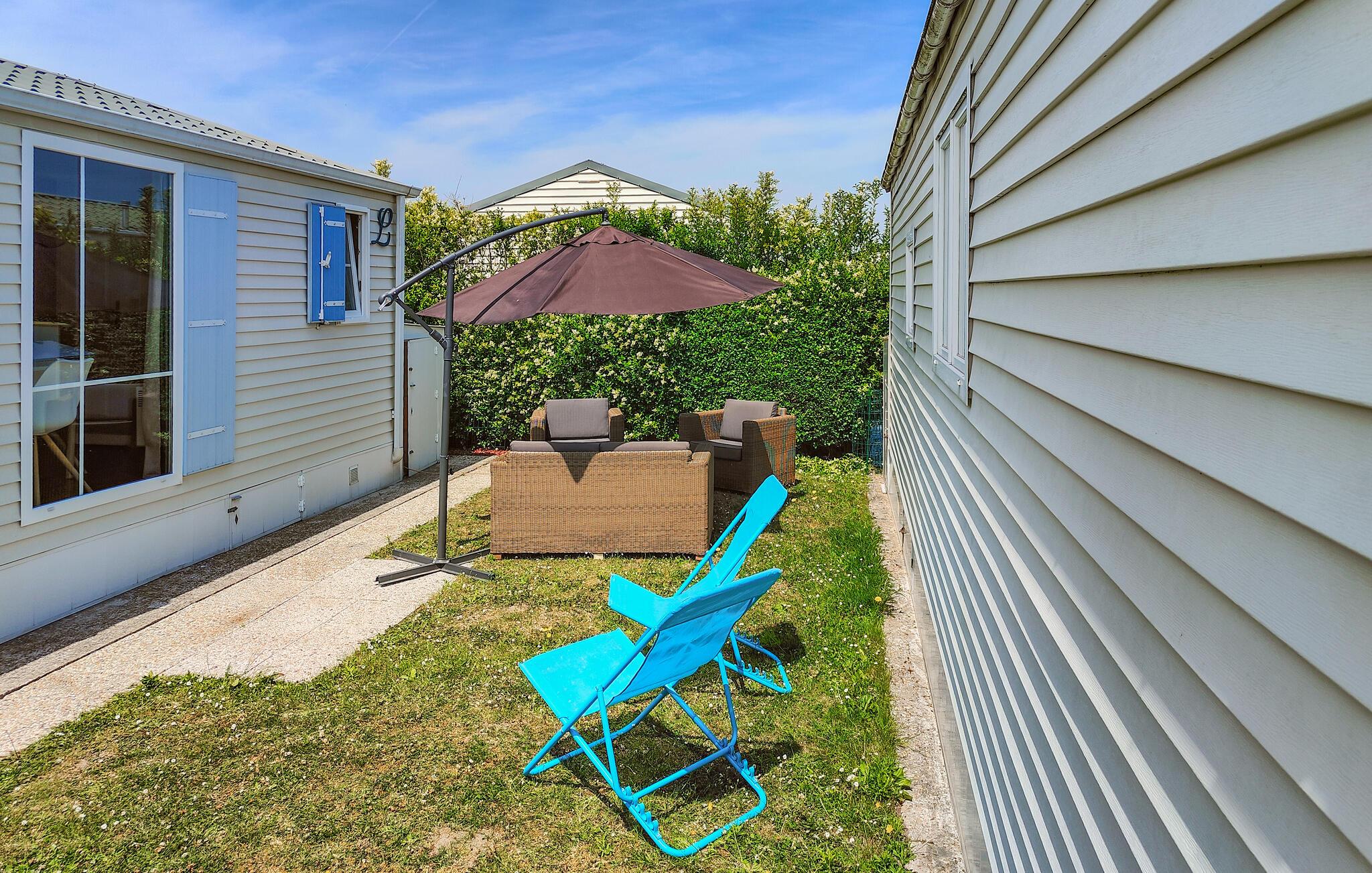 Dette feriehus er den ideelle base for en vellykket ferie i Belgien nær stranden. Dette kompakte og praktisk indrettede feriehus indeholder alt, hvad der skal til for et behageligt ophold. Det ligger på en velholdt campingplads med en stor legeplads og en fiskesø i gåafstand. Start dagen i køkkenet og tilbered familiens morgenmad. Den hyggelige sofakrog er ideel til sjove spil eller afslappende filmaftener. Udenfor kan I tilbringe muntre aftener i hyggeligt selskab på den hyggelige terrasse eller nyde jeres fritid med en kop kaffe. Jeres feriehus i Bredene ligger kun en kort afstand fra den nærmeste smukke sandstrand. Tag afslappende vandreture langs kysten eller svøm i de forfriskende bølger. De charmerende strande i Oostende, som den kaldes badebyernes dronning, inviterer jer også til at svømme. Besøg Fort Napoleon og kunstmuseet Mu.ZEE, eller udforsk historien om Oostendes havn på en maritim spadseretur.