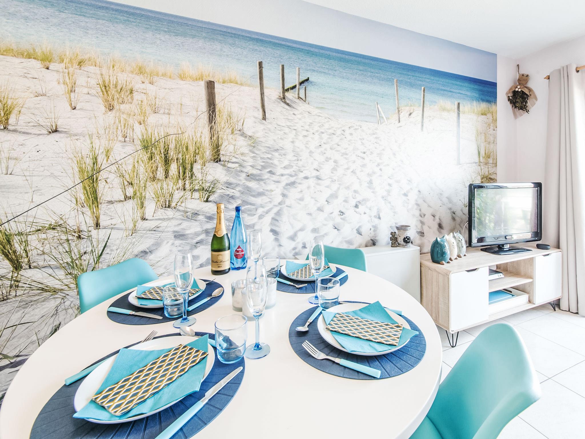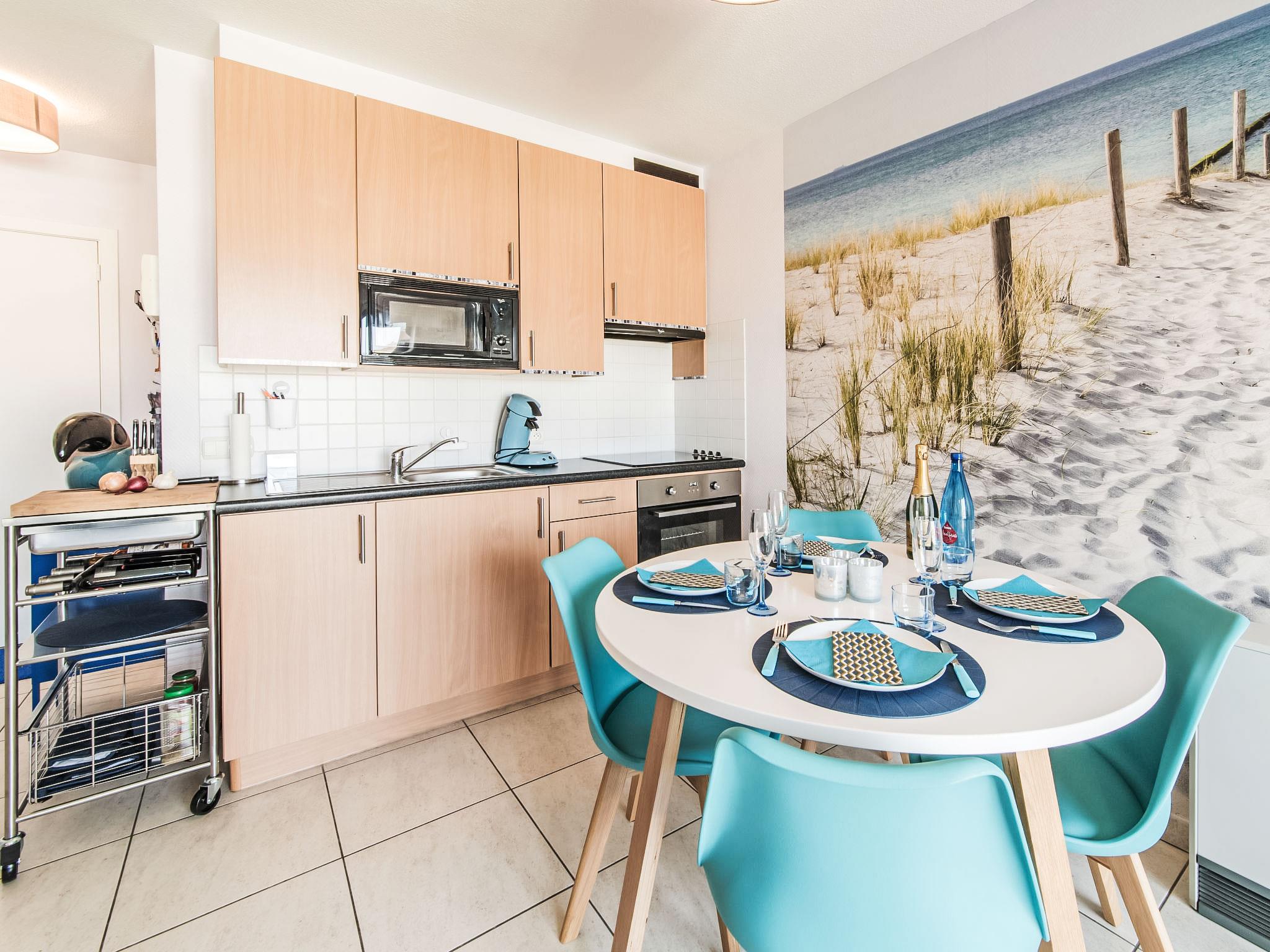 "Oase with parking", 2-room apartment 42 m2 on 2nd floor. Object suitable for 2 adults + 2 children. Bright, modern and cosy furnishings: living/dining room with dining table, TV, digital TV, international TV channels and electric heating. Exit to the balcony. Alcove with 1 x 2 bunk beds (90 cm, length 200 cm). 1 double bedroom with 1 double bed (160 cm, length 200 cm). Open kitchen (oven, dishwasher, 4 ceramic glass hob hotplates, toaster, microwave, electric coffee machine, Capsules for coffee machine (Senseo) free) with dining table. Bath/shower/WC. Balcony 3 m2. Balcony furniture. View of the swimming pool and the garden. Facilities: children's high chair, baby cot for up to 2 year olds, hair dryer. Internet (WiFi, free). Garage space n 14 (1 car). Please note: non-smokers only. Smoke alarm, fire extinguisher. Instead of an enclosed bedroom, some sleeping areas are located in an open-plan area (gallery, alcove, etc.). LD378646
