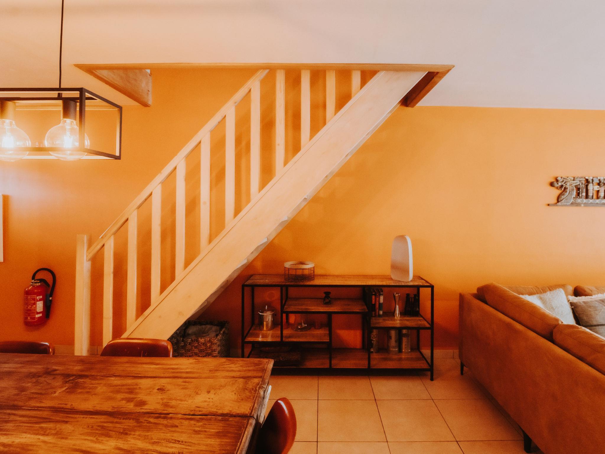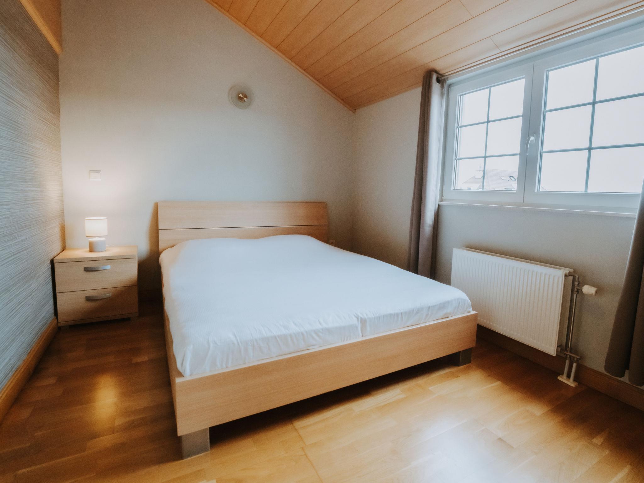 "The Horseshoe", 3-room apartment 100 m2 on 2 levels on 1st floor. Practical and comfortable furnishings: living/dining room with dining table, TV and international TV channels (flat screen), gas heating. Open kitchen (oven, dishwasher, 4 ceramic glass hob hotplates, toaster, kettle, microwave, freezer, electric coffee machine). Sep. WC. Upper floor: 2 rooms, each room with 1 double bed (1 x 180 cm, length 200 cm). Shower/WC. 2nd upper floor: mezzanine with sloping ceilings with 2 beds (90 cm, length 200 cm). Balcony 10 m2, south-east facing position. Balcony furniture. Distant view of the countryside. Facilities: baby cot, hair dryer. Internet (WiFi, free). Garage space n 11 on the property (1 car). Please note: non-smoking house. No lift.
