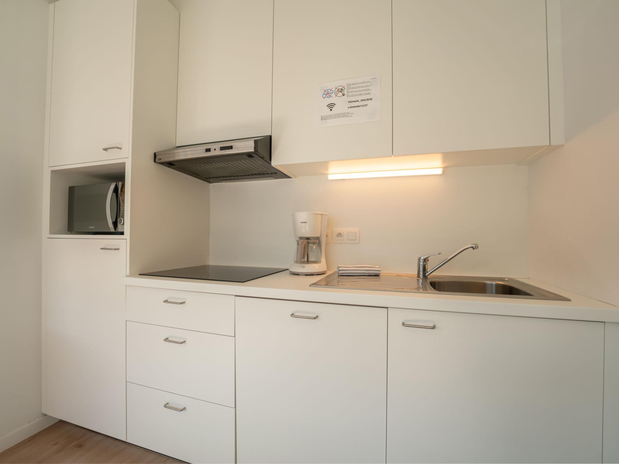 "New Dahlia 15", 3-room chalet 44 m2. Comfortable and modern furnishings: open living/dining room with dining table, digital TV, international TV channels and air conditioning. Exit to the terrace. 1 double bedroom with 1 double bed (160 cm, length 200 cm), hand-basin, shower/WC and air conditioning. Exit to the terrace with 2 beds (80 cm, length 200 cm), hand-basin and shower. Open kitchen (dishwasher, 4 induction hot plates, toaster, kettle, freezer, combination microwave). Heating. Terrace furniture. Facilities: hair dryer. Internet (WiFi, free). Parking (1 car). Please note: non-smoking house. Maximum 1 pet/ dog allowed. TV only NL, FR. Smoke alarm, fire extinguisher.