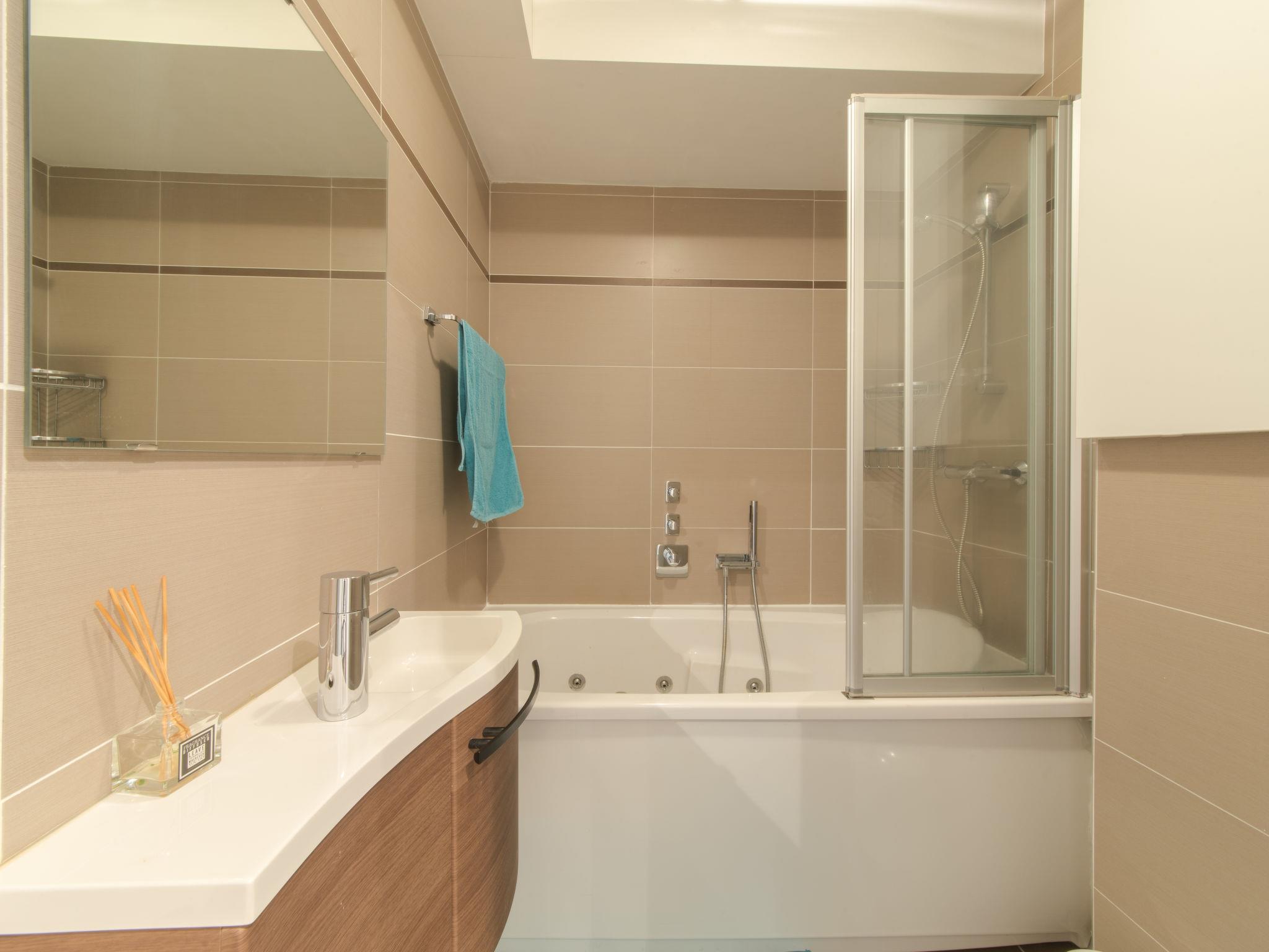 "Sea Breeze", 2-room apartment 55 m2. Tasteful furnishings: living/dining room with 1 double sofabed, digital TV, flat screen, radio and electric heating. Exit to the balcony. 1 double bedroom with 1 sofabed (160 cm, length 200 cm), 1 double bed (160 cm, length 200 cm), shower/WC. Open kitchen (dishwasher, 4 ceramic glass hob hotplates, electric coffee machine, combination microwave). Bathroom, double hand-basin, hydro massage bath. Facilities: washing machine, children's high chair, baby cot. Internet (WiFi, free). Garage space n 8 (1 car) at the house. Please note: non-smoking house. Maximum 1 pet/ dog allowed.