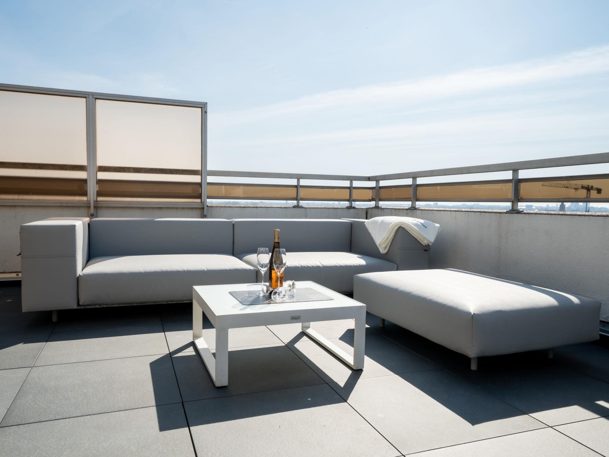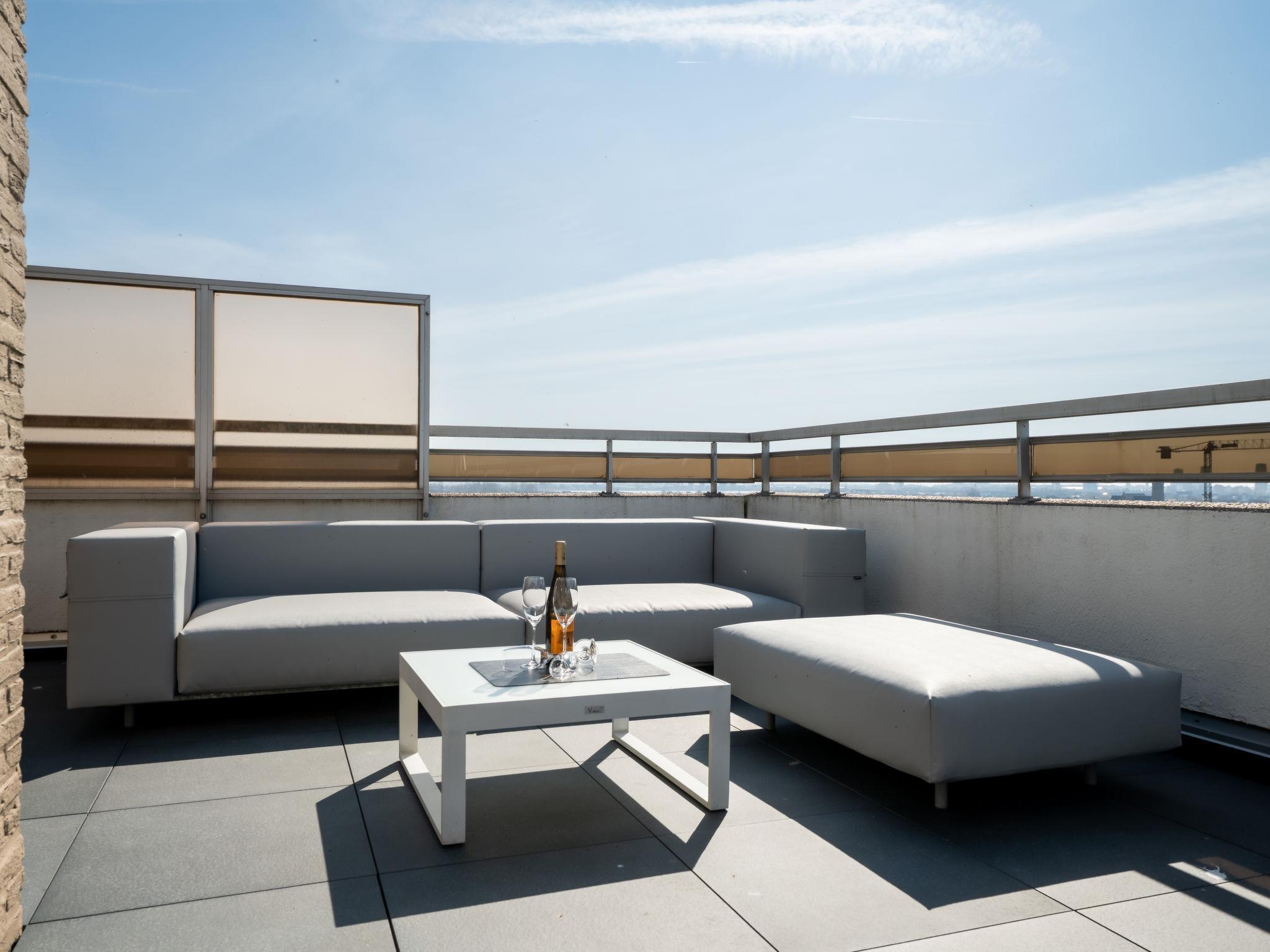 "Seaview 1", 3-room penthouse 115 m2 on 2 levels on 9th floor, south-west facing position. Fully renovated in 2021, comfortable and modern furnishings: entrance hall with gas heating. Living/dining room with dining table, digital TV and international TV channels. 1 double bedroom with 1 double bed (180 cm, length 200 cm). Open kitchen (oven, dishwasher, 4 ceramic glass hob hotplates, toaster, kettle, microwave, electric coffee machine). Shower/WC. Upper floor: 1 double bedroom with 1 double bed (180 cm, length 200 cm), digital TV and international TV channels. Kitchenette (dishwasher, 4 ceramic glass hob hotplates, combination microwave). Shower/WC. 2 small balconies 3 m2, south-west facing position and north-east facing position, large terrace 30 m2, south-west facing position. Terrace furniture. Beautiful view of the sea. Facilities: washing machine, hair dryer. Internet (WiFi, free). Parking space n 76 (1 car). Please note: non-smoking house. Smoke alarm, fire extinguisher. BE8450.610.6