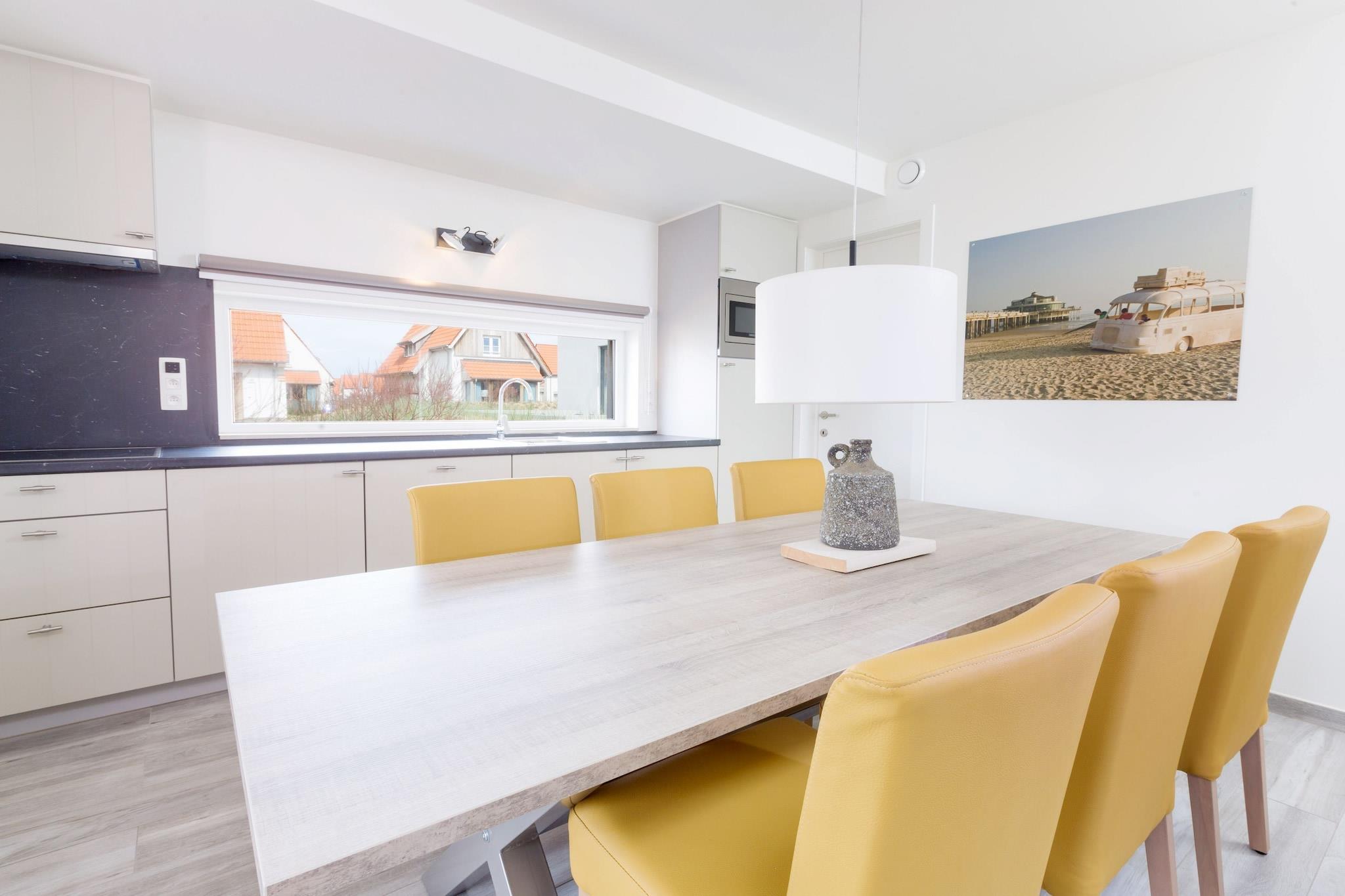 Velkommen til dit stilfulde og rummelige tilflugtssted i hjertet af Breeduyn Village, kun en kort 10-minutters gang fra Bredenes brede, sandede Nordsøstrand. Denne dobbelthusvilla blander moderne bekvemmelighed med kystcharme og byder på et lyst opholdsområde med et smart-tv og et elegant åbent køkken udstyret med opvaskemaskine, kombi-mikroovn og kaffemaskine. Med et soveværelse og badeværelse i stueetagen, plus yderligere to soveværelser og et andet badeværelse med badekar eller bruser ovenpå, kan dette hjem komfortabelt sove op til seks gæster - ideel til familier eller venner, der rejser sammen. Træd udenfor til din private have med en møbleret terrasse - perfekt til langsomme morgener med kaffe eller fredelige aftener under stjernerne. Du er mindre end 10 km fra den livlige kystby Oostende med dens promenade, butikker og restauranter. Udforsk det lokale belgiske køkken på familievenlige steder som Brasserie Duinenhoeve eller fiske- og skaldyrshavnen Bleu Chaud. Parkering er bekvemt placeret i nærheden af din villa, hvilket gør dagsture til Brugge eller De Haan til en leg. Medbring dine lodne ledsagere - kæledyr er hjerteligt velkomne her! Bredene Beach byder på zoner uden snor fra midten af oktober til midten af marts, og nærliggende klitstier er perfekte til naturskønne hundeture. Besøg lokale caféer med kæledyrsvenlige terrasser eller slap af i villaens have, hvor dine kæledyr også kan nyde udendørslivet. Din kystflugt er ikke kun for dig – det er også for din firbenede familie.