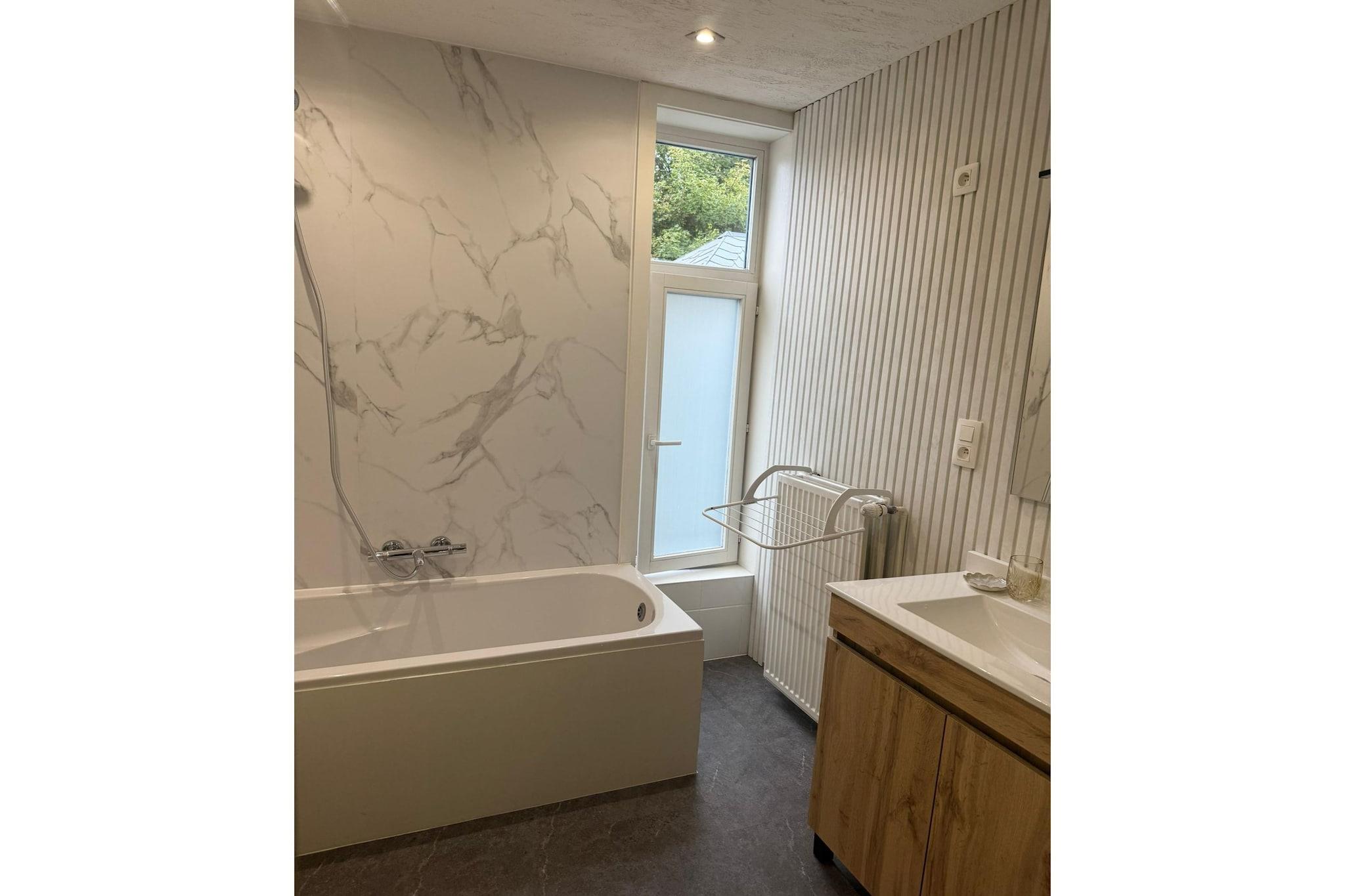 Dette rummelige feriehus på flere niveauer i Brügge, Vestflandern, kan komfortabelt rumme op til 10 gæster, hvilket gør det ideelt til store familier eller grupper. Stueetagen har et stort køkken med havedøre, udstyret med et keramisk komfur, kombineret mikroovn, mikroovn, opvaskemaskine, køle-fryseskab, TV (kabel) og radio. Der er to badeværelser med bruser og håndvask samt separat toilet med håndvask. Ovenpå byder første sal på et soveværelse, der er tilgængeligt via en forholdsvis stejl trappe med en dobbeltseng, sammen med to badeværelser, hver med enten badekar eller bruser, håndvask, toilet og hårtørrer. Anden sal har et andet soveværelse med dobbeltseng og et tredje soveværelse med to køjesenge. På tredje sal fuldender et fjerde soveværelse med dobbeltseng og TV soveværelserne. Nyd en privat indhegnet terrasse med havemøbler, centralvarme, kaffemaskine, børneseng og betalingsparkering. Beliggende kun 1 km fra centrum, restauranter, offentlig transport og natteliv, kombinerer dette hjem komfort og bekvemmelighed med gratis Wi-Fi overalt.