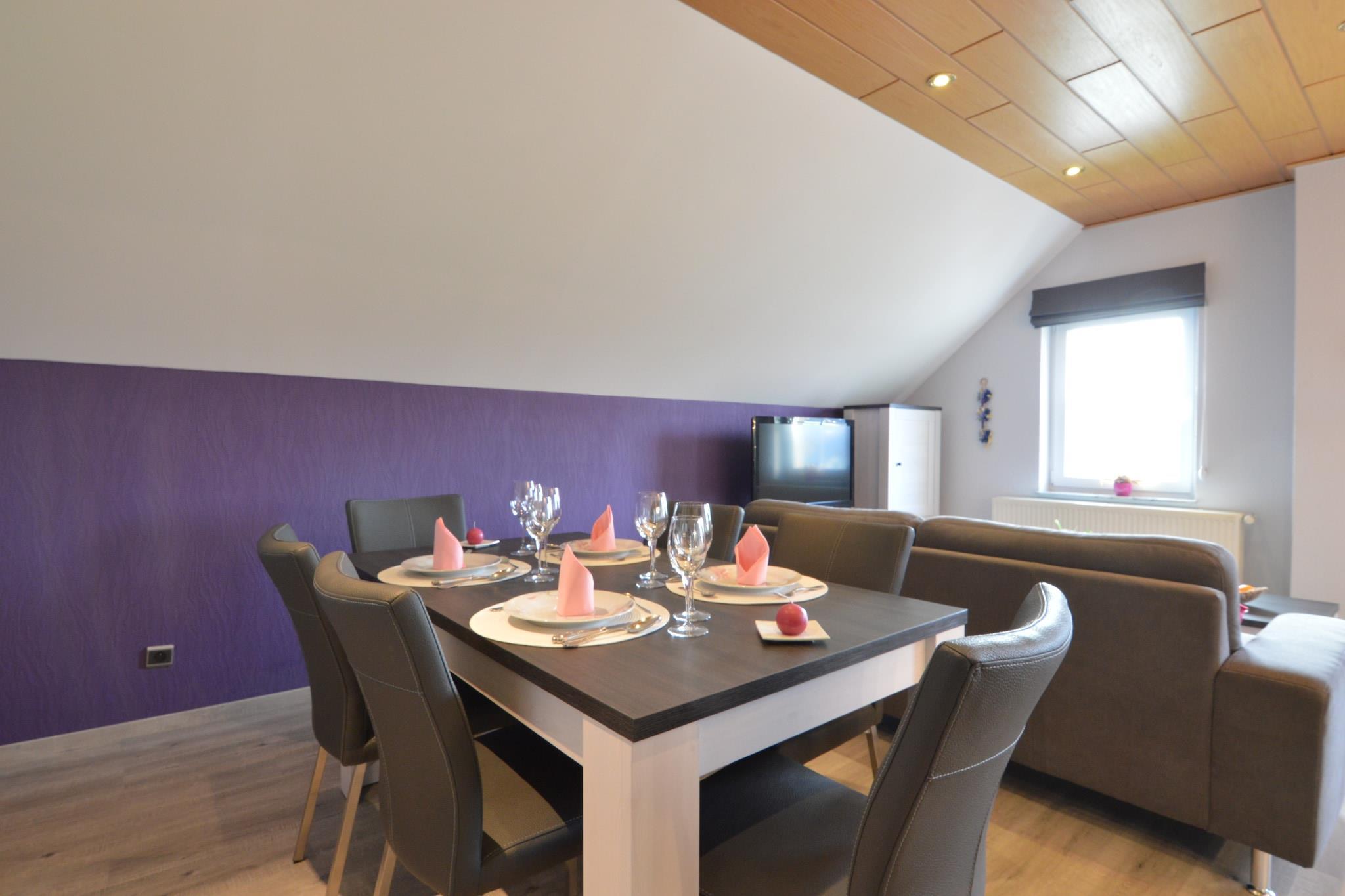 Denne rummelige lejlighed på første sal har moderne, komfortable møbler. Du deler indgangen med de diskrete ejere, som bor i stueetagen og gerne fortæller mere om regionen på forespørgsel. Der er mange afmærkede vandrestier og cykelstier (den berømte RAVeL) i naturparken Hoge Venens smukke natur, hvor du også kan se rådyr, ræve og harer med lidt held. Du kan nå Luxembourg og Tyskland på ingen tid i bil. Besøg Clervaux, Burg-Reuland, Vielsalm og Malmedy og oplev de mange seværdigheder, gode butikker og hyggelige restauranter der. For fans af mere action og eventyr er der Eastbelgium Action, Fun & Karting Center. Men frem for alt, nyd den allestedsnærværende ro i Ardennernes landskab! Når vejret er godt, kan du benytte haven og terrassen. Huset ligger på en gård, men dyrene, herunder køer og høns, holdes nu mere rekreativt.