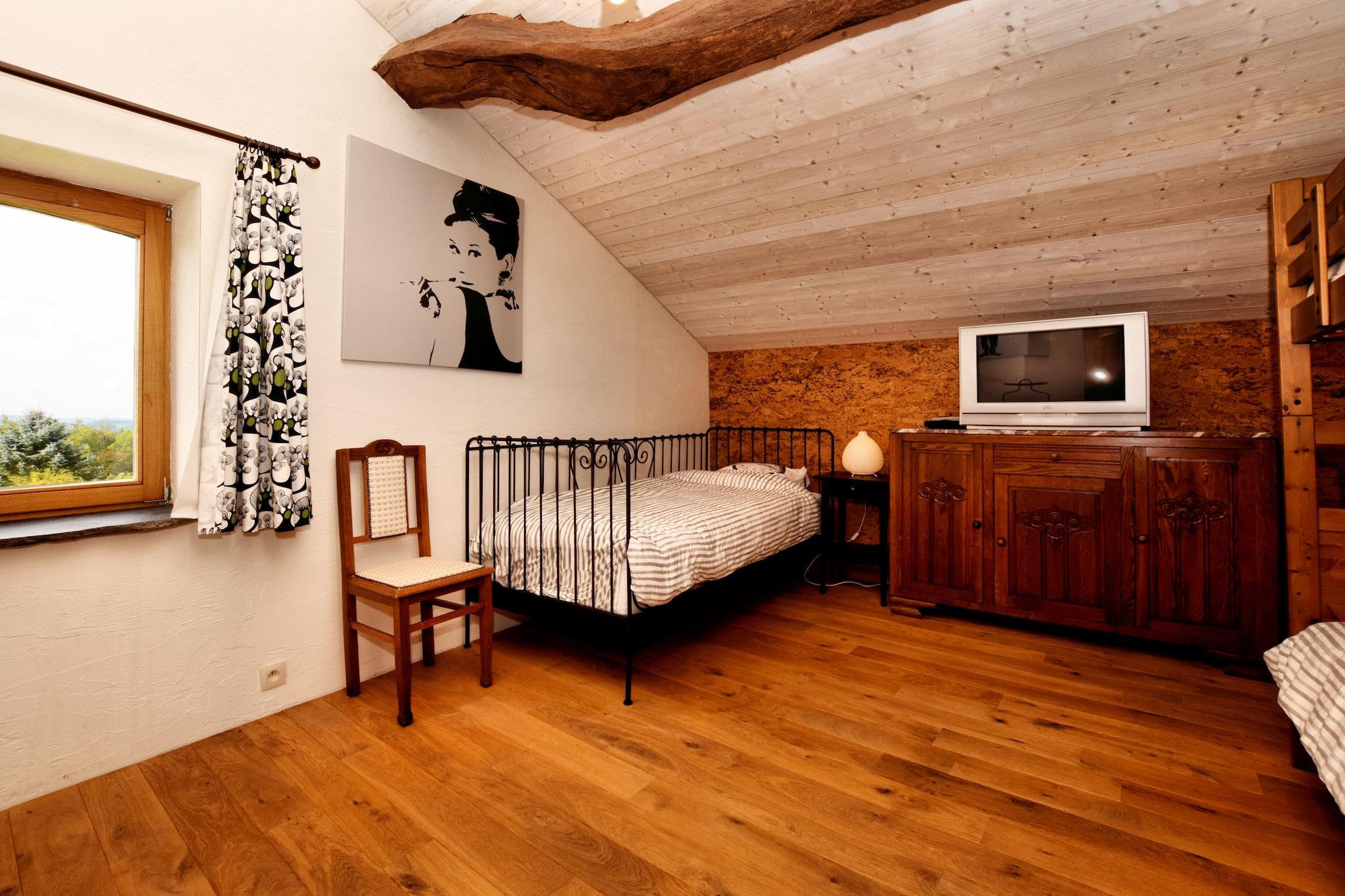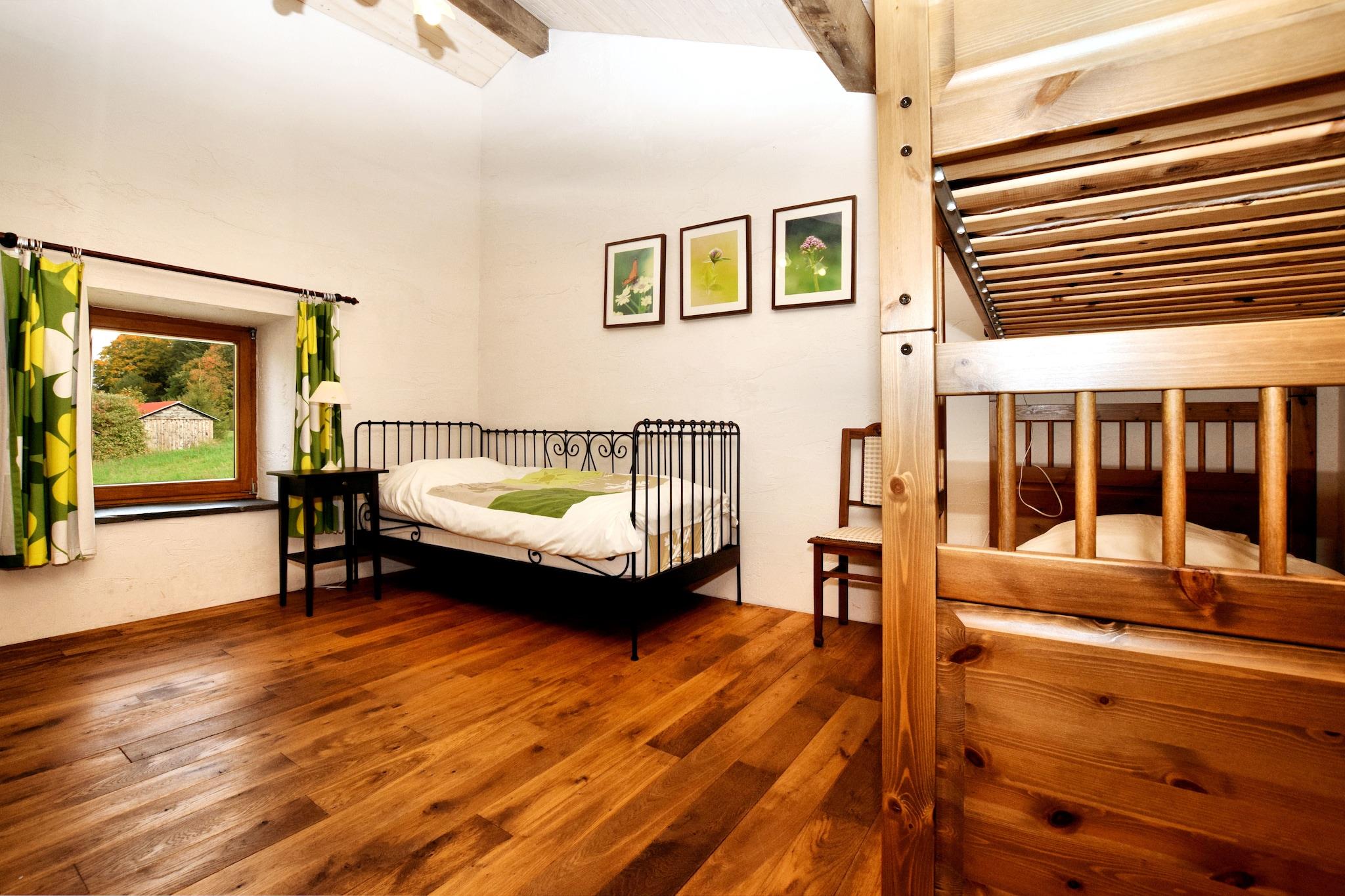 Dette charmerende feriehus med 4 soveværelser ligger i udkanten af en fredelig skov i Burtonville og tilbyder et roligt ophold for op til 9 gæster. Ideel til familier eller en gruppe venner, den har centralvarme, en solrig terrasse og en rummelig have, perfekt til at genoprette forbindelsen til naturen. Udforsk naturskønne vandre- og cykelruter, eller tag en dagstur til Spa, Coo, Plopsa-forlystelsesparken eller Battle of the Bulge-museerne i Malmédy og det nordlige Luxembourg, kun 30 minutter væk. Restauranter, supermarkeder og byens centrum er bekvemt placeret 4 km fra boligen. Dette smukt renoverede hus blander rustik charme med moderne komfort, med tykke stenvægge, træaccenter og en hyggelig brændeovn i både stue og spisestue. Soveværelserne inkluderer en blanding af enkelt-, dobbelt- og køjesenge, med en børneseng og høj stol til rådighed. Cykelskuret sikrer sikker opbevaring, og ladestationen til elbiler på stedet tilføjer bekvemmelighed. Ingen kæledyr tilladt. Depositum:, betales på stedet. Forudgående varsel og gæsteoplysninger påkrævet for gruppebookinger.