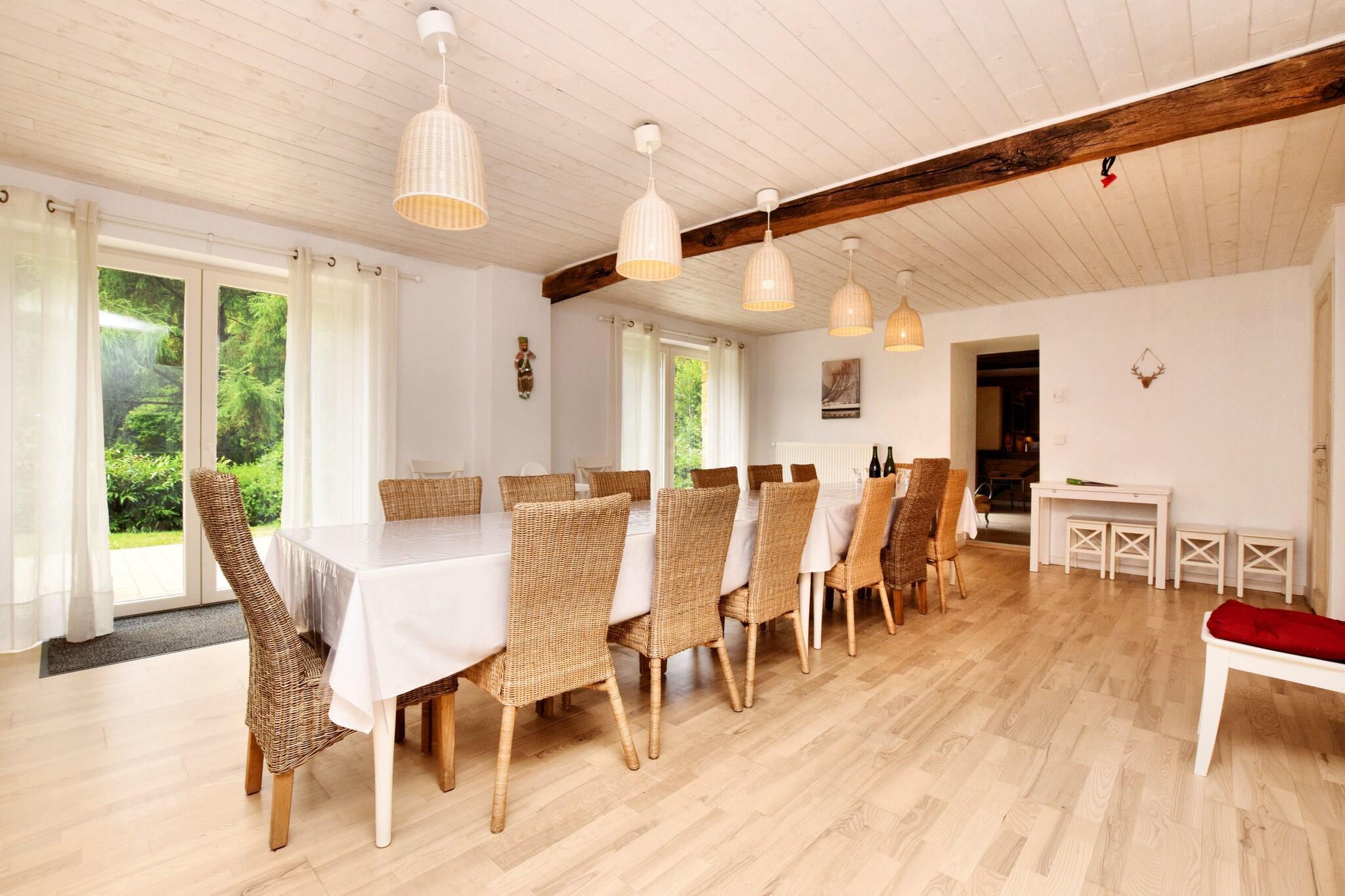 Denne kæledyrsvenlige villa i Chiny tilbyder et komfortabelt og veludstyret tilflugtssted for store familier eller grupper. Med ti soveværelser og flere opholdsområder fordelt på tre etager giver ejendommen rigelig plads til afslapning og privatliv. Beliggende kun 1 km fra byens centrum og omgivet af skov, er det ideelt for naturelskere og dem, der søger ro. Gæsterne kan nyde kajaksejlads på Semois-floden, udforske middelalderruinerne af Herbeumont Slot eller besøge den historiske Abbaye d'Orval, kendt for sin trappistøl og fredfyldte haver. Villaen har et fuldt udstyret køkken med ovn, mikroovn og opvaskemaskine, en hyggelig stue med komfur og stereoanlæg samt en spisestue med radio. Hvert soveværelse har en-suite faciliteter, og wellness-faciliteter såsom sauna og infrarød sauna tilbyder afslapning efter en dag med eventyr. Et legerum med bordfodbold og en have med dam, terrasse, grill og udendørsmøbler gør den ideel til både indendørs og udendørs nydelse. Centralvarme, en børneseng og høj stol tilføjer komforten. Nærliggende spisemuligheder omfatter Le Tandem for raffineret belgisk-fransk køkken, Foyer IX for solide lokale retter og Moulin Cambier, et rustikt sted omgivet af natur.