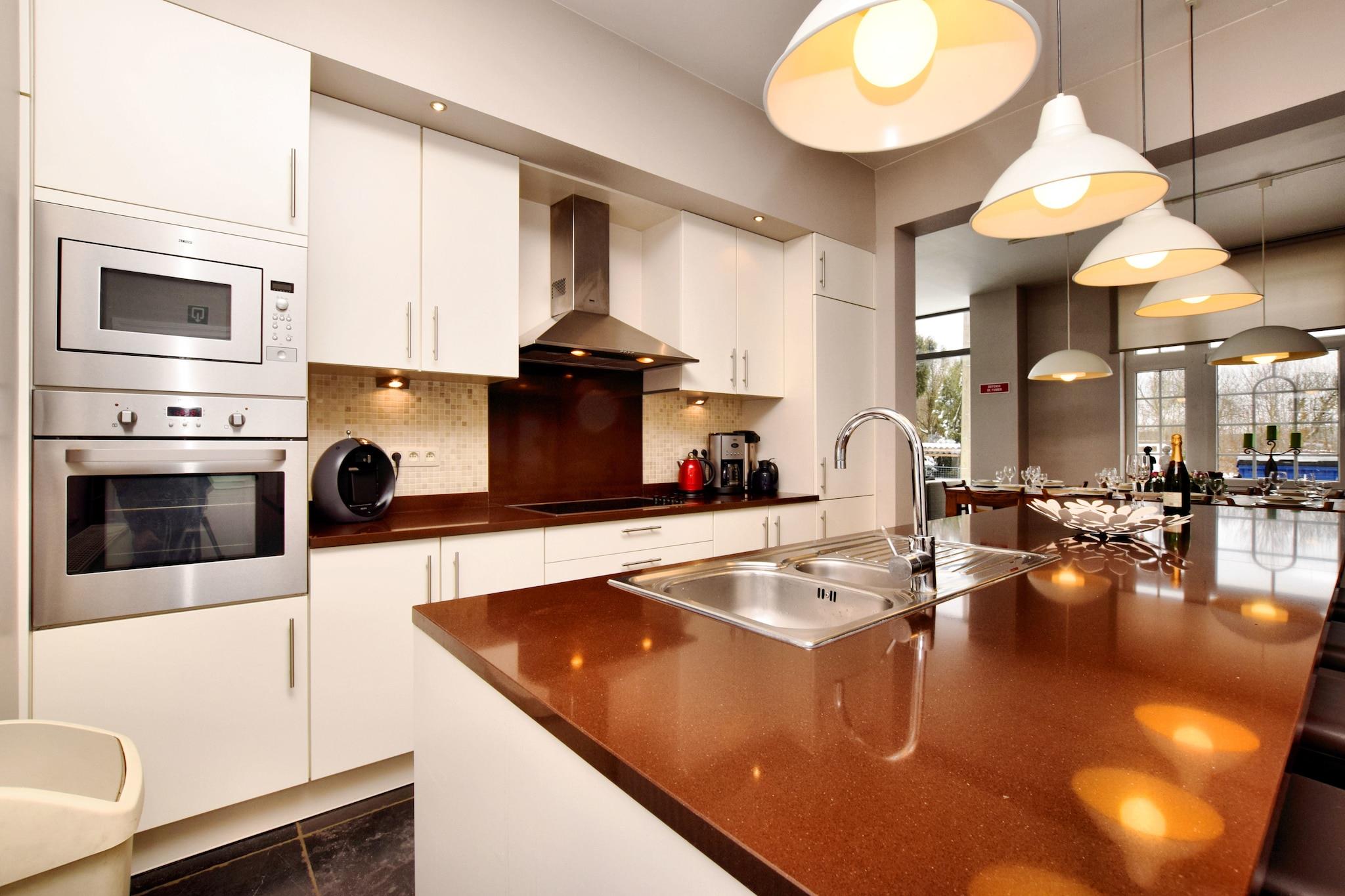 Stueetage: (Køkken(komfur(glaskeramisk), kaffemaskine, ovn, mikrobølgeovn, opvaskemaskine , køle-fryseskab), stue / spisestue(Fjernsyn(kabel), kakkelovn(træ), DVD-afspiller), Børneværelse, toilet(adgang udefra), opholdsrum(biljard), havestue/veranda) På 1. etage: (soveværelse(dobbeltseng), soveværelse(køjeseng), Soveværelse med badeværelse(dobbeltseng, badekar, håndvask), badeværelse(bruser, håndvask), toilet) På 2. etage: (soveværelse(dobbeltseng), soveværelse(2x enkeltseng, 3-etage-køjeseng), Soveværelse med badeværelse(dobbeltseng, bruser, håndvask), badeværelse(tørretumbler, bruser, håndvask, vaskemaskine), toilet) Kælderetage: (opholdsrum(Fjernsyn, DVD-afspiller, spilcomputer, airhockey)) Bubble bath, terrasse(overdækket), have, havemøbler, grill, parkering, barneseng, barnestol, barnestol