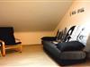 Stueetage: (entre, Køkken(kogeplade(glaskeramisk), elkedel, brødrister, kaffemaskine, ovn, mikrobølgeovn, opvaskemaskine , køleskab, køle-fryseskab, vaskemaskine), stue / spisestue(kakkelovn(træ), bordfodbold), toilet) Mellemetage: (soveværelse(enkeltseng, feltseng), Repos(dobbeltsovesofa)) På 1. etage: (soveværelse(dobbeltseng), soveværelse(dobbeltseng), badeværelse(badekar eller bruser, håndvask, toilet)) Fjernsyn, opvaskemaskine , tremmeseng, bruser, vaskemaskine, terrasse, terrasse, have, have, havemøbler, grill, parkering, Parasol, barneseng, barnestol, strygebræt