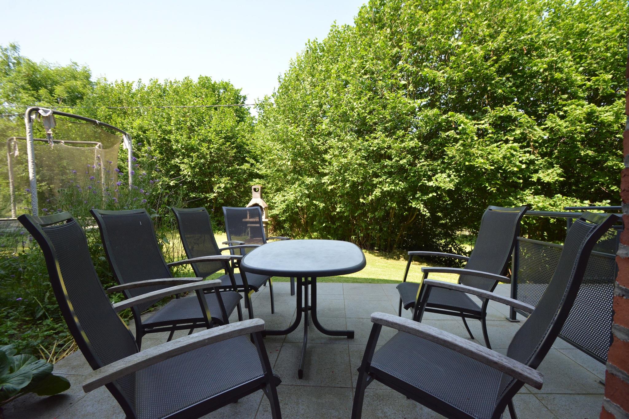 Stueetage: (entre, spisestue, åbent køkken(kogeplade, elkedel, brødrister, kaffemaskine(kaffetragt), ovn, mikrobølgeovn, opvaskemaskine , køle-fryseskab), soveværelse(enkeltseng(80 x 200 cm), enkeltseng(80 x 200 cm)), badeværelse(badekar, håndvask, toilet)) På 1. etage: (sofastue(Fjernsyn), soveværelse(enkeltseng(90 x 200 cm), dobbeltseng(140 x 200 cm))) tremmeseng, terrasse, have, havemøbler, grill, parkering, trampolin