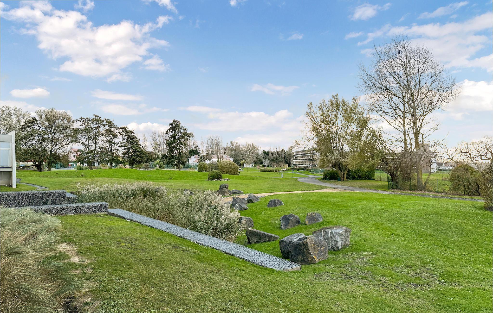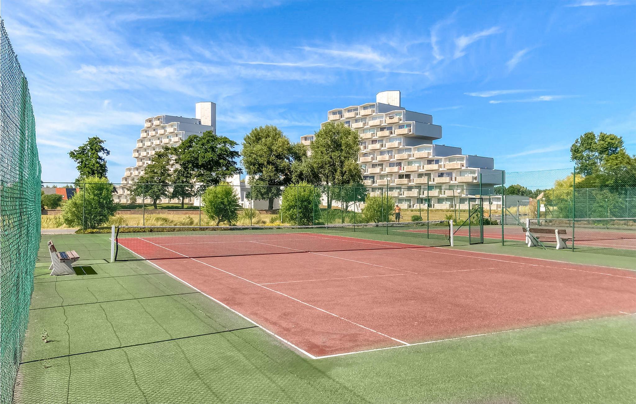 Velkommen til denne lejlighed, der vil vække stor glæde for jeres lille familie. Boligen udmærker sig med sin moderne indretning og behagelige farver, og I vil især blive betaget af panoramavinduerne, der næsten går fra gulv til loft. I kan lave en lækker morgenmad sammen, som I kan nyde med udsigt til den grønne park. De varme sommeraftener bør opleves på altanen. Boligkomplekset har mange gratis faciliteter, herunder tennisbaner, boulebaner, bordtennis og en legeplads.