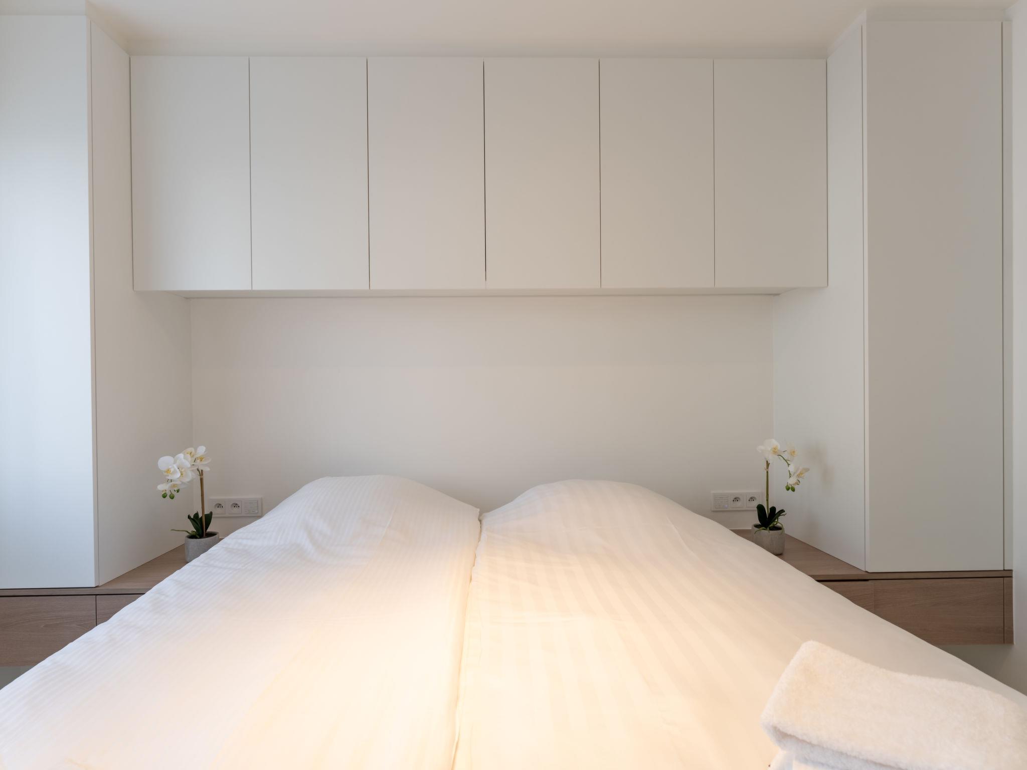 "Marie Antoinette close by the sea", 3-room apartment. Object suitable for 4 adults + 2 children. Fully renovated in 2025: entrance hall with separate WC. Open living/dining room with dining table, TV and international TV channels (flat screen). 1 children's room with 2 beds (90 cm, length 200 cm). 1 double bedroom with 1 bed (160 cm, length 200 cm). 1 double bedroom with 1 bed (160 cm, length 200 cm), separate WC and shower. Open kitchen (oven, dishwasher, 4 induction hot plates, toaster, kettle, electric coffee machine). Shower, double hand-basin. Panoramic view of the resort. Facilities: hair dryer. Internet (WiFi, free). Please note: suitable for families. Non-smoking house. Smoke alarm, fire extinguisher.