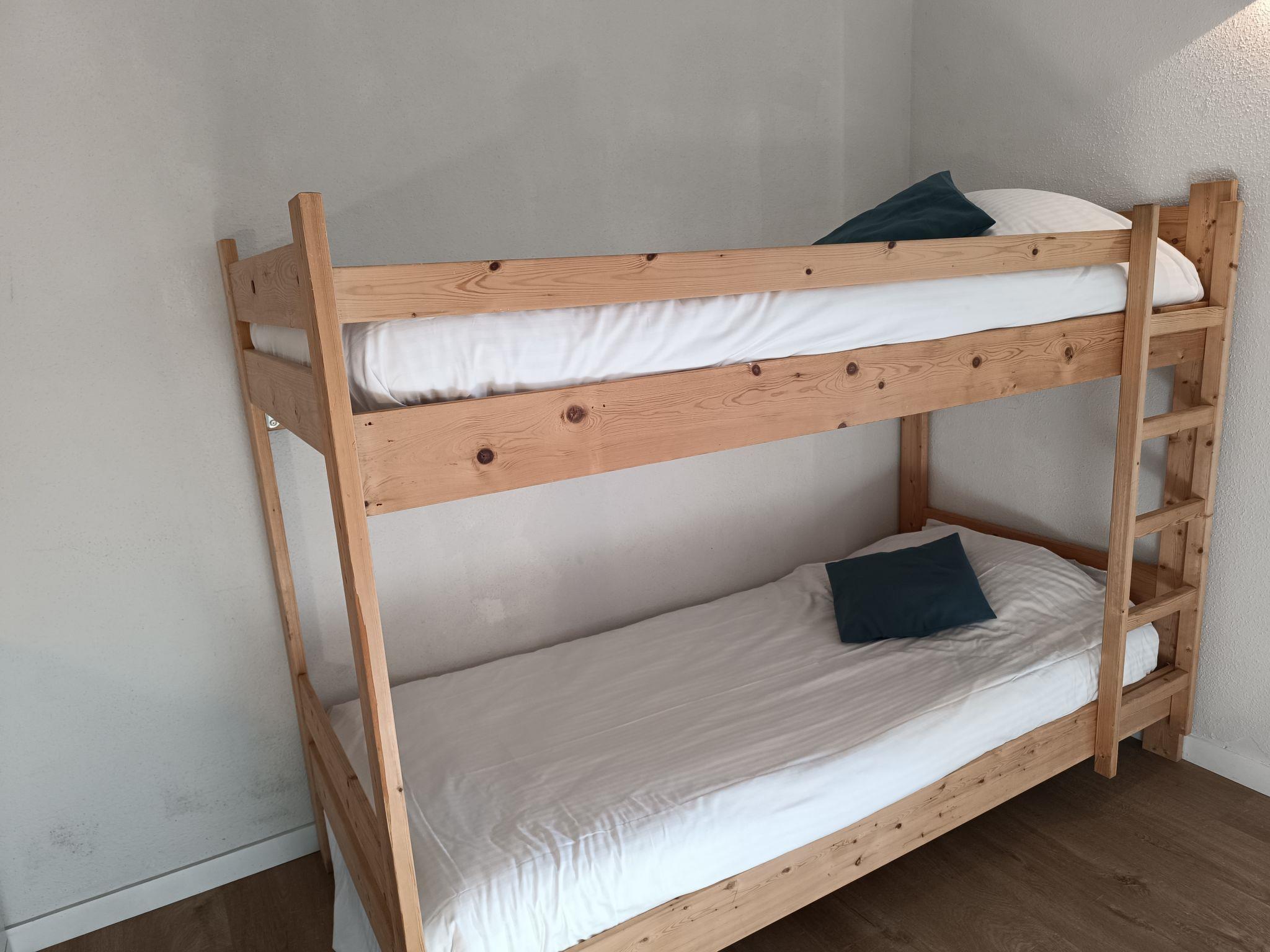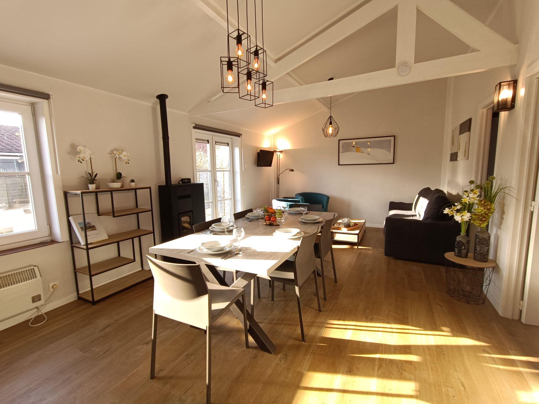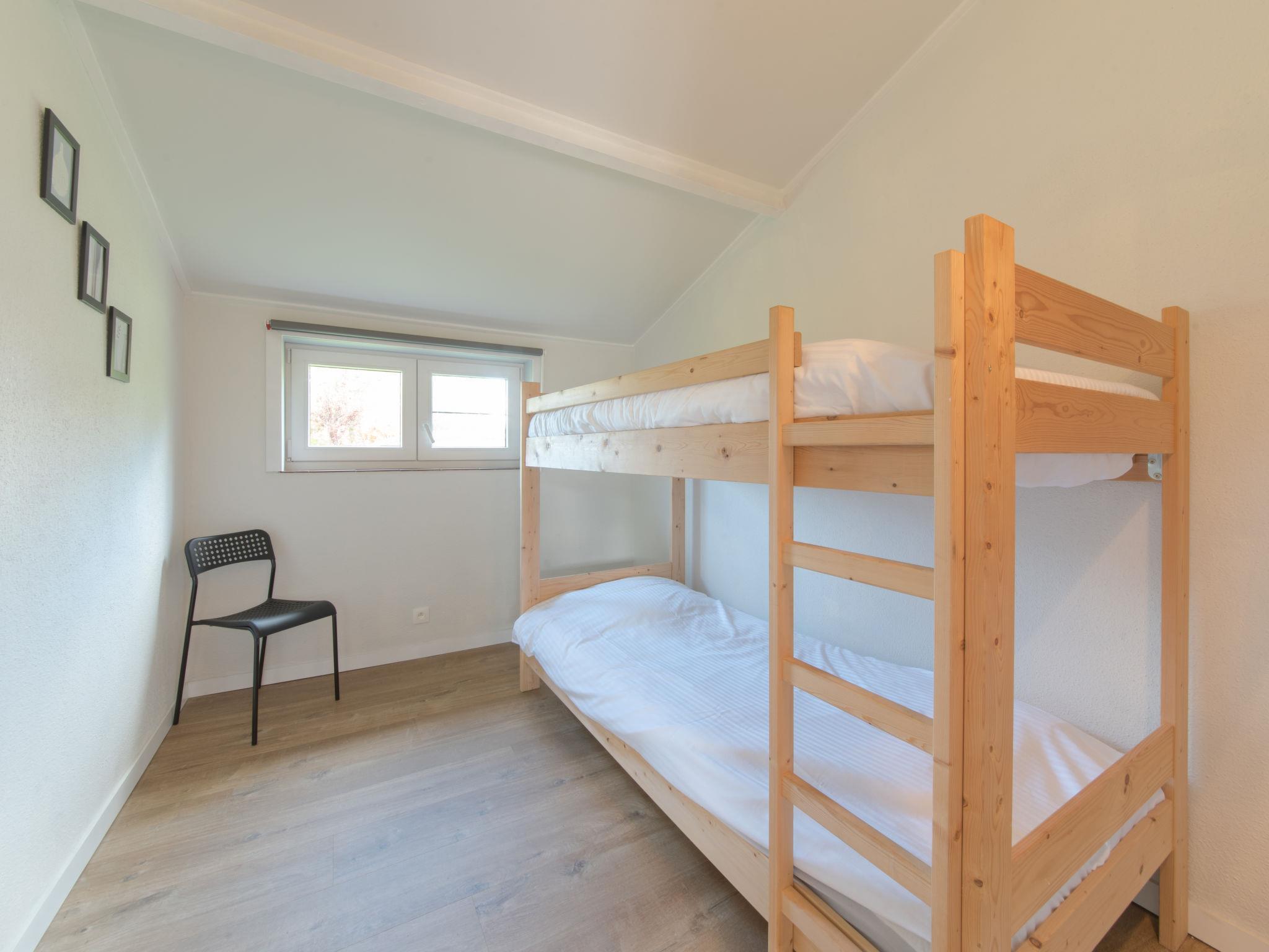 "Duinenhuisje 25 parking and shared pool", 3-room bungalow 60 m2, on the ground floor. Fully renovated in 2021, rustic and cosy furnishings: living/dining room with 1 sofabed (160 cm, length 190 cm), digital TV, flat screen and wood-burning stove. Exit to the garden. 1 double bedroom with 1 double bed (1 x 160 cm, length 200 cm). 1 room with 1 x 2 bunk beds (90 cm, length 200 cm), electric heating. Open kitchen (dishwasher, 4 induction hot plates, toaster, kettle, freezer, electric coffee machine, combination microwave). Shower, sep. WC. Electric heating. Garden, lawn. Terrace furniture, barbecue (portable). Facilities: children's high chair, baby cot, hair dryer. Internet (WiFi, free). Parking space n 25. Please note: suitable for families. Non-smoking house. Smoke alarm, fire extinguisher.