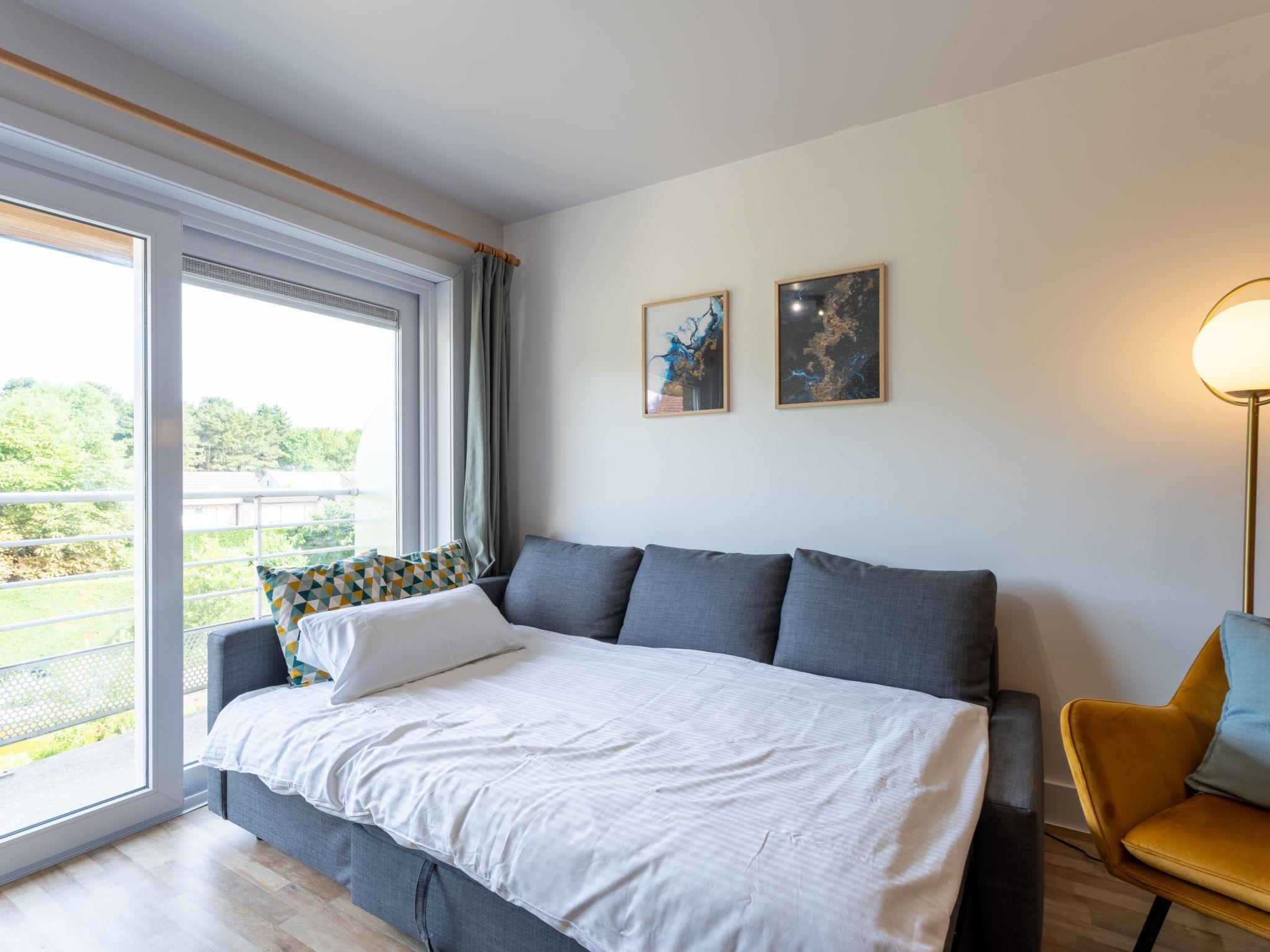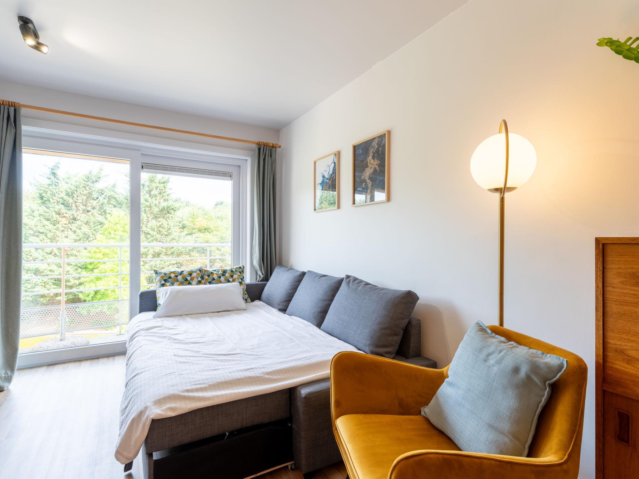 De Haan: Child friendly, modern holiday development "Green Garden", 2 storeys. 750 m from the centre of De Haan, 1.3 km from the sea, 1.3 km from the beach. For shared use: beautiful garden to relax, pond, swimming pool (20 x 10 m, seasonal availability: 16.Jun. - 15.Sep. pool opening hours: 09:00-22:00). Boccia. In the house: lift. Linen change (suppl. charge extra). Towel change (suppl. charge extra). Public parking on the road. Supermarket 700 m, restaurant 500 m, bakery 700 m, bicycle rental 1.5 km, tram "De Haan aan Zee" 700 m, bus stop "De Haan aan Zee" 700 m, railway station "Oostende" 12 km, sandy beach "De Haan" 1 km, park "La Potinière" 1 km. Golf course (18 hole) 1.4 km, surf school 2 km, sailing school 2 km, tennis 1 km, indoor tennis centre 2 km, minigolf 1 km, riding stable 3 km, sports centre 2 km. Nearby attractions: Oostende 10 km, Sea Life 12 km, Brugge 20 km, Plopsaland De Panne 52 km. Please note: suitable for families. The owner does not accept any youth groups. Loading and unloading of baggage is possible at the holiday house. The apartment is located in a zone with limited traffic. Neighbourhood highly sensitive to noise. Quietness and good behaviour expected.