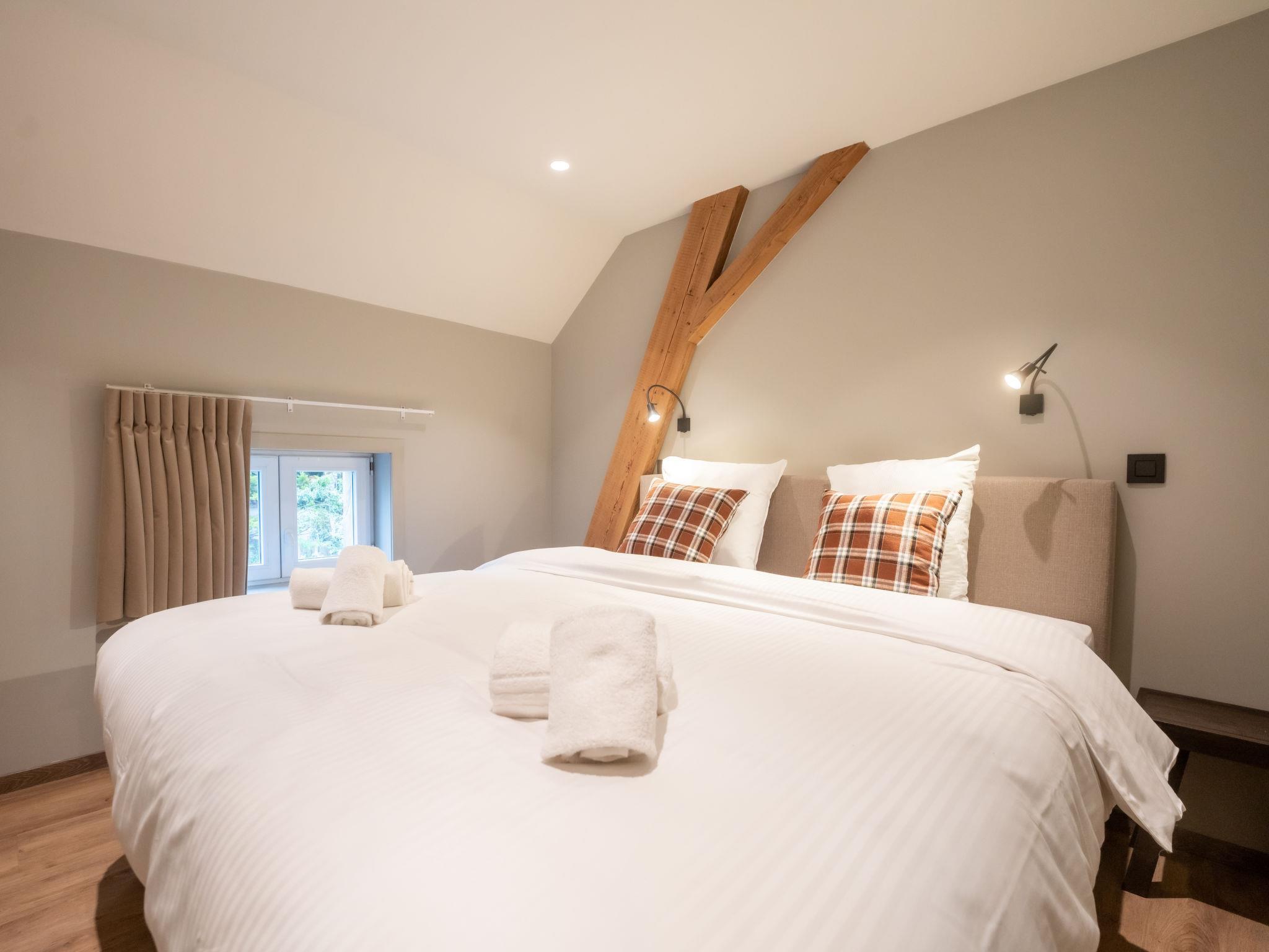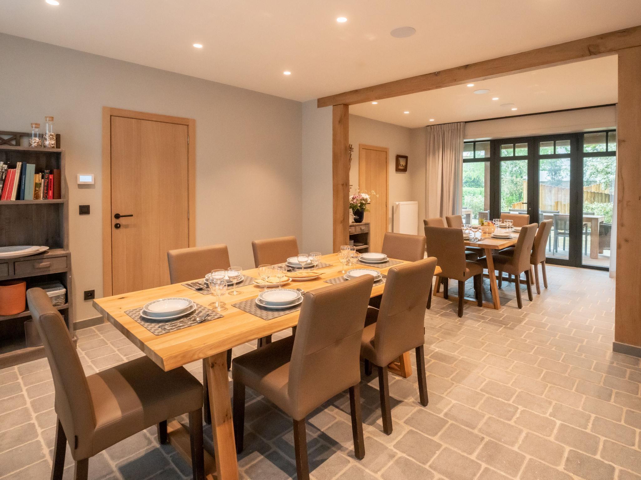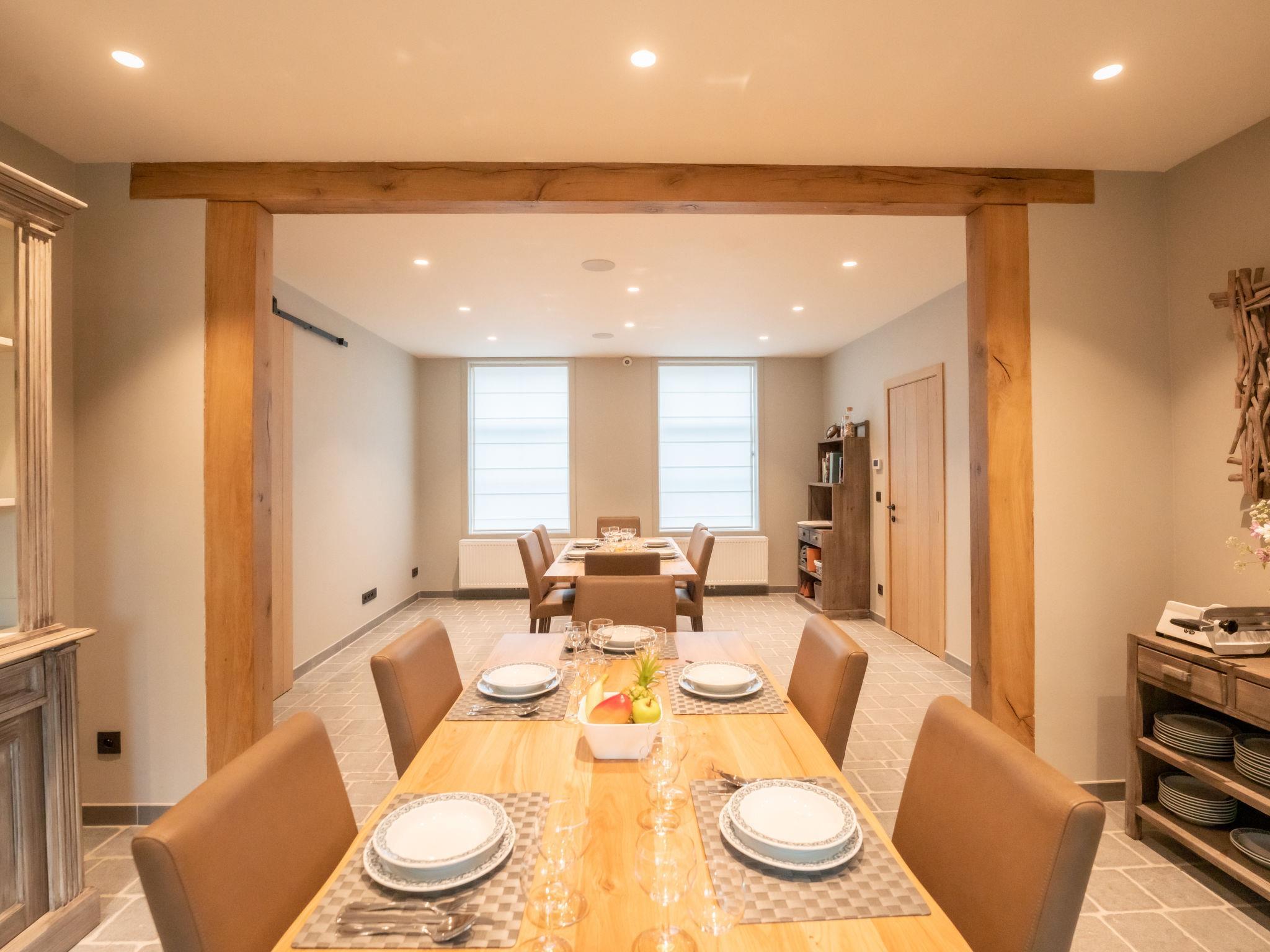 "Huyze Ter Bercken with swimming pond", 9-room house on 3 levels. Object suitable for 12 adults. Spacious, fully renovated in 2023, luxurious and tasteful furnishings: entrance hall. Living room with digital TV, international TV channels, flat screen and gas heater. Dining room with dining table. Lounge with bar and gas heater. Large kitchen (oven, dishwasher, 6 gas rings, toaster, kettle, microwave, freezer, electric coffee machine). Sep. WC. Heating. Upper floor: (steep stair), 2 double bedrooms, each room with 1 double bed (1 x 180 cm, length 200 cm), digital TV and flat screen. 1 room with 2 beds (90 cm, length 200 cm), digital TV and flat screen. 2nd upper floor: 3 double bedrooms, each room with 1 double bed (1 x 180 cm, length 200 cm), digital TV and flat screen. 3 showers/WC. Heating. Large terrace. Terrace furniture, barbecue, deck chairs, sitting area. Facilities: hair dryer. Internet (WiFi, free). Garage (1 car). Please note: non-smoking house. Smoke alarm, fire extinguisher, no lift. The kitchen has a spacious refrigerator. Burglar alarm with cameras is always switched off during stays.