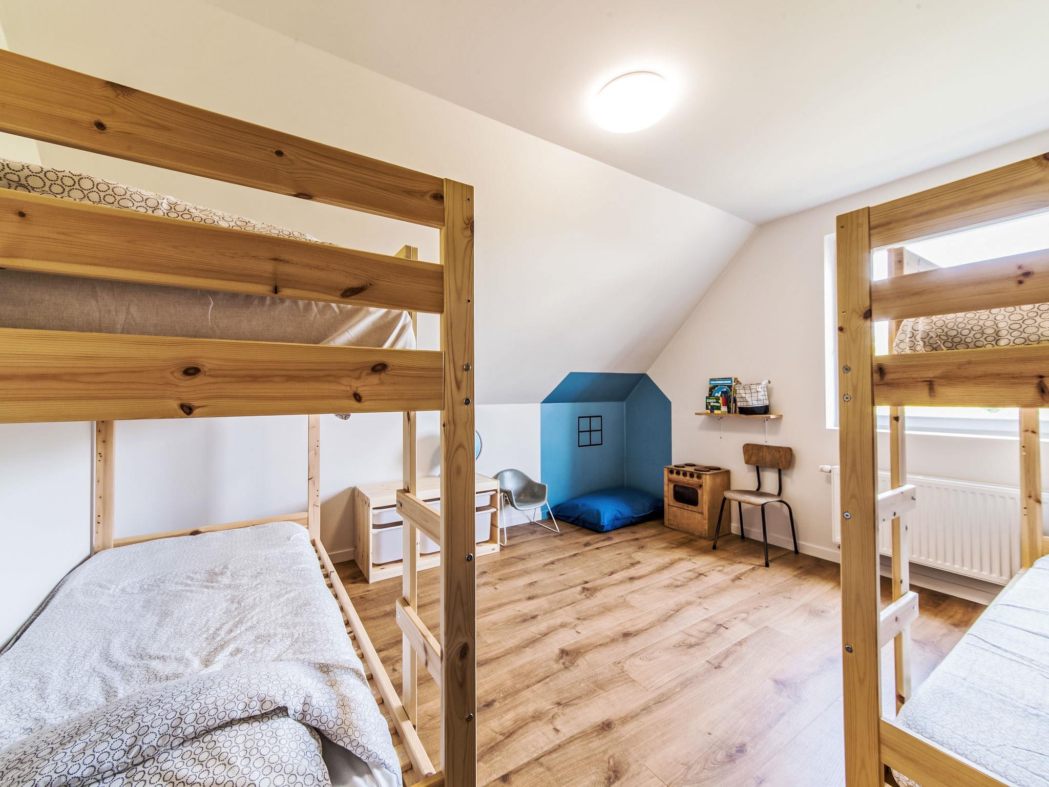 "Villa Vosseslag - garage and big garden", 4-room villa south facing position. Object suitable for 4 adults + 4 children. Comfortable and modern furnishings: entrance hall with separate WC and shower. Open living/dining room with sliding door, panoramic window with TV and international TV channels (flat screen), air conditioning. Exit to the terrace, south facing position. Interconnecting room with shower. Exit to the terrace. Open kitchen (oven, dishwasher, 4 induction hot plates, toaster, kettle, microwave, freezer, electric coffee machine, cooking island) with dining table. Upper floor: 1 double bedroom with 1 double bed (180 cm, length 220 cm), separate WC. 1 double bedroom with 1 double bed (180 cm, length 200 cm). 1 children's room with 2 x 2 bunk beds (90 cm, length 200 cm). Bath/shower, double hand-basin. Air-conditioning, floor heating. Facilities: hair dryer. Internet (WiFi, free). Parking at the house. Please note: non-smoking house. Smoke alarm, fire extinguisher.