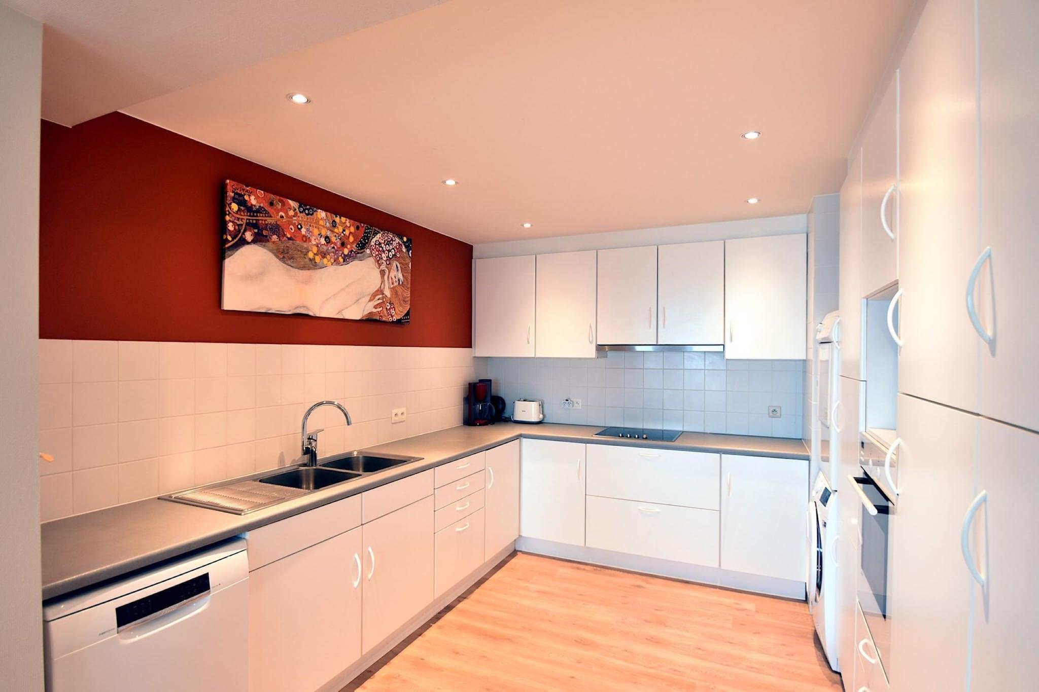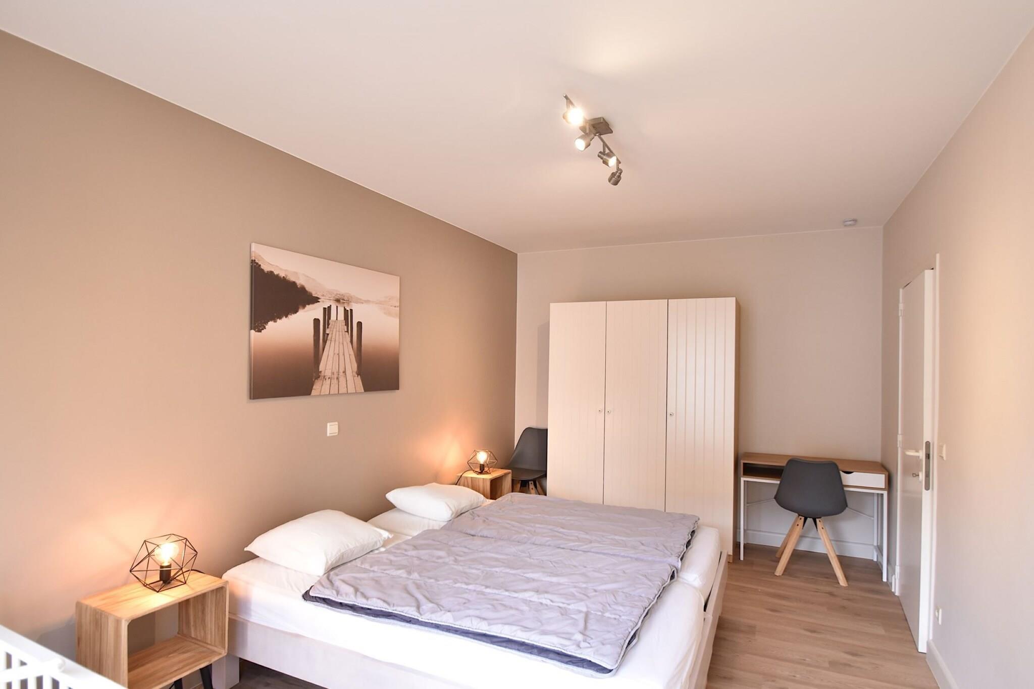 Komfort ved havet med udsigt Velkommen til din perfekte ferie ved kysten - denne stilfulde lejlighed i stueetagen tilbyder det bedste fra begge verdener: panoramaudsigt over havet og ultimativ privatliv. Med sin rummelige indretning og elegante indretning kan den komfortabelt rumme op til 8 gæster. Uanset om du planlægger en familieferie eller en ferie med venner, vil du elske den åbne stue og spisestue, hvor alle kan samles, dele måltider og slappe af, mens du ser på bølgerne. Tonede ruder foran sikrer fuldstændig diskretion uden at gå på kompromis med havudsigten. Kystliv i hjertet af De Haan Beliggende direkte på Zeedijk, er du kun få skridt fra stranden og tæt på alt, hvad De Haan har at tilbyde. Lejligheden har tre hyggelige soveværelser - to med køjesenge perfekt til børn, og to alsidige værelser, der konverteres fra dobbeltseng til to enkeltsenge. Et moderne, fuldt udstyret køkken inviterer dig til at lave mad med lethed, og et veldesignet badeværelse med dobbelt håndvask bidrager til bekvemmeligheden. Strandpromenaden er perfekt til morgengåture eller cykling langs kysten. Spisning og lækkerier i nærheden Træd ud og opdag De Haans charmerende spisesteder, alle inden for en kort gåtur. Nyd belgiske vafler, friskfanget fisk og skaldyr og drinks ved stranden på lokale caféer. Efter middagen kan du vende tilbage til dit fredfyldte tilflugtssted, slappe af med et glas vin og lade lyden af havet falde dig i søvn.