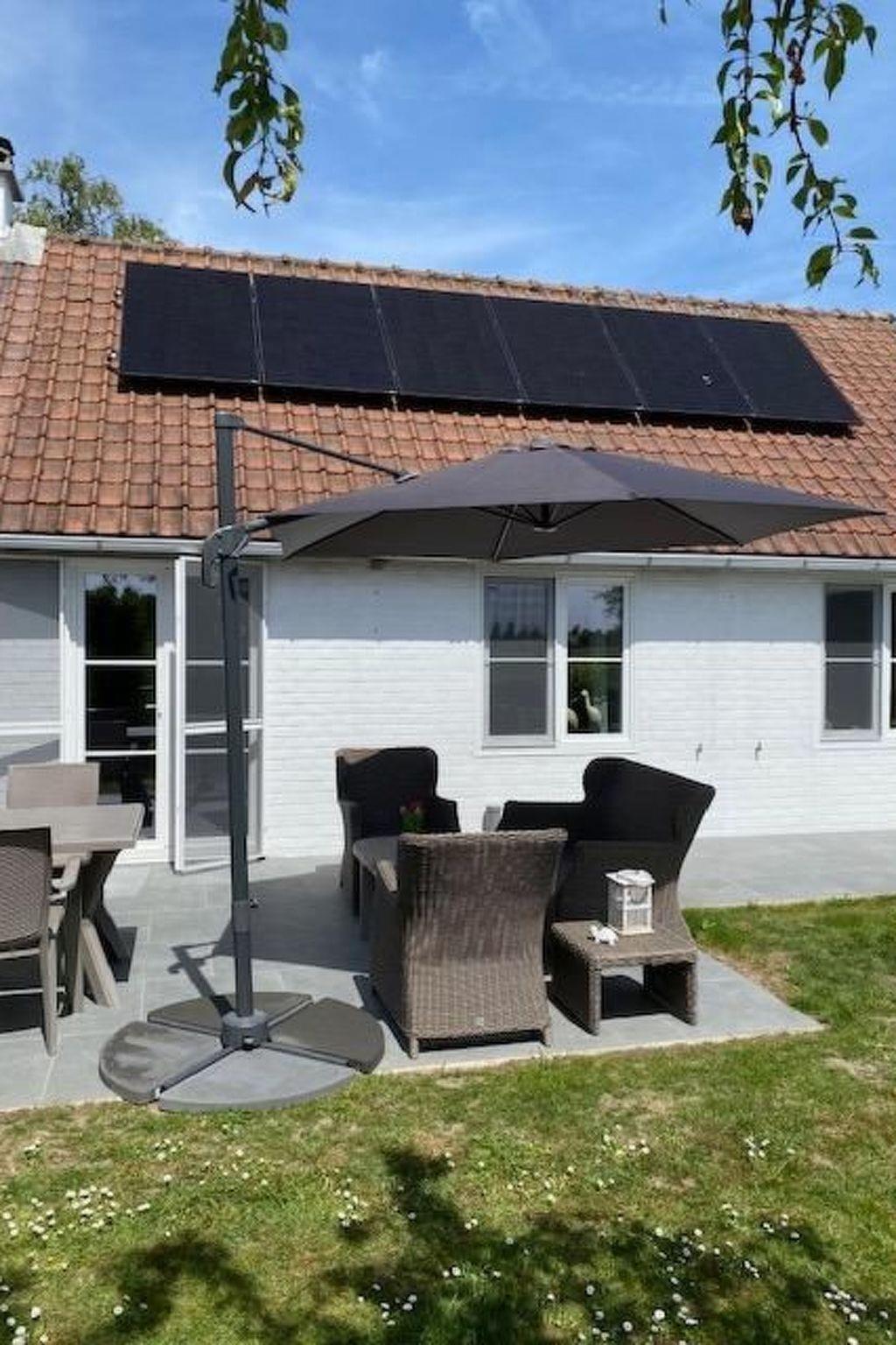 There is a fully enclosed garden (fence to the stream with a hedge and gate) with a south-facing terrace, equipped with a table, 6 chairs and 2 sun loungers. In the storage room there is a BBQ, hoover and other cleaning equipment.