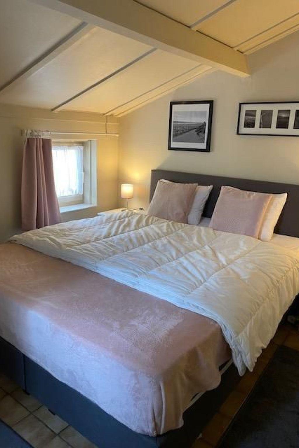 The house comprises a spacious living area with open-plan kitchen. A cosy sitting area with wood-burning stove, TV, mini stereo, books and CDs, followed by the dining area with round table. The kitchen is fully equipped with oven, microwave, induction hob, large fridge with separate freezer compartment and dishwasher, coffee machine, Senseo coffee machine, water and egg boiler, toaster, mixer and toast maker. Furthermore, everything from pots, pans, crockery, cutlery, glasses, bowls and dishes. The downstairs bedroom has a double box spring (160x200) and a wardrobe. The bathroom is equipped with a bathtub/shower, washbasin with hairdryer and toilet. Upstairs you have a room with a box spring for 2 persons (160x200) and wardrobe. For the little ones, a cot and high chair are available. All beds are equipped with pillows and duvets. It is also possible to order beds made and a set of towels.