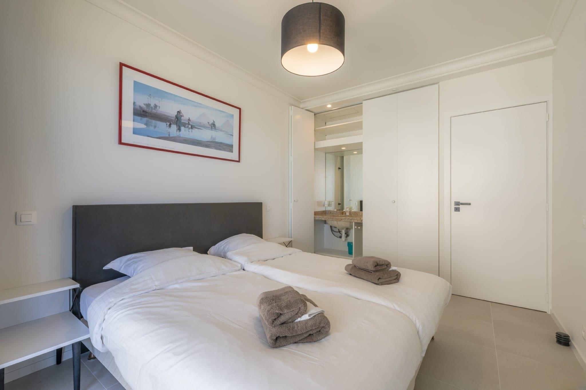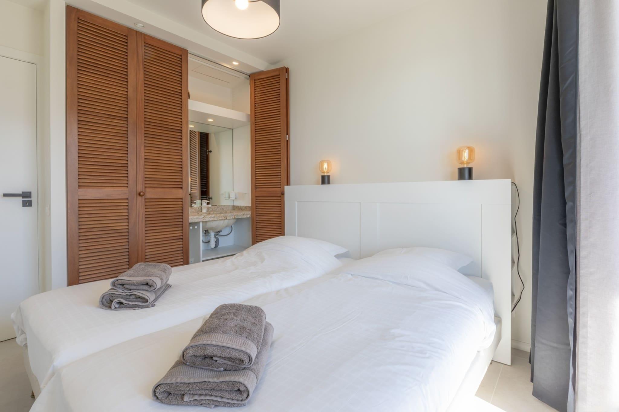 Denne rummelige lejlighed tilbyder et dejligt tilflugtssted i De Panne med adgang til en sauna. Denne ejendom ved stranden tilbyder både WiFi og gratis privat parkering for din bekvemmelighed. Nyd den betagende havudsigt fra terrassen, perfekt til afslapning eller til at nyde måltider udendørs. Opholdsstuen er lys og luftig og har et fladskærms-tv til underholdning. Det fuldt udstyrede køkken har køleskab og opvaskemaskine, hvilket gør det nemt og bekvemt at tilberede måltider. Med tre moderne badeværelser med brusere kan denne indkvartering komfortabelt imødekomme større grupper. Håndklæder og sengelinned er inkluderet. Nærliggende attraktioner inkluderer Baldus Strand, kun 2,2 km væk, og Perroquet Strand, der ligger 2,8 km fra ejendommen. For dem, der rejser med fly, ligger Ostend-Bruges Internationale Lufthavn kun 35 km væk. Oplev en mindeværdig ferie ved havet i denne komfortable og veludstyrede lejlighed! Forbruget af elektricitet, varme, varmt vand (for huse: koldt vand) er ikke inkluderet og vil blive fratrukket det depositum, du har betalt. Bemærk venligst, at forbruget er højere i vintermånederne. (De maksimale takster, der kan opkræves for vand-, el- og gasforbrug, er: 7,25 EURO/m³ vand – 0,64 EURO/kWh el (dag) – 0,44 EURO/kWh el (nat) – 1,46 EURO/m³ gas)
