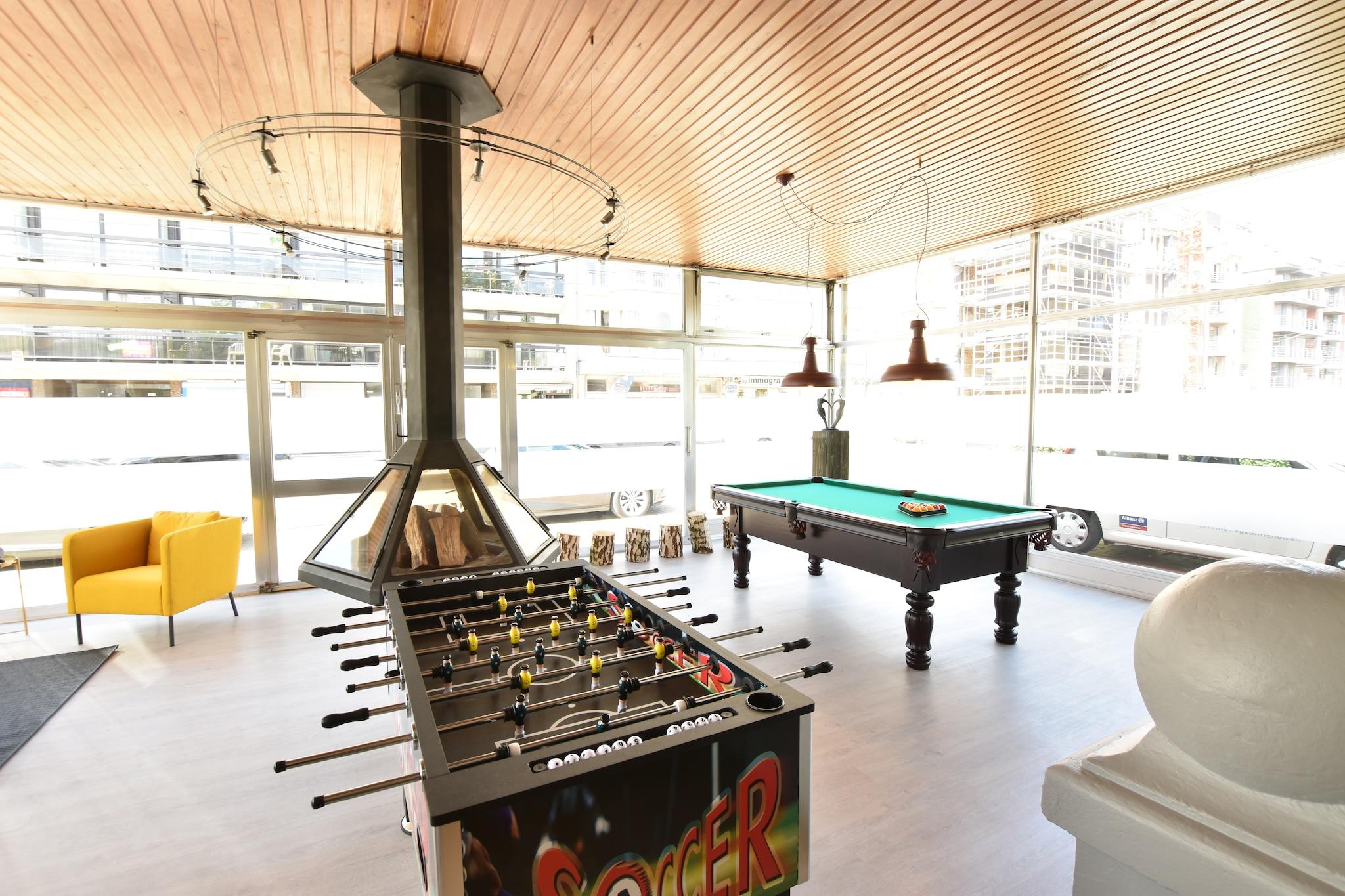 Rummeligt Coastal Retreat Dette feriehus med 6 soveværelser kan rumme op til 12 gæster og byder på rigelig plads til familie- eller gruppeophold. Med et fuldt udstyret køkken, hyggelige opholds- og spiseområder og underholdningsmuligheder, herunder bordfodbold og billard, sikrer det komfort og sjov indendørs. Træd udenfor til terrassen, der er møbleret med havesæder og liggestole til afslappende eftermiddage eller aftensammenkomster. Centralvarme holder hjemmet indbydende året rundt, mens flere badeværelser og gennemtænkte soveværelser garanterer bekvemmelighed for alle gæster. Udforsk De Panne og omgivelser Beliggende kun en kort gåtur fra stranden og byens centrum, kan gæsterne nyde solbeskinnede dage langs de sandede kyster. Familier vil glæde sig over det nærliggende Plopsaland, en forlystelsespark fuld af eventyr for børn. Naturentusiaster kan vove 10 km over den franske grænse til Naturelle Marchand-reservatet, perfekt til vandreture og naturskøn udforskning. Uden kæledyr tilladt, kan besøgende fokusere på strandvandringer, cykling og kulturelle sightseeing i hele De Panne og det omkringliggende Vestflandern. Spisning og lokale bekvemmeligheder Restauranter, caféer og butikker ligger inden for 500 m, og byder på lokale smagsoplevelser og fornødenheder, når det passer dig. Tilbered måltider i det fuldt udstyrede køkken eller spis ude på bistroer ved havet. Oostende-Brugge Internationale Lufthavn ligger 40 km derfra, hvilket gør det nemt at rejse. Efter en dag med aktiviteter kan du vende tilbage for at slappe af på terrassen og nyde den kystnære brise og afslappende atmosfære.
