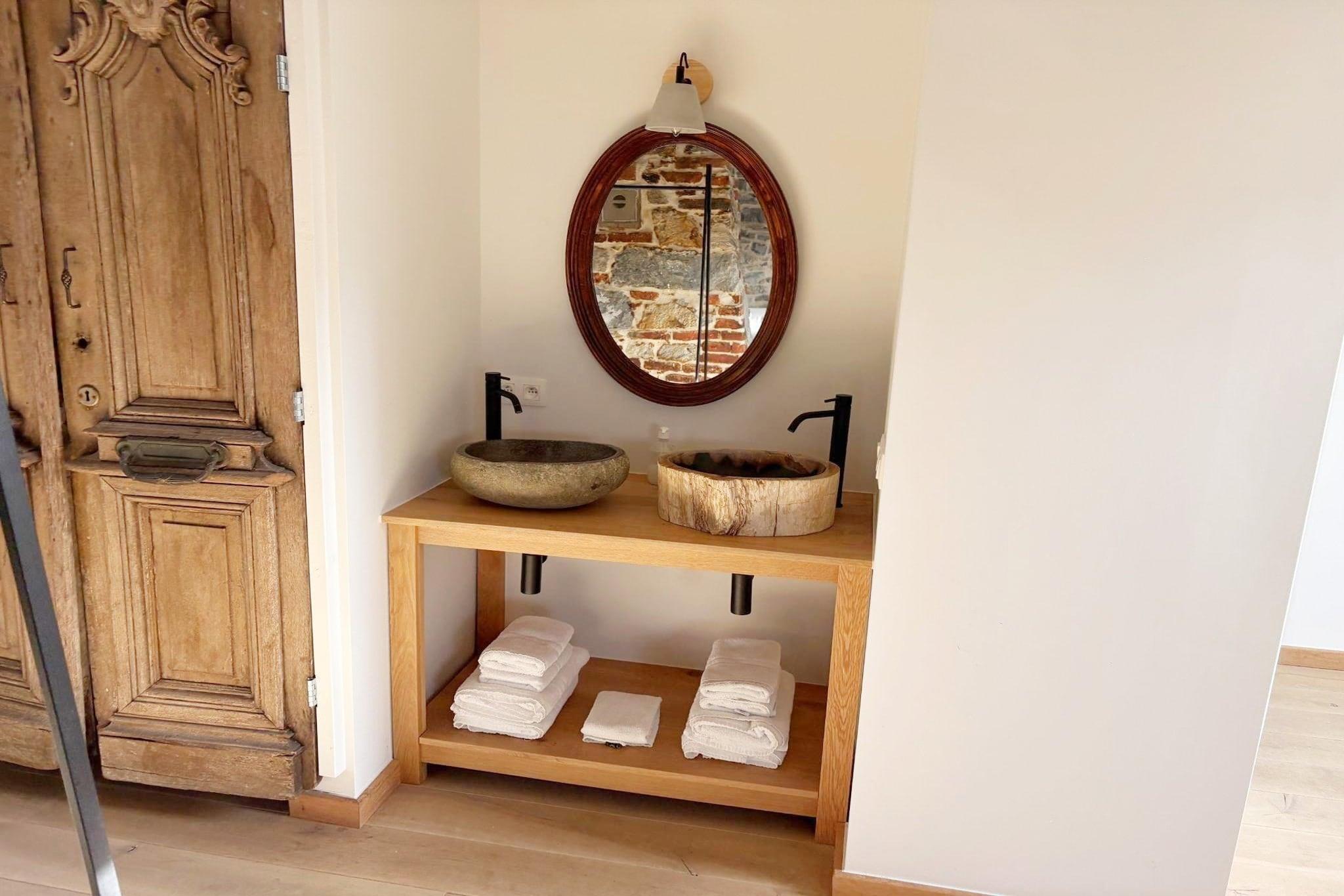 Velkommen til dette smukke feriehus i hjertet af Dinant, et perfekt tilflugtssted for familier eller vennegrupper, der søger komfort, plads og et strejf af Ardenner-charme. Huset er designet til op til 8 gæster og tilbyder en varm og indbydende atmosfære fra det øjeblik, du træder ind. I stueetagen inviterer den hyggelige stue jer til at samles omkring brændeovnen til afslappede aftener med tv og komfortable siddepladser til alle. Spisestuen har et stort bord, der er ideelt til fælles måltider, mens det fuldt udstyrede køkken med komfur, ovn, mikrobølgeovn, kaffemaskine, brødrister, opvaskemaskine og køleskab med fryser har alt, hvad I behøver for at lave mad sammen. Et gæstetoilet giver ekstra bekvemmelighed. På første sal er der to elegante soveværelser, hver med en dobbeltseng og eget badeværelse med bruser, håndvask og toilet, hvilket tilbyder både komfort og privatliv. På anden sal venter et rummeligt soveværelse i familiestil med en dobbeltseng og to enkeltsenge samt eget badeværelse. Det er perfekt til søskende, fætre og kusiner eller venner, der rejser sammen. En dejlig terrasse fuldender boligen og tilbyder et fredeligt sted at nyde din morgenkaffe eller slappe af efter en dag med udforskning. Dinant og omegn byder på et væld af attraktioner. Besøg den ikoniske Dinant-citadell, udforsk den snoede Meuse-flod med båd, eller oplev den magiske underjordiske verden i Grotte La Merveilleuse. Byen er oversået med charmerende caféer, restauranter ved floden og lokale butikker. Friluftsentusiaster kan nyde vandreture, kajaksejlads, cykling og naturskønne udsigter i hele Vallée de la Meuse og Ardennerne.