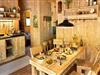 Stueetage: (tekøkken(kakkelovn(pille), elkedel, komfur(elektrisk), kaffemaskine, mikrobølgeovn, køle-fryseskab, ), stue / spisestue(spisebord, sofahjørne), soveværelse(dobbeltseng(dobbelt dynebetræk)), soveværelse(dobbeltseng(dobbelt dynebetræk)), soveværelse(enkeltseng, køjeseng(dynebetræk)), badeværelse(badekar, bruser, håndvask, toilet), Internetadgang) køle-fryseskab, patio, havemøbler, parkering, Parasol, loungemøbler