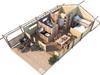 Stueetage: (tekøkken(komfur(elektrisk), kaffemaskine, mikrobølgeovn, køleskab, ), stue / spisestue(spisebord, sofahjørne), soveværelse(dobbeltseng(dobbelt dynebetræk)), soveværelse(dobbeltseng(dobbelt dynebetræk), køjeseng(dynebetræk)), badeværelse(bruser, håndvask, toilet), Internetadgang) Internetadgang, varme, parkering, Parasol, loungemøbler
