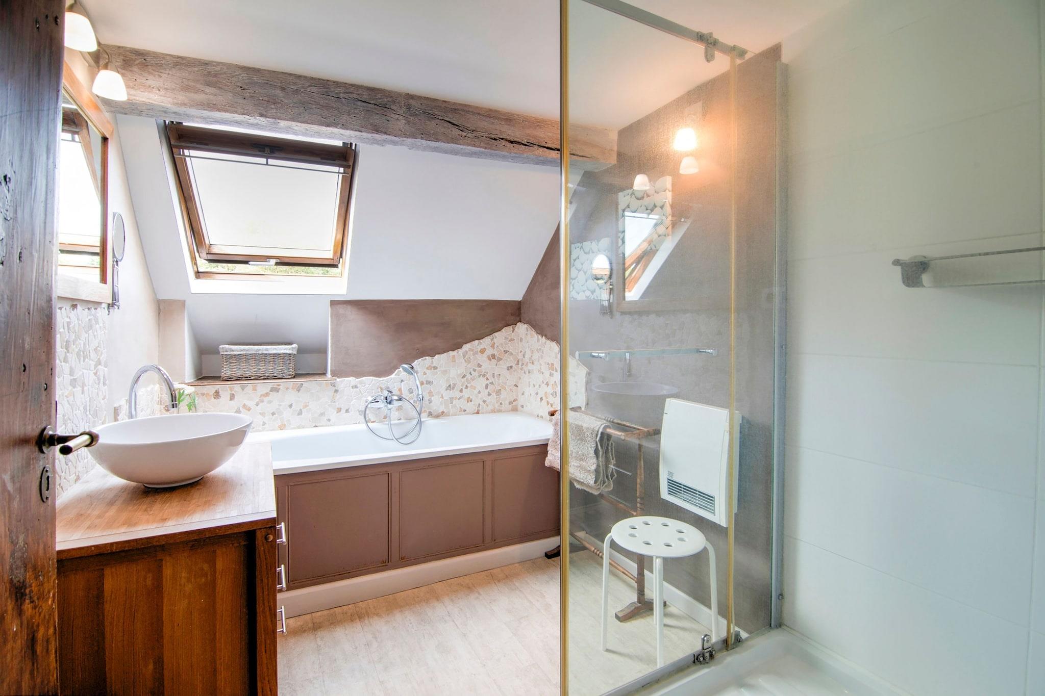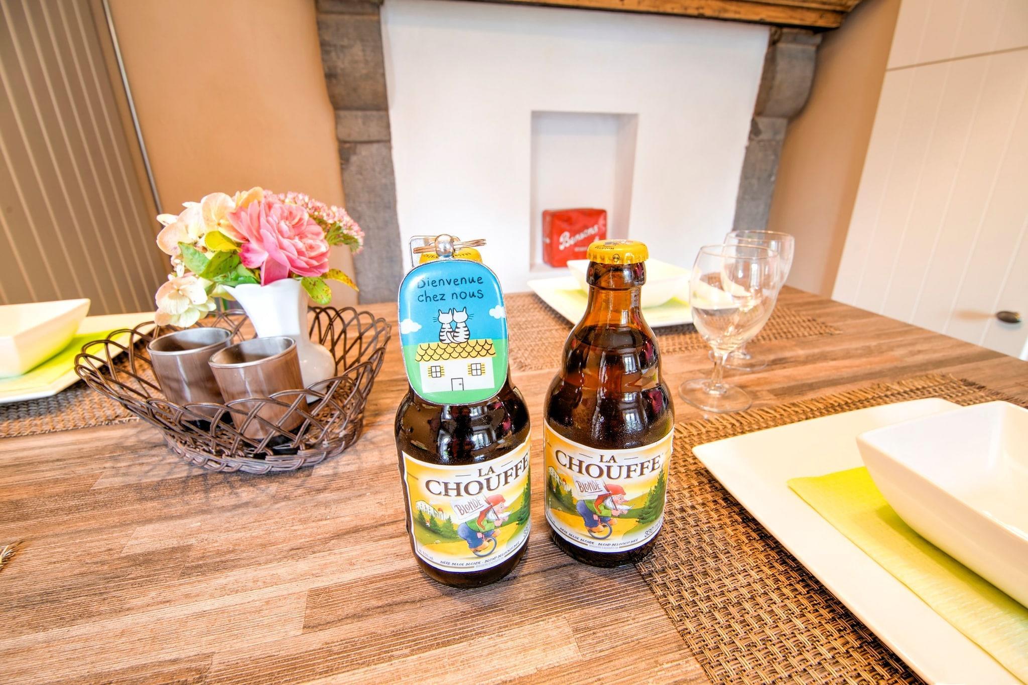 Beliggende i udkanten af skoven i Durbuy-Bende tilbyder denne kæledyrsvenlige hytte en fredelig flugt kun 5 km fra Durbuys historiske centrum. Hjemmet er ideelt for familier eller par, omgivet af natur og tæt på topattraktioner som Topiary Park, Adventure Valley Durbuy og det fortryllende Château de Petite Somme. Den nærliggende labyrint Barvaux-sur-Ourthe og Wéris Megaliths tilføjer et strejf af mystik og historie til dit ophold. Hytten har en hyggelig stue med kabel-tv, dvd-afspiller og en enkelt sovesofa. Køkkenet er udstyret med keramisk madlavning, kombineret mikroovn, opvaskemaskine og køleskab med fryser, plus en høj stol til de mindste. Ovenpå deler to soveværelser, et med dobbeltseng og et med to enkeltsenge, et badeværelse med både badekar og bruser. En børneseng og trappelåge gør den familievenlig. Udenfor kan du nyde en privat indhegnet have, terrasse, grill og parkering. Spisemuligheder er kun 1 km væk. Nyd det belgiske køkken på Chez Marie, forkæl dig selv med italienske smagsoplevelser på Mama Gusto, eller forkæl dig selv med et raffineret måltid på La Table de Manon. Uanset om du vandrer i skovstier, udforsker slotte eller slapper af i haven, er denne hytte en perfekt base for dit Ardennereventyr.