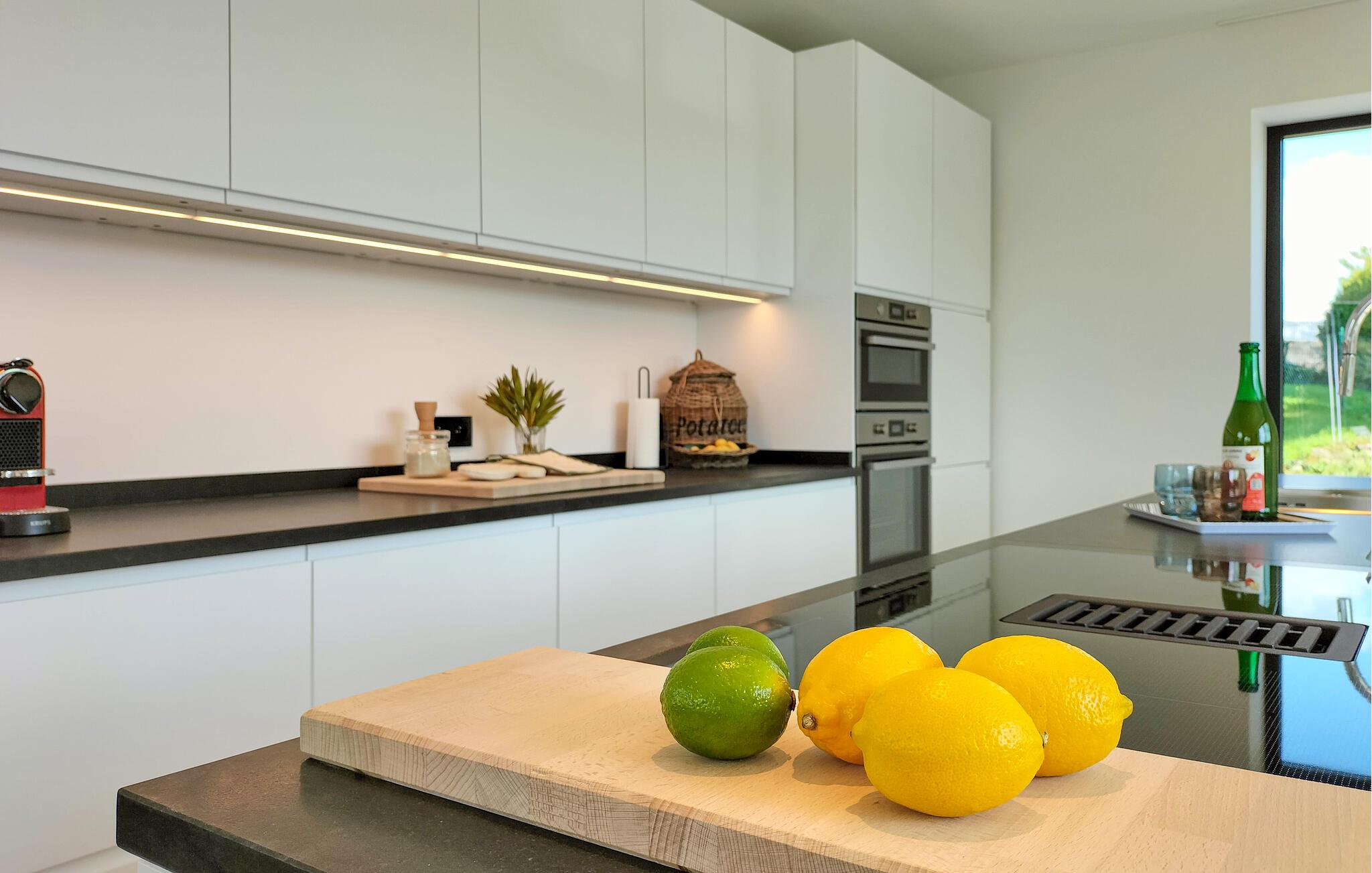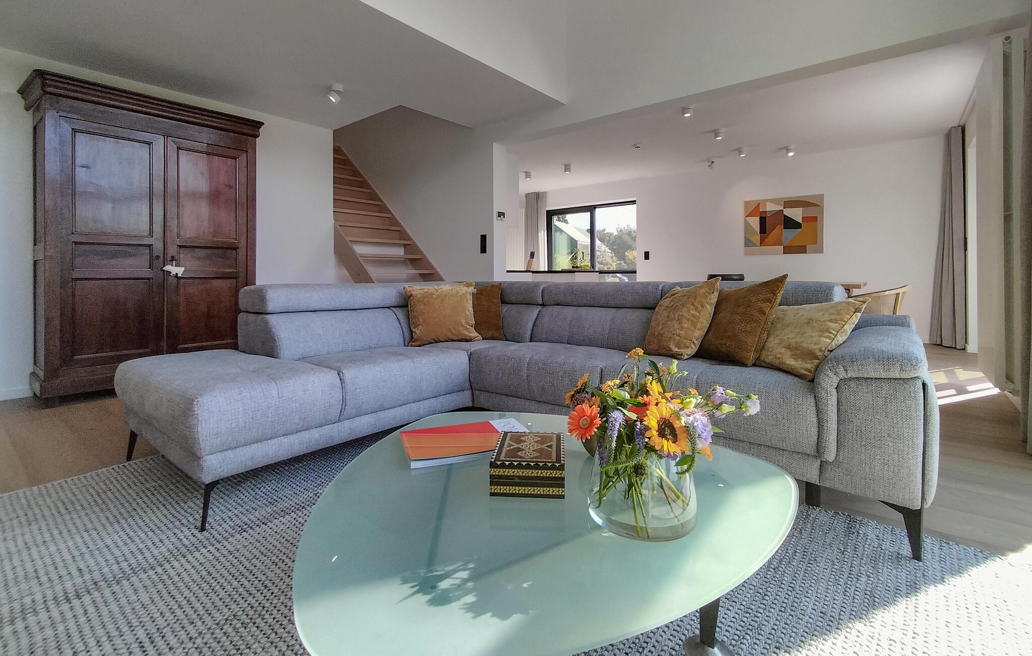 Dette smukt beliggende feriehus lover en førsteklasses ferie. Lyse værelser, diskrete farver og stilfulde møbler vil hurtigt få jer til at føle jer hjemme. Læn jer tilbage i sofaen, nyd udsigten over det grønne, og lyt til jeres yndlingsmusik. Hvis I har lyst, kan I spille et spil bordfodbold, inden I tryller lækre måltider frem.