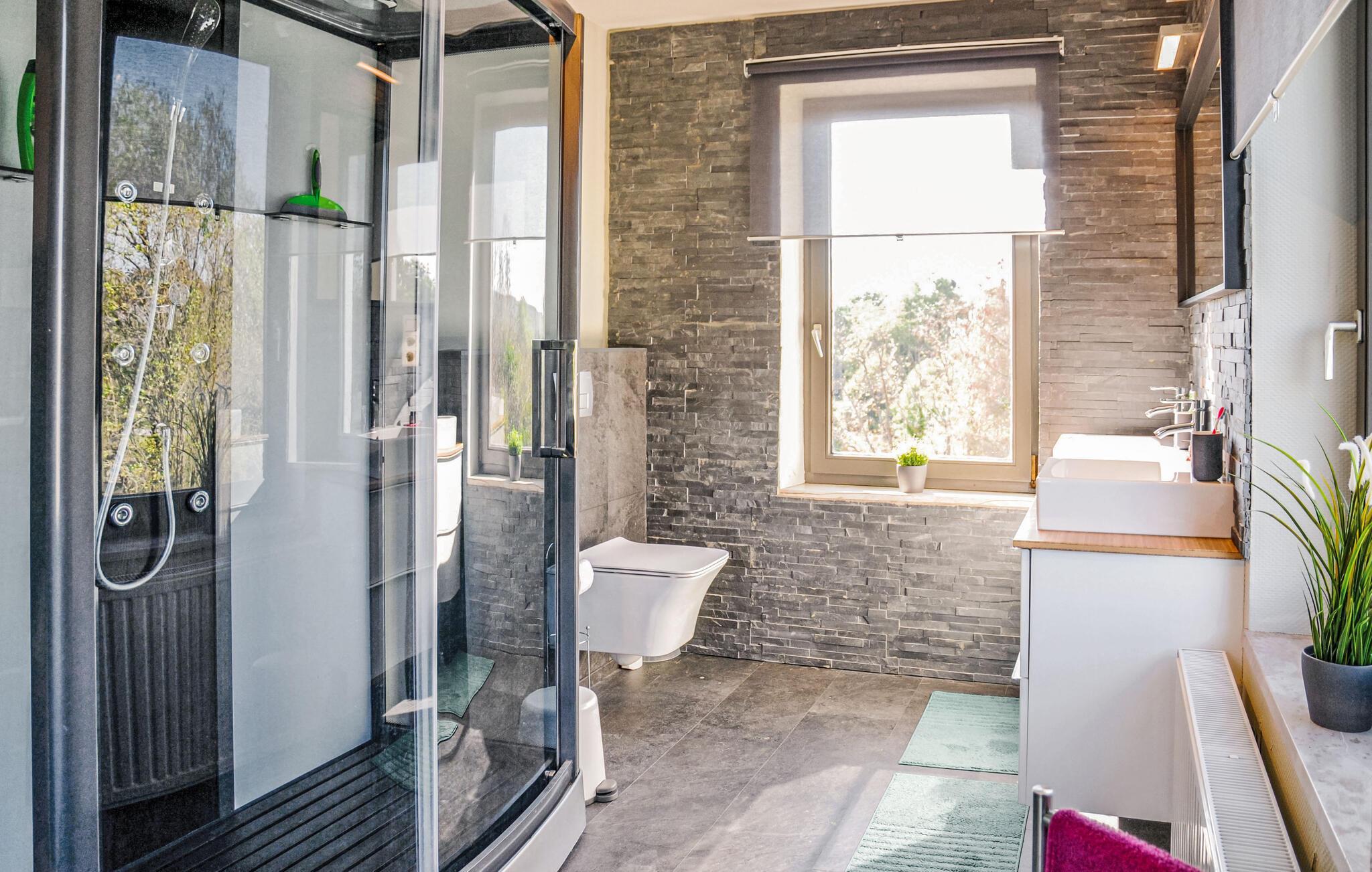 Dette feriehus er perfekt til en aktiv weekend i de belgiske Ardenner. Den berømte Durbuy Adventure Park ligger kun 1 km væk. Du kan klatre, rappelle, deltage i kurser eller leje kajakker og cykler. Derudover er der flere restauranter inden for gåafstand. I det centrale Durbuy er der en lang række seværdigheder, udendørs cafeer, butikker og restauranter. Huset ligger ved en hovedvej og er nemt at komme til. Her er alt til en skøn weekend: I stuen er der pejs, og der er endda et billardbord. De fire soveværelser er fordelt på første og anden sal, alle er forskelligt indrettet. Her er et godt og badeværelse. På både forsiden og bagsiden af huset er der store terrasser med havemøbler og grill.