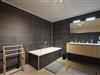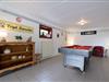 Stueetage: (åbent køkken(radio, elkedel, komfur(Komfur med fire kogeplader), kaffemaskine(kaffepude), ovn, mikrobølgeovn, opvaskemaskine , køleskab(+ fryser)), stue / spisestue(spisebord, sofahjørne), soveværelse(køjeseng, køjeseng), soveværelse(dobbeltseng(160 x 200 cm), barneseng), soveværelse(dobbeltseng(160 x 200 cm)), badeværelse(badekar, håndvask), toilet) Kælderetage: (Soveværelse med badeværelse(dobbeltseng(160 x 200 cm), badekar, 2x håndvask), toilet, opholdsrum(bordfodbold, biljard), køle-fryseskab, håndvask) have, grill, parkering
