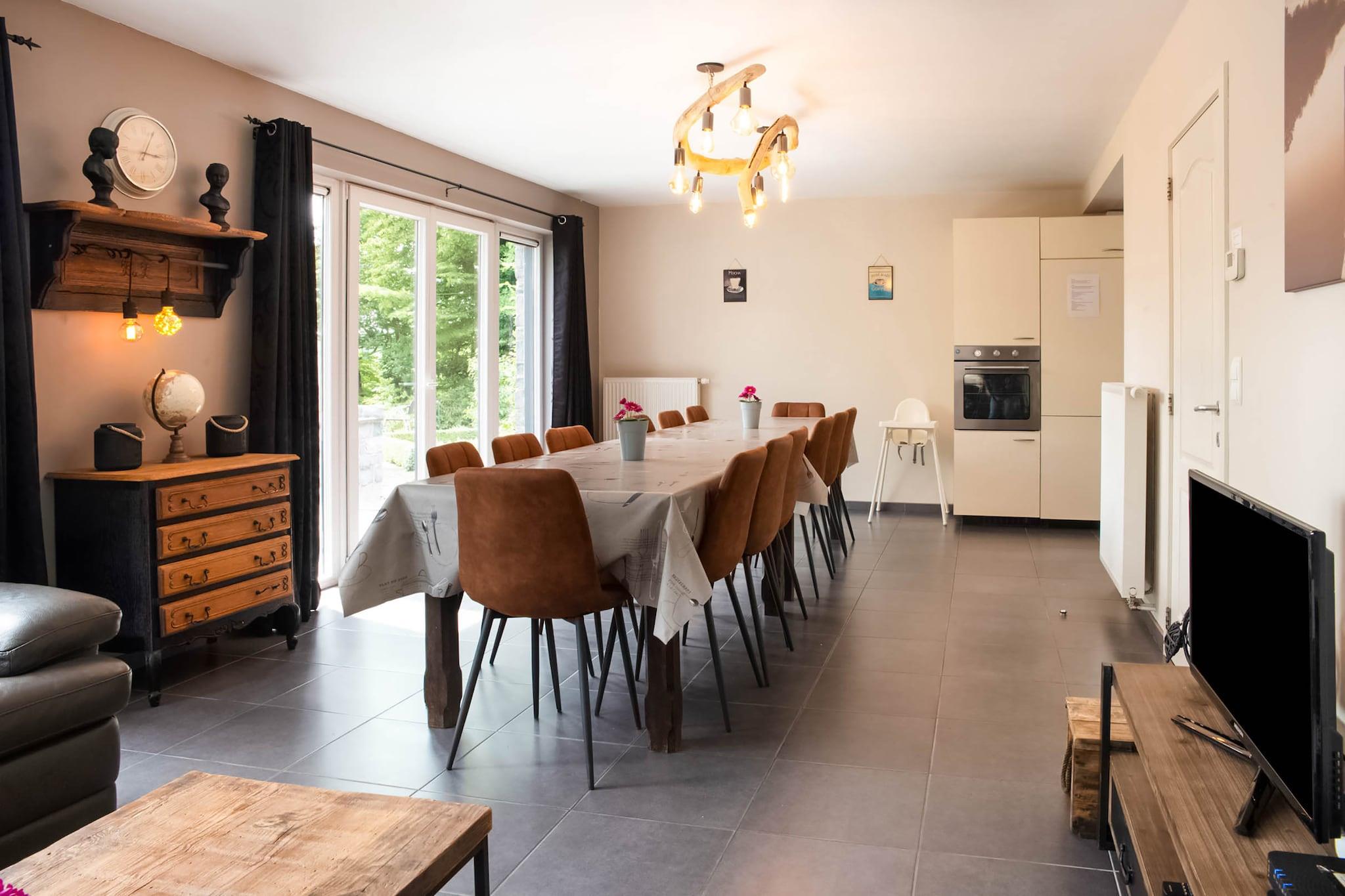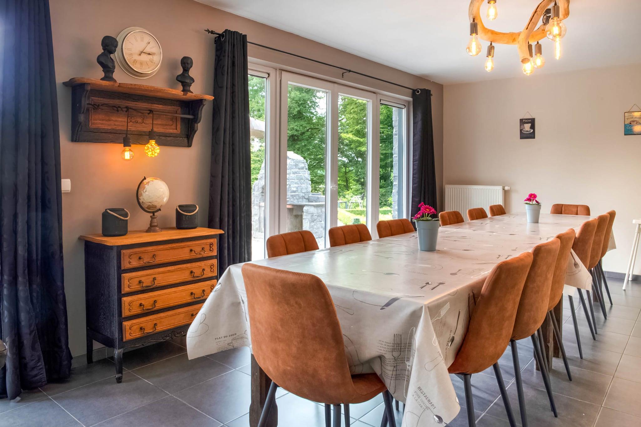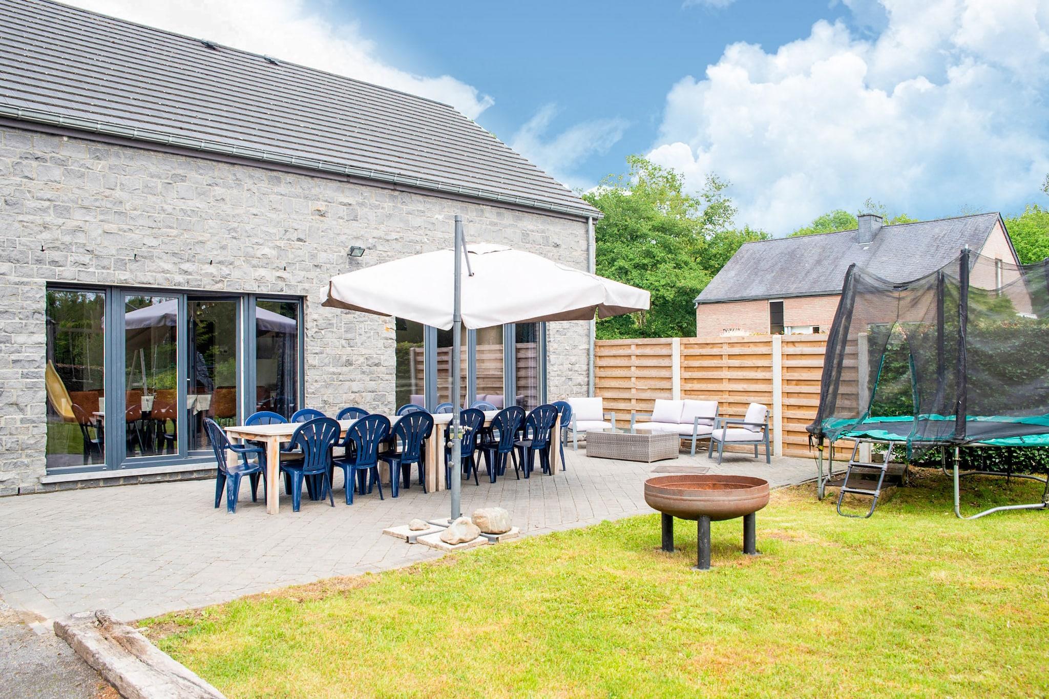 Indånd freden og den friske luft i dette dejlige feriehus nær Durbuy, perfekt til familier eller grupper på op til 12 gæster. Med 5 komfortable soveværelser og en rummelig have tilbyder det en rolig, naturfyldt flugt fra byens larm og stress. Børn bydes hjerteligt velkommen med legeredskaber, gyngestativ, trampolin og masser af plads til at udforske. Beliggende kun 3 km fra den charmerende Durbuy bymidte, kan du nemt nyde shopping, restauranter og sightseeing. Naturelskere vil sætte pris på den nærliggende skov (2 km) og Ourthe-floden (2 km), ideel til vandreture, fiskeri og vandsport. Et bageri og en restaurant ligger inden for gåafstand, som tilbyder frisk brød og lokale retter. Slap af udendørs med en grill i haven eller udfordr din gruppe til et spil på boulebanen. Med parkering på stedet til rådighed, forbliver dit køretøj sikkert under hele dit ophold. Uanset om du søger eventyr eller ro, kombinerer dette hjem begge i et perfekt Ardennerne-miljø.