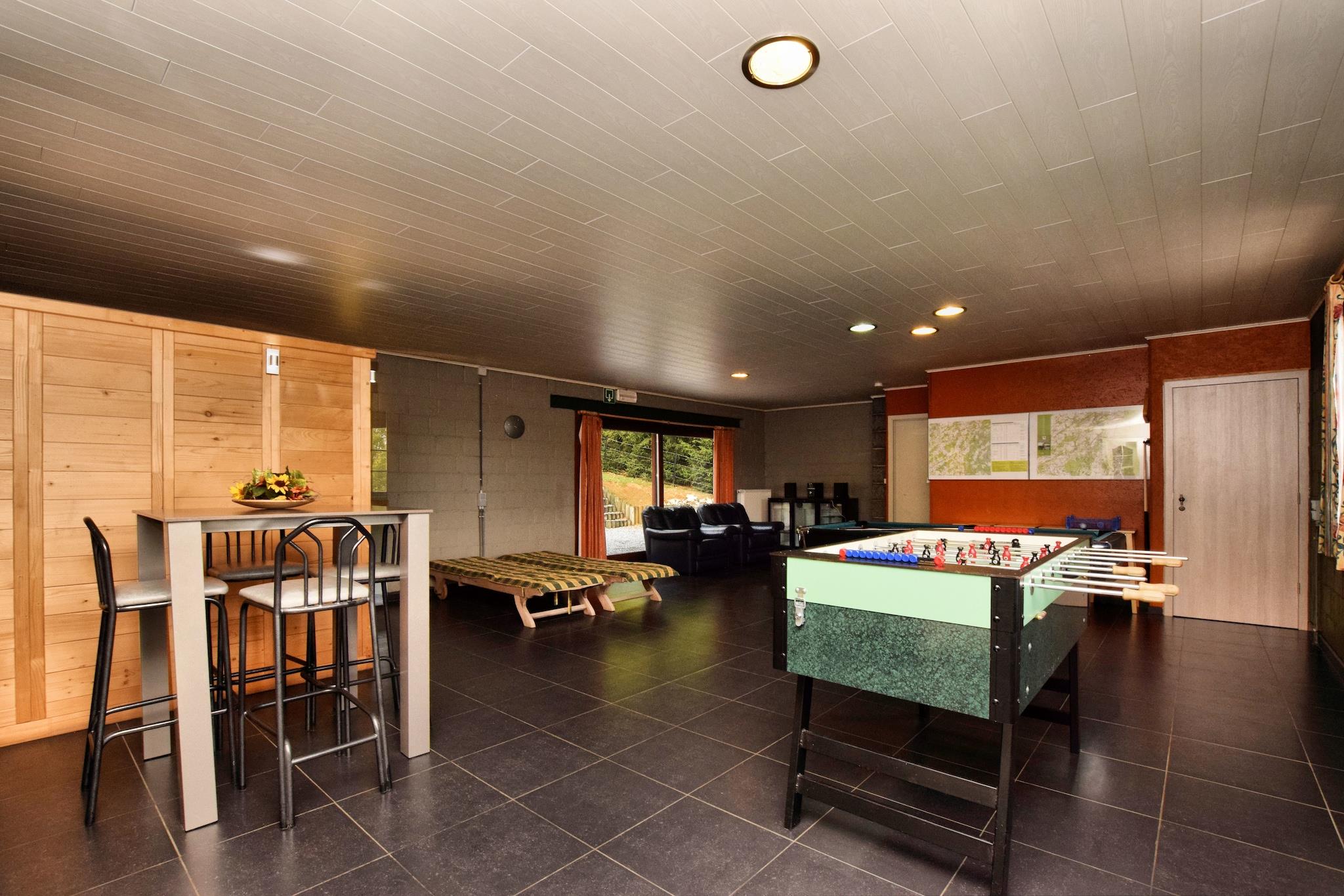 Beliggende kun 7 km fra den romantiske by Durbuy, er denne rummelige 7-værelses villa perfekt til familier, naturelskere og teambuilding-retreater. Huset ligger i udkanten af en stille landsby og byder på en stor have med petanquebane, solrig terrasse og legeredskaber til børn. Med plads til op til 15 gæster er den ideel til grupperejser i Ardennerne. Indenfor har villaen et afslapningsrum med sauna, bordtennis, bordfodbold og et fitnessområde. Det åbne køkken og spiseplads er perfekt til fælles måltider, og den hyggelige stue inviterer dig til at slappe af efter en dag med udforskning. Kæledyr er velkomne mod et tillægsgebyr, og parkering er tilgængelig på stedet. Udforsk grotterne i Hotton (14 km) og Remouchamps (25 km), eller nyd kajaksejlads på Ourthe-floden, golf i Barvaux og stå på ski om vinteren. De charmerende byer Heyd, La Roche-en-Ardenne og middelalderlige Durbuy er alle inden for rækkevidde. Uanset om du vandrer, cykler eller blot slapper af, tilbyder denne villa en alsidig og indbydende base i Ardennerne.