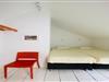 På 1. etage: (Stue(adgang via udendørs trappe)(Fjernsyn(digital), spisebord, sofahjørne), åbent køkken(kogeplade(glaskeramisk), emhætte, kaffemaskine(kopper), ovn, mikrobølgeovn, opvaskemaskine , køle-fryseskab), soveværelse(2x enkeltseng(dynebetræk)), soveværelse(2x enkeltseng(dynebetræk)), badeværelse(bruser, håndvask), badeværelse(bruser, sauna(privat), håndvask), toilet) varme(central), terrasse(overdækket), have, cykelopbevaring, havemøbler, parkering, barnestol