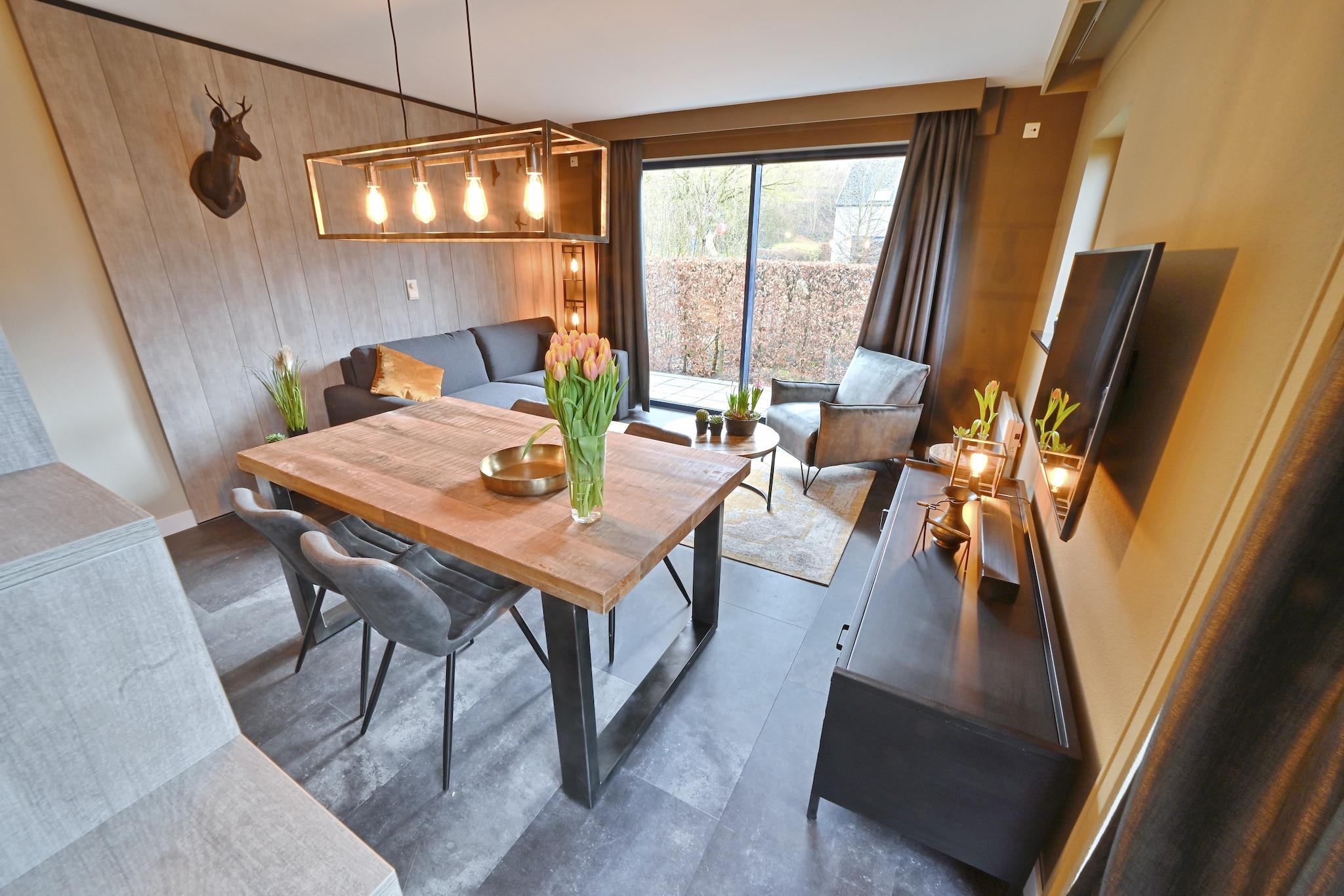 Oplev en fredfyldt ferie i denne smukke lejlighed beliggende i den rolige, skovklædte feriepark Résidence Durbuy. Nyindrettet i 2020, lejligheden blander moderne bekvemmeligheder med varm, indbydende indretning. Det smarte "high sleeper"-design adskiller soveværelsesområdet subtilt og tilbyder privatliv uden at ofre plads. Slap af på den komfortable sovesofa, perfekt til to børn, mens du nyder dine yndlingsprogrammer på det digitale fladskærms-tv. Det slanke åbne køkken er fuldt udstyret, inklusive en opvaskemaskine, hvilket gør tilberedningen af måltider til en leg. Badeværelset har et beroligende badekar med bruser for din komfort. Denne suite ligger i hjertet af Luxembourgs naturskønne Ardennerne-region og er perfekt til par, der ønsker at slappe af, eller eventyrere, der tager deres lodne venner med. Kæledyr er velkomne, og de omkringliggende skovstier inviterer dig og din hund til at udforske naturen sammen. Blot en kort køretur væk finder du kæledyrsvenlige parker og endda organiserede hundevandringsgrupper, der gør socialt samvær let for dine firbenede ledsagere. Efter en dag udendørs kan du slappe af på din private terrasse med havemøbler og nyde den fredelige udsigt. Résidence Durbuy er ideelt placeret i nærheden af charmerende lokale spisesteder, der serverer solide luxembourgske og belgiske retter. Oplev hyggelige caféer og bistroer, hvor kæledyr er velkomne på terrasser, så du kan spise ude uden at efterlade din lodne ven. Til familiesjov giver den fælles swimmingpool og den nærliggende legeplads underholdning for alle aldre.
