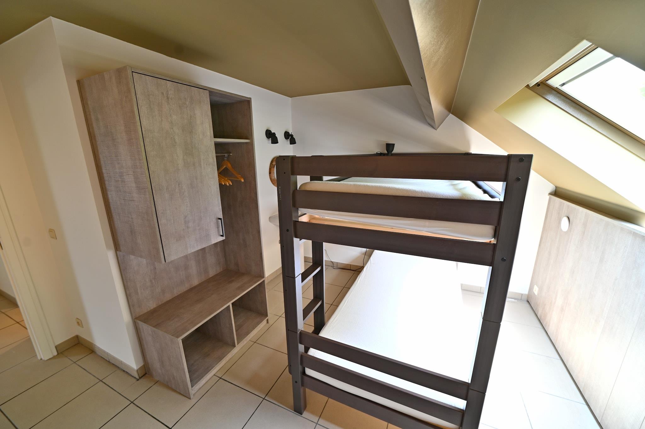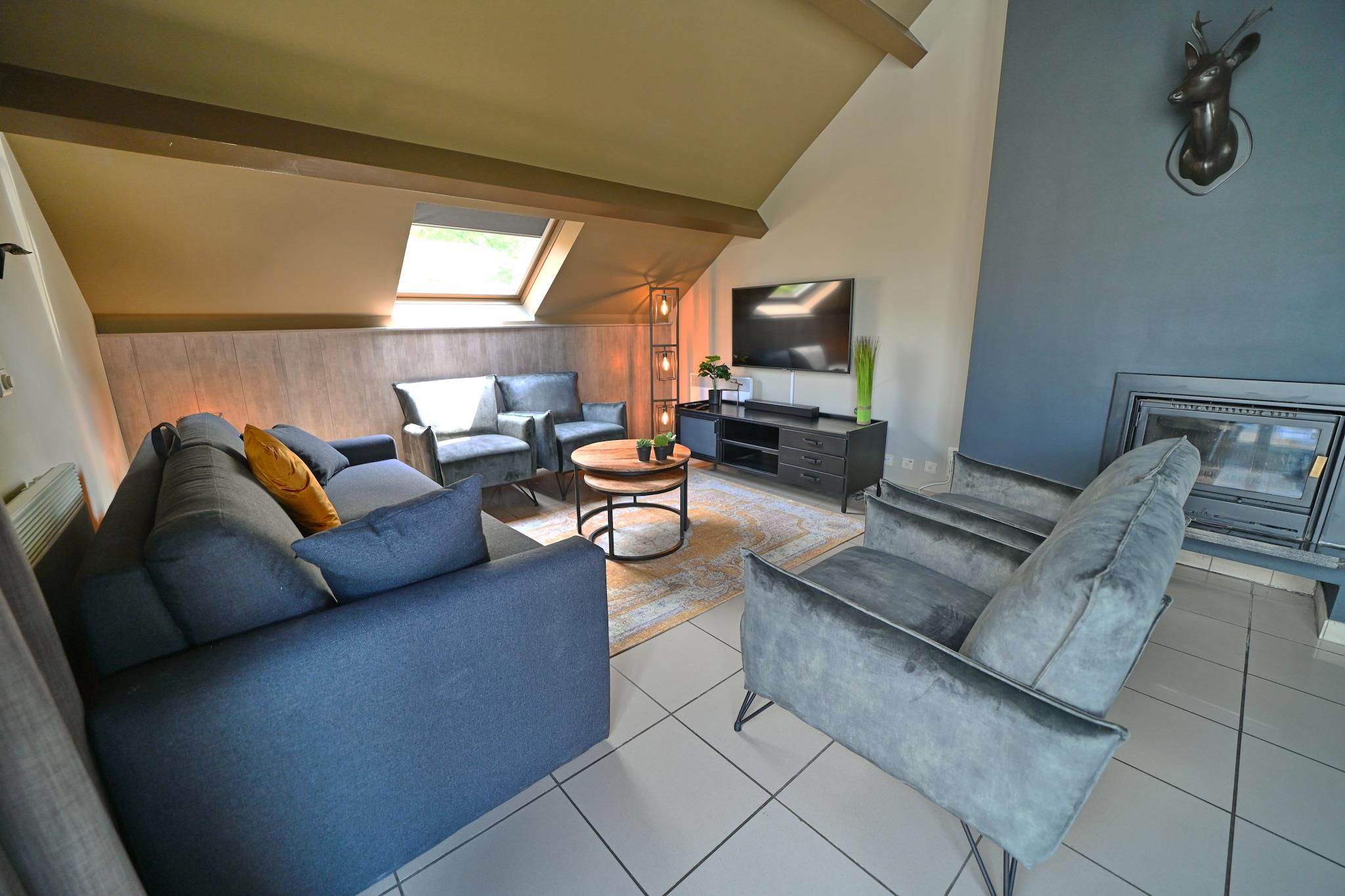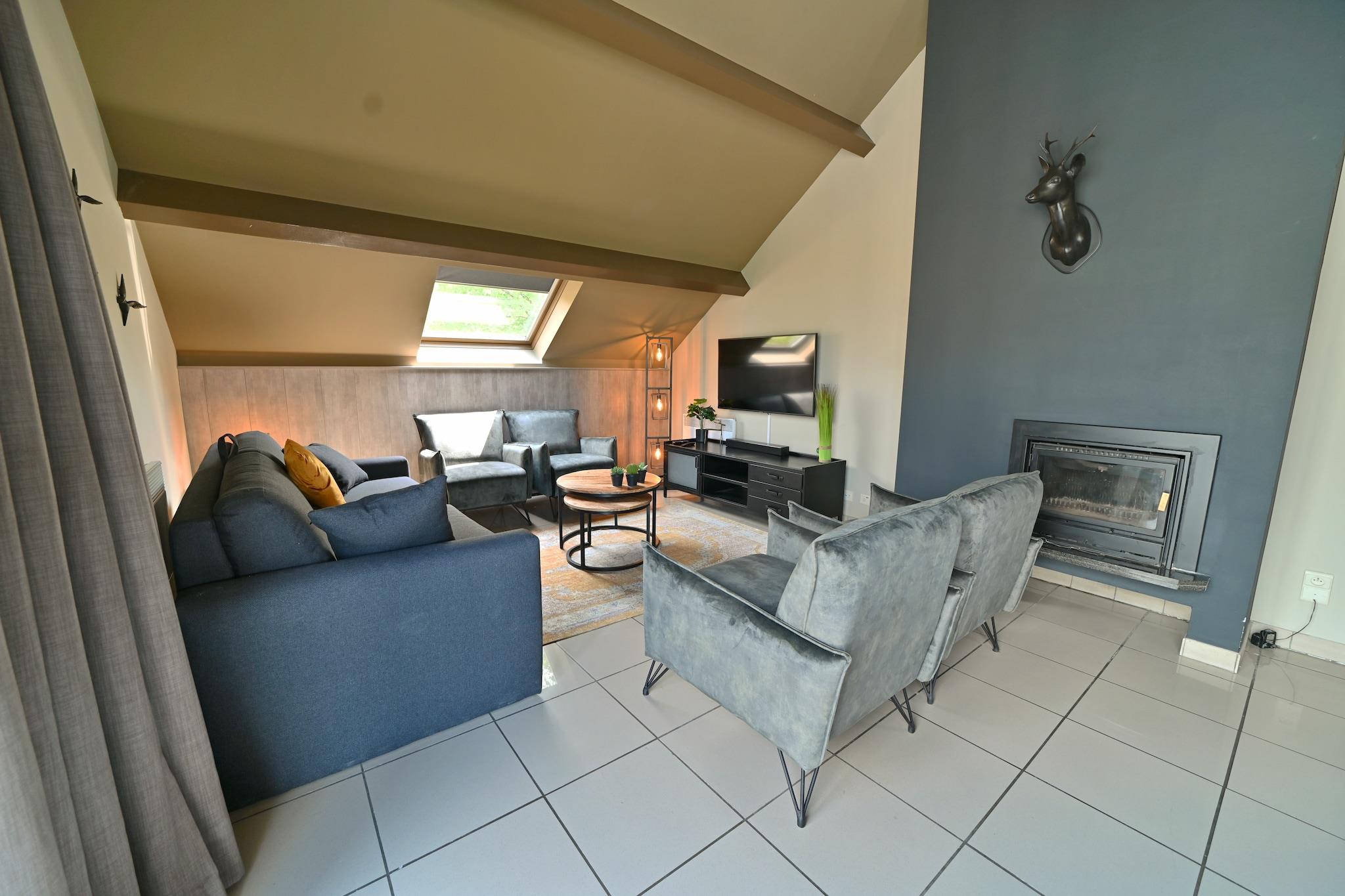 Stilfuldt tilflugtssted i hjertet af naturen Gemt i det frodige skovområde i Résidence Durbuy, denne rummelige lejlighed på første sal blander komfort med moderne design. Den indbydende L-formede stue har hyggelige siddepladser, en gaspejs, en dobbelt sovesofa og varmt naturligt lys. Med tre soveværelser - et med dobbeltseng og to med enkeltsenge med boksmadrasser (kan konfigureres som dobbeltværelser) - er det komfortabelt vært for familier eller grupper. Det slanke åbne køkken omfatter en opvaskemaskine og en kombinationsmikroovn, og to badeværelser (herunder et med boblebad) sikrer stressfri morgener. Et separat toilet tilføjer ekstra bekvemmelighed. Paws Welcome – Pet Adventures Await Tag din lodne ledsager med - denne lejlighed er kæledyrsvenlig! Kun få skridt væk byder området på naturskønne vandreture i skoven og stier langs floden, perfekt til logrende slentreture med halen. Udforsk det nærliggende Bois de Petithan eller nyd en leg i de åbne græsklædte områder i Parc des Topiaires. Flere lokale cafeer byder kæledyr velkommen på deres terrasser, hvilket gør det nemt at dele oplevelsen med din firbenede ven. Efter en dag ude kan du slappe af sammen på din private terrasse med haveudsigt i stueetagen. Spis og oplev i Durbuy Kendt som "verdens mindste by", fortryller Durbuy med sin middelalderlige charme og kulinariske lækkerier. Forkæl dig selv med belgiske specialiteter på Le Fou du Roy, eller nyd lokale øl på La Brasserie Saint-Amour, både inden for en kort køretur og kæledyrsvenlig.